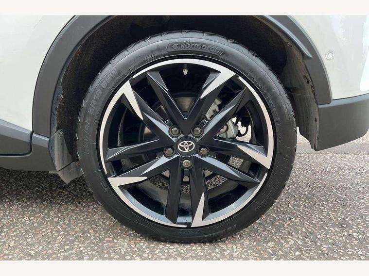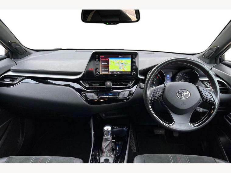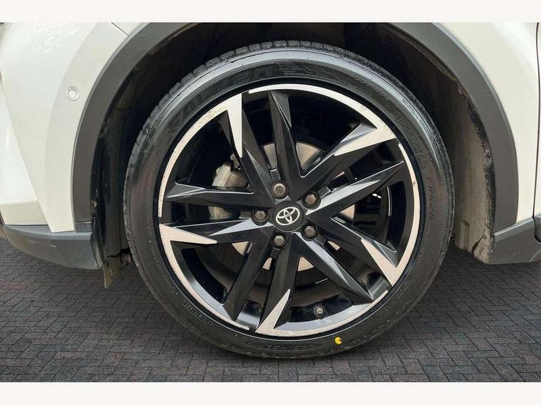 4.2" coloured TFT screen for multi-information display, Adaptive cruise control, Bluetooth connectivity, Electric power steering, Hybrid system indicator, Lane departure alert with steering control, Remote boot door release in cabin, Remote boot door release in key, Reversing camera, Road sign assist - RSA, Simple Intelligent parking assist, Touch 2 Go navigation system, Trip computer, Voice recognition, Vehicle Stability Control (VSC), 6 speakers, AM/FM radio, DAB Radio (Digital Audio Broadcasting), Toyota touch 2 multimedia system with 8" display, USB connector, Wi-fi connectivity, Adaptive front light system, Adaptive LED Headlights, Anti-jam protection on power windows, Auto high beam, Auto up and down function on all power windows, Automatic headlight levelling, Automatic headlights, Automatic headlights cut-off, Black and body coloured rear bumper, Black upper front grille, Body colour door handles, Body colour door mirrors, Body coloured front bumper, Boot door release with push button, Chrome front lower bumper, Electric heated door mirrors, Follow me home headlights, Front and rear power windows, Front spoiler lip in black, Honeycomb lower front grille, LED daytime running lights, LED fog lights, LED front light guide, LED High mounted stop light, LED rear brake lights, LED rear combination lights, Noise reduction layer on front windows and windscreen, Power adjustable door mirrors, Privacy glass, Rear sequential indicators, Rear spoiler, Rear tailgate, Rear window defogger, Rear window wiper, Shark fin antenna, UV-filter on driver and passenger windows, UV-filter on rear windows, 12v power outlet - front, 3 rear headrests, 3 spoke perforated leather steering wheel, 60/40 split folding rear seat, Adjustable rear headrests, Adjustable speed limiter switch on steering wheel, Assist grips front and centre pillar, Audio and telephone switches on steering wheel, Black front door assist grips, Blue ambient lighting on front cup holders, Blue ambient lighting on front doors, Boot light, Chrome interior door handles, Driver and front passenger personal light, Driver and front passenger Whiplash Injury Lessening seats, Driver and passenger seatback pockets, Dual zone automatic air conditioning, Fabric upholstery, Floor mats, Front cupholders, Front head restraints, Front sports seats, Glovebox with internal light, Hard tonneau cover, Heated driver and front passenger seats, Hooks for luggage holding net, Humidifying Nanoe air purifier, Illuminated entry system, Isofix attachments on outer rear seats, Leather gearshift, Light on driver sun visor, Light on passenger sun visor, Manual telescopic steering wheel, Manual tilt steering wheel, Manually height adjustable driver seat, Manually height adjustable front passenger seat, Manually reclining driver seat, Manually reclining front passenger seat, Manually sliding driver seat, Manually sliding front passenger seat, Microphone on front personal light, Mirror on driver sun visor, Mirror on passenger sun visor, Multimedia switches on steering wheel, Pollen filter, Power adjustable lumbar support on driver seat, Shopping bag hooks, Slow opening on lower glovebox, Voice recognition switch on steering wheel, Tech with parking sensor pack - C-HR, 16 Disk front wheel brake, 3x3 point rear seatbelts, ABS+EBD+Brake assist, Electronic parking brake, Front and rear seatbelt reminder, Front passenger airbag on/off switch, Hill start assist control (HAC), Pre collision system with pedestrian detection, Pre-tensioners and force limiters, Rear door child safety locks, SRS Airbags - Driver + Front passenger, front side, front and rear curtain and driver's knee airbags, Toyota safety sense, Tyre pressure monitoring system, Acoustic vehicle alert system (AVAS), Glass-breaking alarm sensors, Immobiliser, Intrusion alarm, Intrusion sensor, Motion sensor alarm, Power door locks, Power passenger window lock, Remote central locking, Black lower dashboard, Black upper dashboard, Piano black console, Silver deco line on upper dashboard, 19" Black machined alloy wheels, Tyre repair kit,