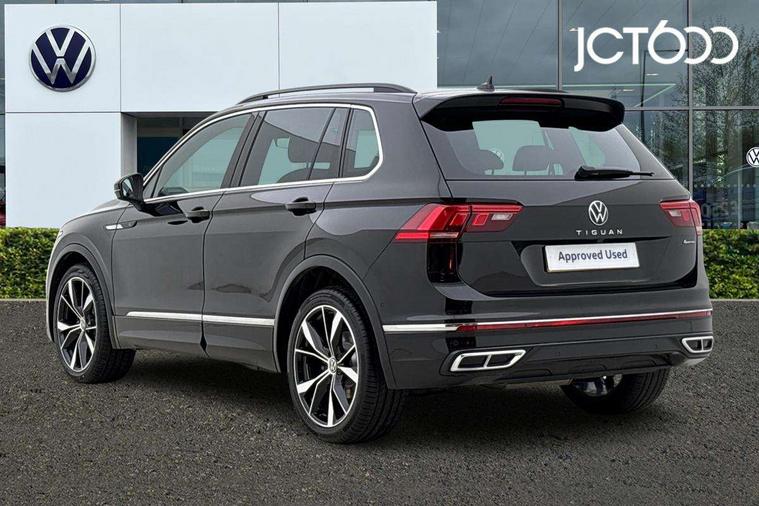 Adaptive cruise control ACC stop and go including speed limiter, App-Connect incl. App-Connect Wireless for Apple CarPlay and Android Auto, Bluetooth phone integration system, Distance control assist, Driver alert system, Driver profile selection, Dynamic road sign display, eCall emergency call system, Electromechanical speed sensitive power steering, Engine start/stop button, Lane keeping system Lane Assist, Lights on warning, Multifunction front facing camera, Outside temperature display, Premium multifunction display with multi colour display, Remote control boot opening, Rev counter, Revision / skills operating concept travel assistant, Service interval indicator, Speed limit display, Start/stop system with regenerative braking, Trip computer, Warning sound and light for doors and tailgate open, All wheel drive - 4Motion, Battery regeneration during braking, Diesel particulate filter, Misfuel prevention device for diesel engine, Selective Catalytic Reduction, XDS electronic differential lock for improved traction and handling, 4 X 20 watt output, 8 Speakers, Diversity antenna for FM reception, Radio, SD card slot, Simultaneous pairing of 2 compatible mobile devices, SMS functionality - read, compose and send SMS messages using touch-screen display, Title and cover art display, USB C ports, Auto dimming interior rear view mirror, Automatic headlight control system, Body colour door handles, Chrome moldings on the side windows, Coming/leaving home lighting function, Dynamic headlight range control, Front and rear electric windows, Heated rear window, High level 3rd brake light, Laminated safety glass windshield, heat and sound insulating, LED headlamps with LED separate daytime running light and dynamic cornering light, LED rear combination lamps, LED rear number plate lights, License plate carrier in front and rear, Poor weather light and cornering light, R Line body kit, R Line side sills, Rain sensor windscreen wipers, Rear exhaust tailpipe, Rear fog lamp, Rear side wing doors, Rear spoiler in R style, Rear windscreen washer and wiper with interval delay, Side and rear windows in heat insulating glass, Trailer Stability Programme, Unique R Line badging, Windscreen wipers/ intermittent wipe + 4 position delay, 12V outlet in center console rear and in luggage compartment, 12V outlet in front and tray, 2 cup holders in front, 2 LED front reading lights, 2 LED rear reading lights, 3 bench rear seats in 2nd row, 3 rear headrests, 4 load lashing points, 40:20:40 split folding rear seats, Air Care Climatronic 3 zone automatic climate control with enhanced air filter and controls in the rear, Backrest release for left front seat, Black headlining, Brushed stainless steel pedals and footrest, Carpet mats in front and rear with decorative stitching in Gray, Climate control unit rear with touch function, Door and side trim panel in foam film, insert in leatherette, Front centre armrest, Front footwell illumination, Front seats head restraints (x-adjustment), Height adjustable front seats, Height/reach adjust steering wheel, Instrument lighting white adjustable panel illumination, Interior light with delay, Isofix Preparation 2 Rear child seats, Leather gear knob, Lockable cooled glovebox, Luggage compartment lighting, Luggage net, Rear bench seat asymetrically split folding, longitudinally movable and folding with load-through hatch and center armrest, Remote unlocking for rear seat backrest, Removable luggage cover, Removable rear headrests, Safety optimised front head restraints, Single front passenger seat, Sliding/reclining rear seats, Standard rear seat release, Storage compartment in driver's door, Storage compartment in passenger's door, Storage compartment in rear doors, Storage compartments in luggage area left and right, Storage tray on dashboard, Sun visors with illuminated vanity mirrors, Top front comfort seats, Variable boot floor, height adjustable and removable, Driver assistance pack plus - Tiguan DSG, 3 point seat belt for centre rear seats, 3 point seat belts with seat belt pretensioners for the outer rear seats, Active bonnet, Curtain airbags for front and rear passengers, Driver/Front Passenger airbags, Drivers knee airbag, Electronic parking brake with auto hold, Electronic Stability Control with driver steering recommendation, ABS, ASR, EDL, EDTC and trailer stabilization, Front assist with autonomous emergency braking (for Adaptive Cruise Control ACC up to 130 mph), Front disc brakes, Front passenger airbag deactivation, Front side airbags, Height adjustable front 3 point seatbelts + pretensioners, Hill hold control, Manual child proof rear door locks, Pedestrian monitoring system, Power assisted brakes, Proactive passenger protection system in combination with front assist, Rear disc brakes, Rigid safety cell with front and rear crumple zones, Two tone horn, Warning sound and light for front seat belts if unfastened, Anti theft alarm system with interior monitoring, backup horn and towing protection, Anti theft wheel bolts, Electronic engine immobiliser, Tool kit,