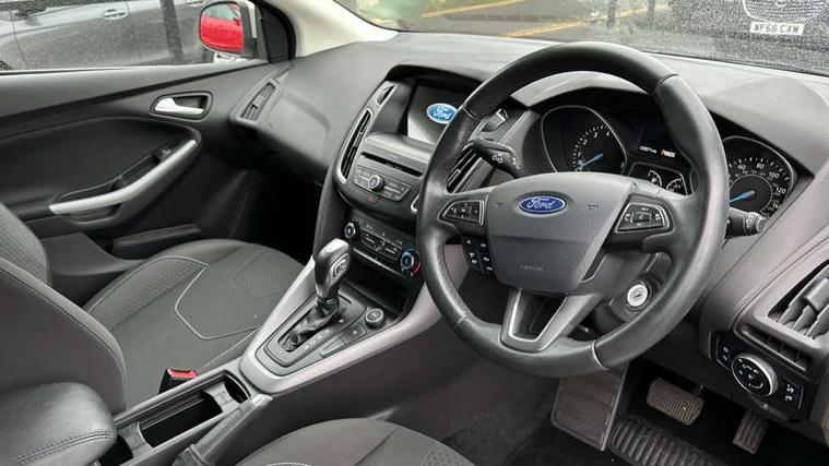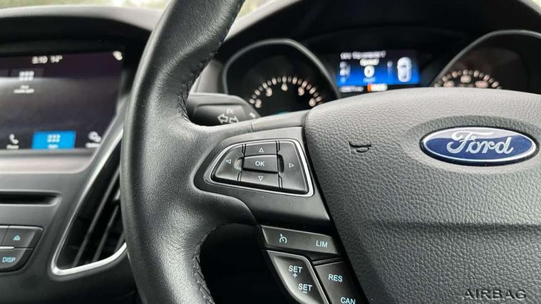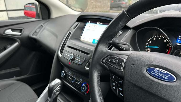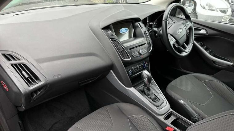 Digital clock, Easy fuel capless refuelling system, Eco mode, Electric boot release, PAS, TFT cluster screen, Trip computer, Aux input, Steering column with mounted audio controls, SYNC 2 DAB radio/CD, 8" colour touch screen, emergency assistance, Bluetooth connection, advanced voice control, USB connection, 'Quickclear' heated windscreen/heated washer jets, Body colour bumpers, Body colour door handles, Body colour door mirrors, Body colour rear spoiler, Chrome finish on upper door line, Chrome radiator grille and surround, Electric adjustable heated door mirrors, Front fog lights, Front variable intermittent wipers with electric wash, Heated rear window, Tailgate wash/wipe, 3 spoke leather steering wheel, 60/40 split back and cushion rear seats with 2 height adjustable headrests, Air conditioning - CFC-free, Centre console storage box/armrest, Cloth upholstery, Driver's seat manual height adjust, Driver's seat with adjustable lumbar support, Front floor mats, Height adjustable front headrests, Isofix child seat preparation, Reach + rake adjustable steering column, Sports style front seats, ABS+Electronic Brake force Distribution, Driver airbag, ESP with traction control + emergency brake assist, Front inertia reel height adjustable seatbelts with pre-tensioners, Front passenger airbag, Front side airbags, Hill start assist, Side curtain airbags, Three rear inertia reel lap/diagonal seatbelts, Torque vectoring brake, Tyre pressure monitoring system, Immobiliser-Passive Anti-Theft System (PATS), MyKey system, Remote central double locking, Thatcham Cat.1 alarm,