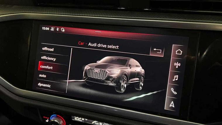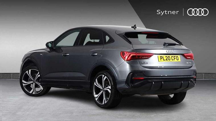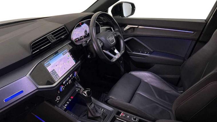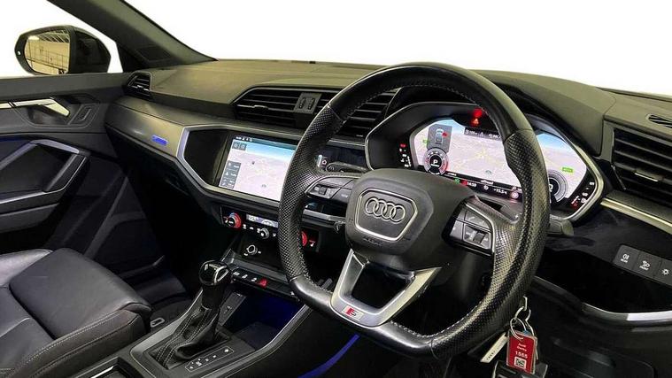 Audi connect safety and service (e-call), Audi drive select, Audi lane departure warning, Audi side assist, Audi virtual cockpit plus, Bluetooth interface, Camera based traffic sign recognition, MMI Navigation Plus with high resolution 10.1 inch touchscreen colour display, Power operated tailgate, Progressive steering, Service interval indicator, Smartphone interface includes wireless Apple carplay/Android Auto, Start stop system with recuperation, Voice control system with natural language interaction, 48V Mild hybrid technology, Sports suspension, 1 x USB type C and 1 USB type A charging points, 6 passive loudspeakers, DAB digital radio module, Acoustic windscreen, Audi Beam uses LEDs to project the Audi Sport logo, Auto dimming frameless rear view mirror, Diffuser grille in grained matt black, Diffuser trim in selenite silver, Electrically folding, adjustable and heated door mirrors with integrated LED side indicators and kerb view function for passenger side, Front and rear electric windows, Front fog lights, Front underbody protection in manhattan grey paint finish, Grille surround in aluminium silver matt, Headlight washers, High gloss black finish B and C pillars, Matrix LED headlights with LED rear lights and dynamic front and rear indicator, Privacy glass dark tinted rear and rear-side windows (from B-pillar backwards), Rain and light sensors, Rear underbody protection in matt black, Side skirt insert in matt Platinium grey, 12V socket in rear centre console, 3 spoke flat bottomed high multi-function leather sport steering wheel with gearshift paddles, 4 way electric lumbar support for driver and front passenger, 40:20:40 folding with manual adjustment for 60:40 forwards/backwards position and backrest angle, Adjustable rear seat bench/backrest with centre armrest and cupholder, Black cloth headlining, Dual zone electronic climate control, Electrically adjustable front seats, Front and rear black floor mats with contrast stitching, Front and rear headrests, Front and rear roof module including reading lights, Front centre armrest, Glove compartment lighting, Heated front seats, Height and reach adjustable steering wheel, Illuminated door sill trims with S logo, ISOFIX child seat mounting for front passenger with airbag deactivation and outer rear seat including top tether attachment point for outer rear seats, Luggage compartment light, Perforated leather gearknob, Stainless steel luggage compartment sill finisher, Stainless steel pedals, Black styling pack - Q3, Multi coloured extended ambient interior lighting pack - Q3, Non smoking pack - Q3, 3x3 point rear seatbelts, 6 airbags - Driver, front passenger, curtain and side windows, Audi pre-sense front with pedestrain and cyclist recognition, Electrically operated child locks on rear doors, Electromechanical parking brake, Electronic stabilisation control including ABS, ASR and EDL, Hill descent control, Hill hold assist, Pre sense basic, Seatbelt monitoring, Tyre pressure warning, Warning triangle and first aid kit, Anti theft alarm, Anti theft wheel bolts, Remote central locking, Dark matt brushed aluminium inlay, Detail dashboard around MMI touch colour display in glass look, black with surround in aluminium look, Leatherette door armrest, Tool kit, Tyre repair kit,