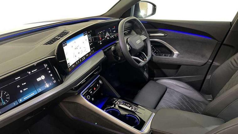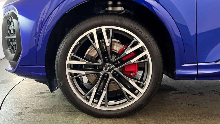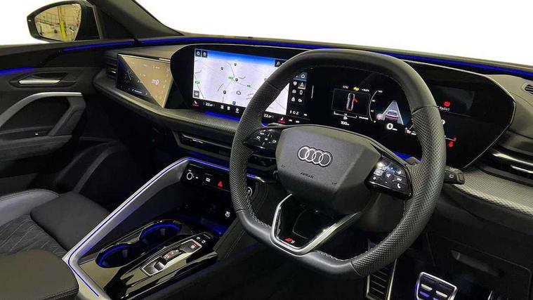 Adaptive cruise control, Advanced driver attention alert, Audi application store, Audi connect emergency call and service, Audi drive select, Audi smartphone interface, Audi virtual cockpit plus with 11.9" OLED colour display, Camera based traffic sign recognition, Fatigue monitor, Front cross traffic intersection assist, Lane change assistant with exit warning system, rear cross traffic alert and rear turn assist, Lane departure warning with emergency assist, MMI 10.9" front passenger touch display, MMI navigation plus with high resolution 14.5" OLED touchscreen colour display, Park assist plus, Parking system plus with 360 display, PAS, Reversing camera, Swerve assist and turn assist, Top view camera, Traffic sign based speed limiter, 2 USB-C ports in both the front and rear, Audi sound system impressive sound with 10 loudspeakers including centre speaker and subwoofer, 6-channel amplifier with a total output of 180 watts, DAB Digital radio, Smartphone compartment with wireless charging, Active digital light signatures - Six additional combinations of active daytime running light signature, Auto dimming rear view mirror, Black roof rails, Coming/leaving home lighting function, Electrically adjustable heated and folding + automatically dimming exterior mirrors, Exhaust tailpipes in dark chrome, Front and rear electric windows, Front door sill trims with aluminium inlays, illuminated with 'S' logo, Full body paint finish, Headlight cleaning system, Heated rear window, High beam assist, High gloss window surrounds, Inlay and front air inlets in matt anthracite chrome, LED rear lights pro incl. dynamic rear indicators and illuminated light strip with animated coming and leaving home function, Logo projection light in exterior mirrors, Matrix LED headlights, Memory function for door mirrors, Privacy glass, Projection light for rear window, Radiator grille in phantom black, Rear and side windows with heat insulating glass, Rear honeycombe grille in matt black with inlay in matt anthracite chrome, Rear side wing doors, Rear wash/wipe, S Line badge on the front wings, Towbar preparation, Windscreen with acoustic glazing, 3 rear head restraints, 3 seat bench in 2nd row, 3 spoke leather steering wheel with multi-function buttons with touch control, flattened on top and bottom, with S badging and contrast stitching, 4 way electric lumbar support for driver and front passenger, 40:20:40 split folding rear seat bench with centre armrest and cup holders, Comfort centre armrest, Deluxe 3 zone electronic climate control, Dinamica microfiber/leather upholstery, Electrically adjustable front seats with memory function for driver's side, Front and rear floor mats, Front sport seats with integrated head reastrains, Headlining in black cloth, Heated front seats, i-Size child seat mounting on the front passenger side and outer rear seats, i-Size and top tether on the outer rear seats, Interior trim in aluminium look, Luggage compartment lid, electrically opening and closing, Manual steering column adjustment, Single front passenger seat, Softwrap in Dinamica, Stainless steel pedals and footrest, Steering wheel grips in perforated leather and shift paddles, Ambient lighting package plus - Q5, Black styling package plus - Q5, Storage and luggage compartment pack - Q5, 3x3 point rear seatbelts, ABS, Acoustic vehicle alerting system, Convenience key with safelock, Driver and front passenger airbag with passenger airbag deactivation, Electric child safety locks, First aid kit with warning triangle and high visibility vests, Front emergency brake assist, Front side airbags with head airbag system and front interaction airbag, Hill hold assist, Occupant detection in rear seat area, Proactive passenger protection system for front, sides and rear, Red brake calipers, Side airbags in front and rear with head airbag system and front interaction airbag, Tyre pressure loss indicator, Anti theft alarm, Anti-theft wheel bolts, Remote control key with SAFELOCK and keyless go, Accent surfaces and control buttons in gloss black, Black dashboard with contrast stitching, Steel grey seat stitching, Upper and lower interior elements in dinamica microfiber, Tyre repair kit,