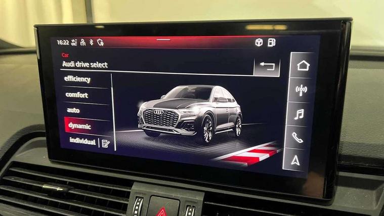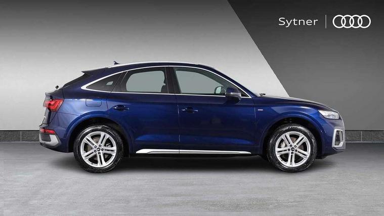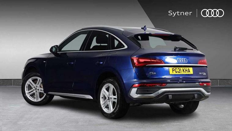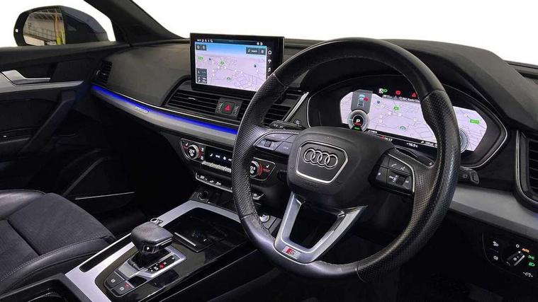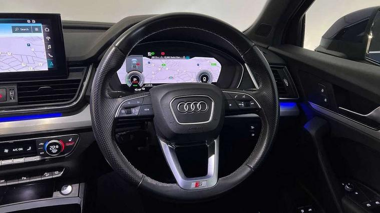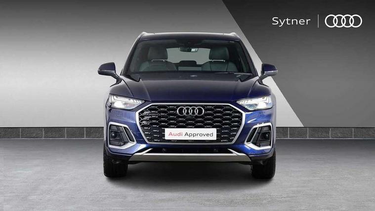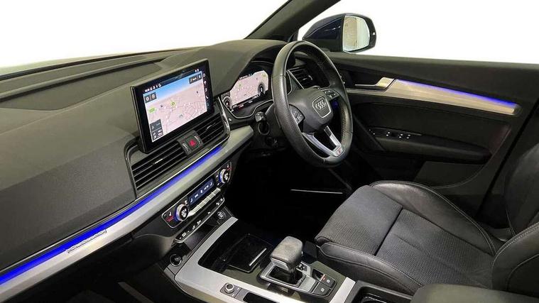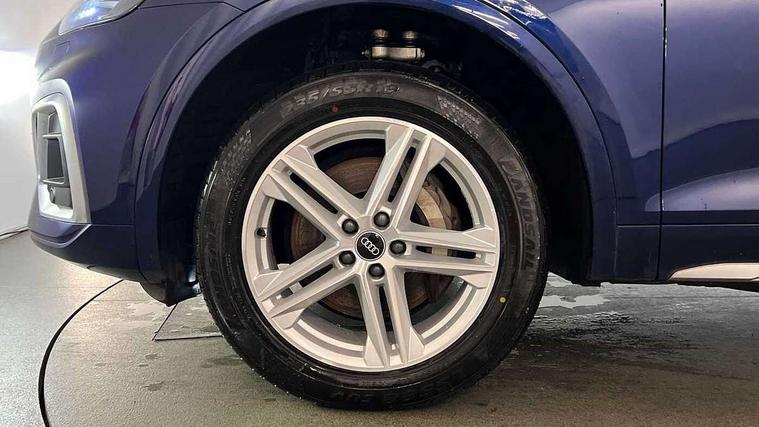 Audi connect safety and service (e-call), Audi connect with Amazon Alexa Integration, Audi drive select, Audi virtual cockpit plus with 12.3" screen and three different layout designs, Audi wireless smartphone interface, Automatic start-stop system with coasting functionality and efficiency programme, Bluetooth interface, Electro - mechanical power assisted steering, MMI navigation plus with 10.1" touch screen, Power tailgate, Reversing camera, Service interval indicator, Voice control system with Audi hotword activation "Hey Audi", 3 pin 10 amp domestic charging cable, Dynamic suspension, Quattro on demand, Type 2 mode 3 22kW 32 amp charging cable, Type 2 socket for AC charging, DAB Digital radio, Acoustic windscreen, Aluminium roof rails, Audi matrix LED headlights with dynamic front and rear indicators, Auto dimming rear view mirror, Automatic headlights and windscreen wipers, Body colour bumpers, Body colour door mirrors, Body colour rear diffuser with matt aluminium silver surrounds, Body colour underbody protection, Chrome plated exhaust trims, Door sills in Selenite silver, Electric adjustable/heated/folding door mirrors, Front air inlet surrounds in aluminium, Front and rear electric windows, Front radiator grille in honeycomb design, Headlight washers, Lower bumpers painted in contrast Manhattan grey, Rear chrome trim strip below lights, Rear privacy glass and rear side windows, Rear spoiler, Rear wiper, Roof bars, S Line badges on the front wings, S Line front and rear bumpers, S Line side skirts, 2 x USB charging port with aux input socket, 3 rear headrests, 40:20:40 split folding rear seat with rear centre armrest, Black cloth headlining, Comfort front centre armrest, Contrast stitching on seats, steering wheel and gear lever gaiter, Deluxe 3 zone electronic climate control, Front/rear floor mats, Gear lever in black leather, Heated front seats, Height adjustable front head restraints, Height/reach adjustable steering column, Illuminated door sill trims with S logo, ISOFIX child seat mounting and top tether, Manual seat adjustment with 4-way electric lumbar support, Rear seat bench plus, Sunvisors with vanity mirrors, Tool kit, Trunk roller cover, High gloss pack - Q5, LED interior light pack - Q5, 3 point seatbelts on all seats, 6 airbags - Driver, front passenger, curtain and side airbags, Electrically operated child locks on rear doors, Electromechanical parking brake, Electronic stabilisation control including ABS, ASR and EDL, Front passenger airbag deactivation, Hill descent control, Hill hold assist, Multi collision brake assist, Pop-up bonnet for pedestrian protection, Pre sense city, Seat belt force limiter, Seatbelt monitoring, Tyre pressure warning, Warning triangle and first aid kit, Anti theft alarm, Anti-theft wheel bolts, Keyless Go access/ignition system, Matt brushed aluminium inlays, Tyre repair kit,