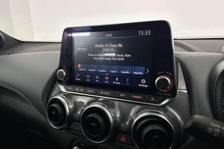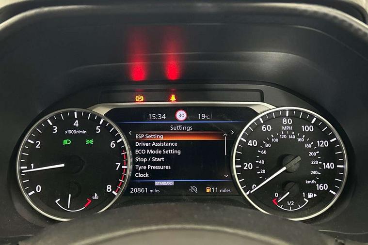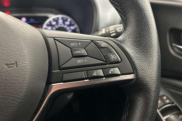 Alarm, Immobiliser, Intelligent Key with push button starter, Remote central locking, 6 speakers, Bluetooth system, USB, Aux-in and 12V socket, DAB Digital radio, Rear console USB port, ABS with EBD and brake assist, Active ride control, Active Trace Control, Driver and passenger airbags, Driver and passenger side airbags, Electric handbrake with auto hold function, Electronic Stability Programme (ESP), Front and rear curtain airbags, Height adjustable seatbelts, Hill start assist, Intelligent emergency braking with pedestrian and cyclist recognition, Rear door child safety locks, Seatbelt reminder for driver/front passenger and rear seats, Single tone horn, Three 3 point rear seatbelts, Traction control, Tyre pressure monitoring system, VDC Dynamic Vehicle Control, Ventilated rear brake discs, 3rd brake light, Auto dimming interior rear view mirror, Auto headlights, Automatic hazard signal with emergency stop signal, Body colour bumpers, Body colour door handles, Electrically adjustable door mirrors with integrated indicators, Follow me home headlights, Front and rear electric window with one touch driver window, Heated and auto folding door mirrors, High beam assist, LED daytime running lights, LED headlamps, LED rear fog lamp, LED rear lamps, Rain sensor windscreen wipers, Rear privacy glass, Rear side wing doors, Rear spoiler, Rear wiper, Three blink turn signal, 3 height adjustable rear headrests, 3 seat bench in 2nd row, 60/40 split folding rear seat, Automatic climate control, Card holder on driver sunvisor, Cloth upholstery, Driver and passenger sliding and reclining seats, Driver side rear coat hanger, Driver/passenger sunvisors and vanity mirrors, Front and rear cabin lighting, Front armrest, Front door pockets with bottle holders, Front head restraints, Front/rear passenger grab handles, Grey synthetic leather kneepad, Height adjustable driver's seat, Internal chrome door handles, Leather gearshift knob, Leather steering wheel, Luggage board, Luggage space lighting, Monoform sporty seats, Multifunction steering wheel, Rear door bottle holders, Single front passenger seat, Telescopic steering wheel adjustment, Two cupholders in front centre console, Two rear isofix child seat anchorage points with top tether, Welcome light and console tray ambient lighting, 7" full colour TFT screen combimeter, Apple CarPlay and Google Android auto, Drive modes select (Eco, normal and sport), eCall emergency call system, Emergency and breakdown call, Front parking sensor, Idle start/stop system, Intelligent lane intervention, Lane departure warning system, Nissan connect 8" touch screen entertainment system, Nissan connect nav with TomTom traffic, Nissan connect services and Wifi connection, Outside temperature sensor, Power Steering, Rear parking sensor, Traffic sign recognition, Trip computer, Voice recognition, Gasoline particulate filter,