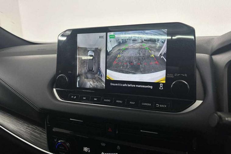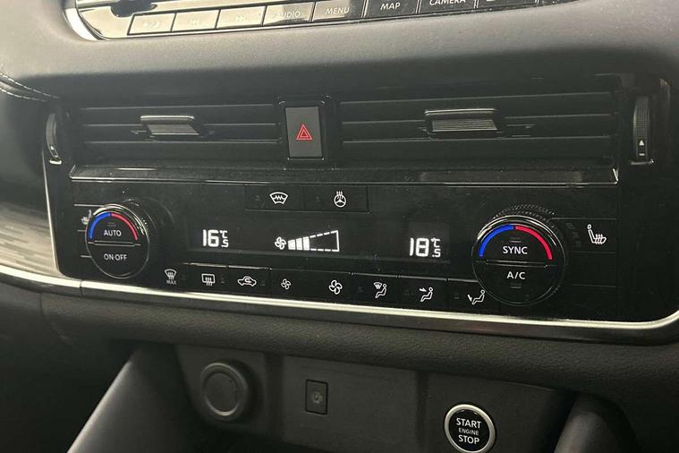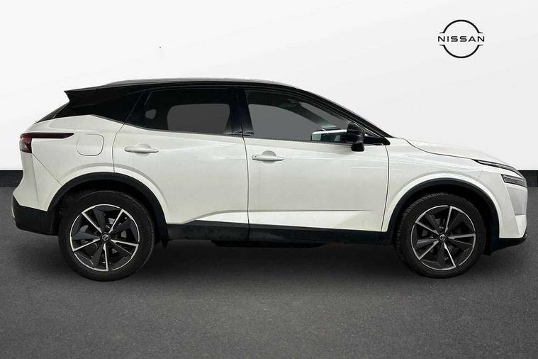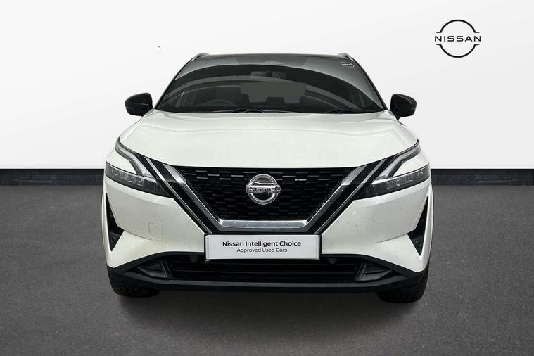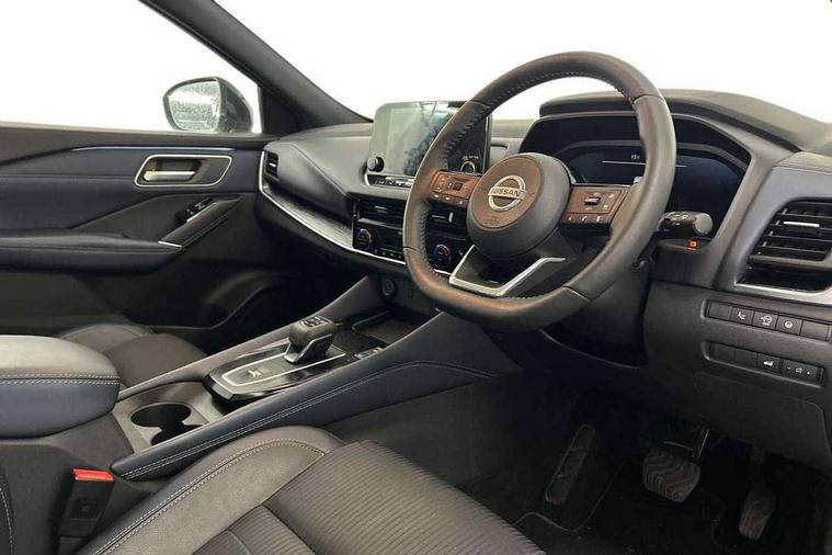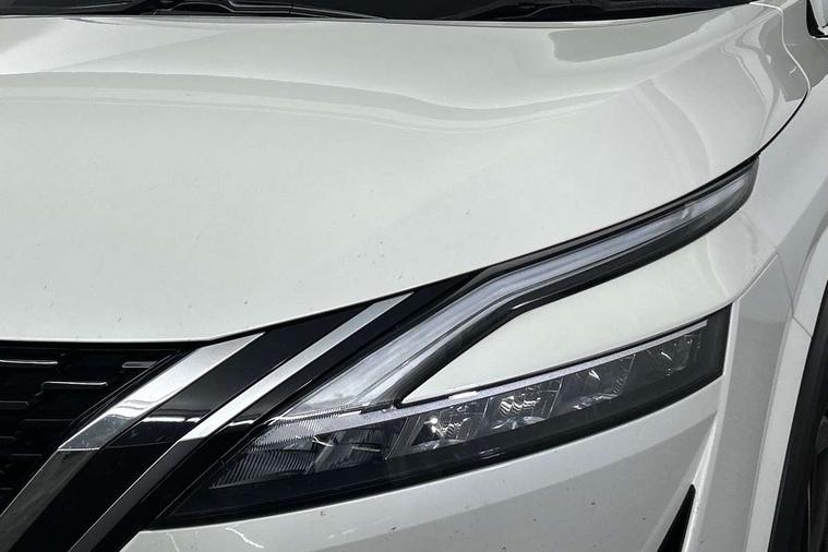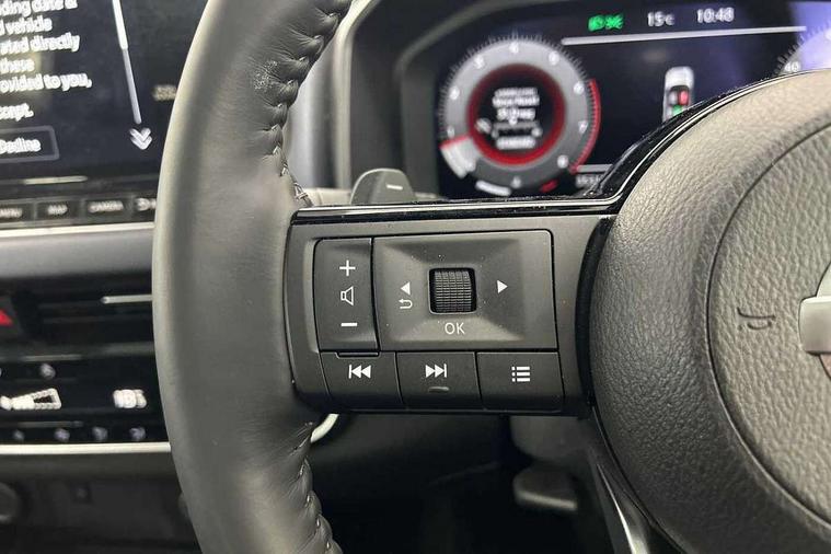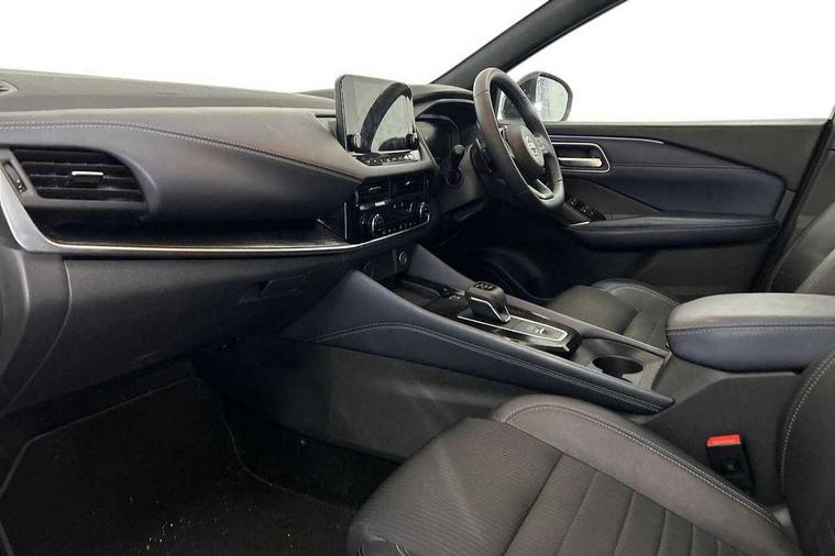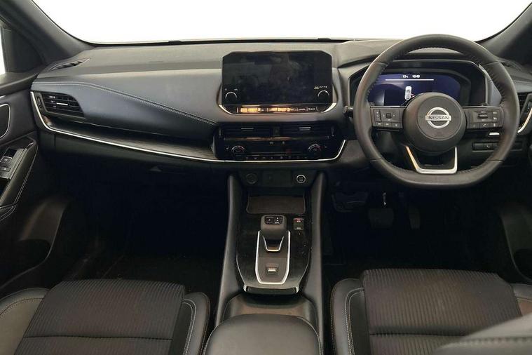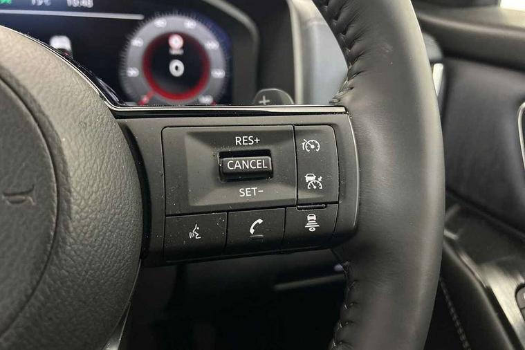 Heat pack - Qashqai, Tech Pack (ProPILOT + HUD), 19" alloy wheels, Capless fuel filler, Engine immobiliser, Nissan i-key, Remote central door locking with deadlocking, Thatcham Cat.1 alarm, 6 speakers, AM/FM audio system with DAB, Bluetooth audio streaming, Front USB connections (Type-A and Type-C), Rear USB charging only ports (Type-A and Type-C), 3x3 point rear seatbelt pretensioners + load limiters, ABS, ESP, EBD and brake assist, Active brake limited slip, Auto hold function, Child locks on rear doors, Curtain and front side, far side airbags, Driver and passenger airbags, Driver, passenger and 2nd row rear seat belt reminder, Electronic parking brake, Front seatbelt pretensioners + load limiters, Height adjustable front seatbelts, Hill start assist, Intelligent blind spot intervention, Intelligent front emergency braking with pedestrian, cyclist recognition and junction assist, Intelligent rear automatic braking, Tyre pressure monitoring system, Vehicle dynamic control, Auto dimming rear view mirror, Auto rear wiper when reversing, Body colour mirror caps, Body coloured door handles, Bodyside mouldings, Chrome side window finisher, Electric auto folding door mirrors, Electrically adjustable and heated door mirrors with LED turn indicator, Fixed panoramic glass roof with electric sunshade, Follow me home headlights, Intelligent auto headlights, LED daytime running lights, LED signature rear lights, One touch front and rear electric windows with remote opening and closing, Partially body coloured bumpers, Privacy glass, Rear roof spoiler, Rear styling plate, Roof rails, Shark fin antenna, Splash free rain sensing wipers, Super UV and infrared cut glass, Three blink turn signal, 12v power socket in dashboard and luggage, 2 way electrical driver lumbar adjustment, 2x Rear coat hooks, 3 rear headrests, 4 grab handles, 6 Luggage hooks - 4 on floor, 2 on side, 60/40 split folding rear seat, 8 way electric adjustable drivers seat, Ambient lighting around centre console, Ambient lighting in front doors, Centre console storage tray, Chrome interior door handles, Cloth/syntech leather monoform upholstery, Dark headlining, Driver and front passenger sunvisors with illuminated vanity mirrors, Driver seat back pocket, Dual zone automatic climate control with pollen filter, Front centre console and armrest, Front cupholder, Front door with bottle holders, Glovebox with light, Hard trunk cover, Height adjustable front headrests, Leather steering wheel, Luggage board system, Luggage space lighting, Manual lumbar support on passenger seat, Manually adjustable passenger (slide recline + lifter), Multifunction steering wheel, Passenger seat back pocket, Rear armrest with 2 cupholders, Rear door bottle holders, Soft PVC kneepad, Steering wheel gearshift paddles, Steering wheel switches, Tilt/telescopic adjustable steering wheel, Two rear isofix child seat anchorage points with top tether, Welcome light and doors with console tray ambient lighting, Blind spot warning, Drive modes (sport, normal, eco), Electric speed sensitive power steering, Emergency and breakdown call, Front and rear parking sensors, Full Digital 12.3" TFT Digital Combimeter, Hands free power tailgate, Idle stop/start system, Intelligent Cruise control (ICC), Intelligent driver alert system, Intelligent forward collision warning, Intelligent lane intervention, Lane departure prevention, Lane departure warning system, Moving object detection, Push button starter, Rear cross traffic alert, Traffic sign recognition with legal speed adjustment, Trip computer,
