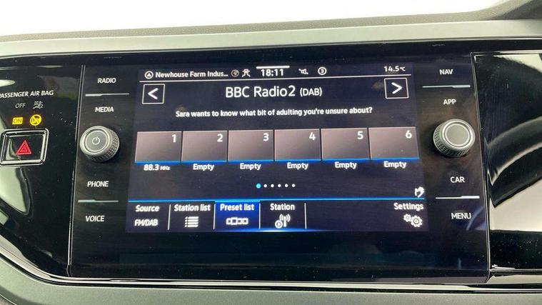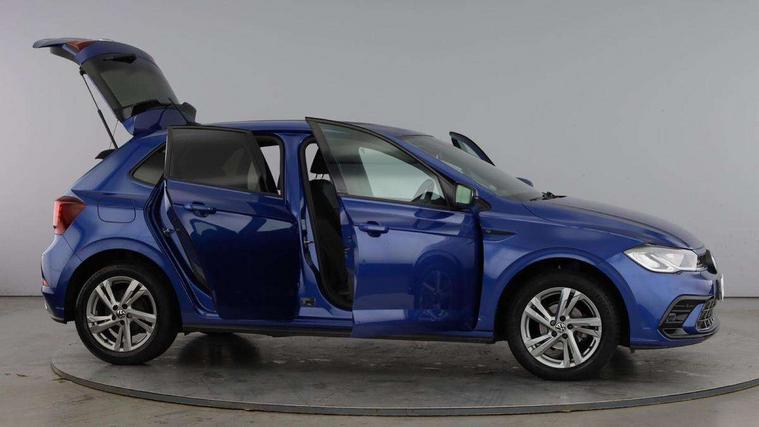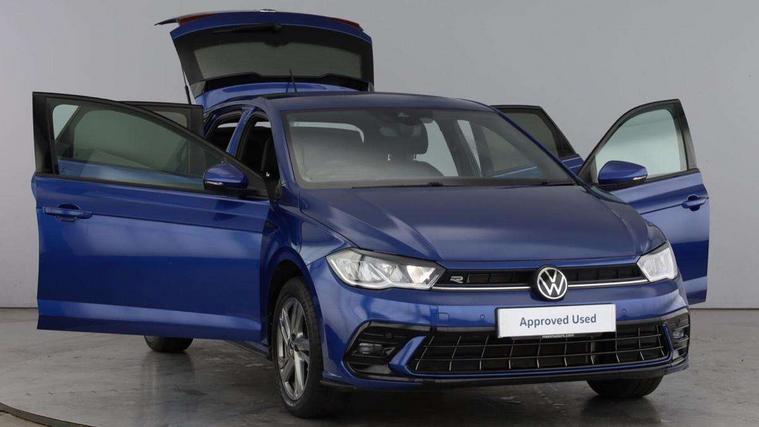 Adaptive cruise control without follow-to-stop and speed limiter, Bluetooth mobile phone interface, Digital Cockpit Pro with 10.25" Display, Driver alert system, Dynamic road sign display, Emergency call service, Power assisted speed sensitive steering, Preparation for We connect and We connect plus, Speedo and rev counter, electronic odometer, trip, service interval display and fuel gauge, Standard rear axle, Travel Assist - Lane keeping system and traffic jam assist, Travel assist including emergency assist, Trip computer, Warning signal and warning light for front and rear seatbelts not fastened, Washer fluid level indicator, Wireless app connect, Front wheel drive, Rear shock absorpion, Start-stop system with battery regeneration (recuperation - energy recovery during braking), DAB Digital radio, Diversity antenna for FM reception, Front and rear 6 speakers, Body colour bumpers, Body colour door handles, Electric front windows, Front scuff plates with R-Line logo, Heat insulating darkened glass in side and rear windows, Heat insulating glass windscreen, Power folding adjustable/heated exterior mirrors and front passenger exterior mirror lowering function, Rear electric windows, Rear fog light, Rear side wing doors, Rear windscreen washer and wiper with interval delay, Third brake light, 12V power socket in centre console, 2 USB-C ports in the front, 2 USB-C charging sockets on the center console in the rear, 3 rear head restraints, 60/40 split folding rear seat and rear seat bench not split, Air care climatronic air conditoning system with active combination filter and 2-zone temperature control, Black roof lining, Chrome plated radiator grille inserts, air vent surrounds and light switch surrounds, Door and side trim panel, Driver and front passenger seat height adjustment, Driver/passenger sunvisors with illuminated vanity mirrors, Front + rear carpet mats in recycled material, Front centre armrest, Front footwell illumination, Front seat backrest storage pockets, Front sports comfort seats, Handbrake lever handle in leather, Headliner in recycled material, Isofix child seat preparation easy-fit (for two outer rear seats, and front passenger seat) compatible with I-size, Karoso artvelours cloth upholstery, Leather trimmed gear knob, LED interior light with switch off delay and dimmer, 2 reading lights front and rear, Luggage compartment cover, Luggage compartment floor, Luggage compartment lighting, Lumbar adjustment for front seats, Multifunction steering wheel, Single front passenger seat, Stainless steel pedals, Standard pedal cluster, Light and sight pack - Polo R-Line/Black Edition, 3 point height adj front seatbelts + pretensioners, 3x3 point rear seatbelts, ABS, Driver and front passenger airbag with front passenger airbag deactivation, Drivers and front passengers safety optimised head restraints, ESC (Electronic stability control) + EDL (Electronic Differntial lock) and ASR (Traction control), Extended and predictive pedestrian/ cyclist protection, Front curtain and side airbags with center airbag, Hill hold control, Manual child lock in rear doors, Single tone horn, Tyre pressure loss indicator, Alarm with interior protection, Anti-theft alarm system with interior monitoring, backup horn, and towing protection, Anti-theft wheel bolts, Electronic engine immobiliser, Chrome applications on rotary light, mirror adjustment, window regulator switches, outlet with frame in black, Dark grey anodised matt decorative inserts in dash and front door panels, Low rolling resistance tyres,