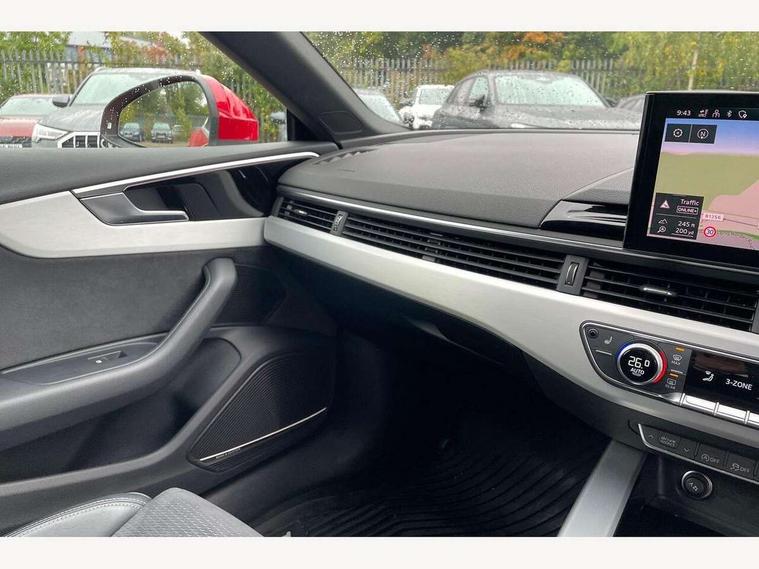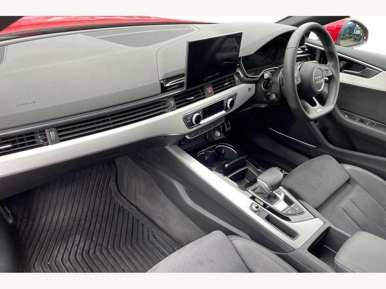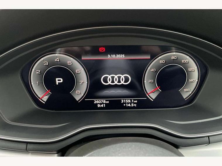 Audi connect safety and service (e-call), Audi connect with Amazon Alexa Integration, Audi drive select (Auto, Comfort, Dynamic and Individual), Audi parking system plus with front and rear sensors, Audi smartphone interface, Audi virtual cockpit - 12.3" full colour digital instrument cluster, vehicle/engine speed, Radio/media information+Driver assistance systems, Automatic start-stop system with coasting functionality and efficiency programme, Bluetooth interface, Electro-mechanical power steering, Email, calendar and text messages displayed via MMI, MMI nav+ with MMI touch - 10.1" high resolution MMI display, touch sensitive, 3D map, route/country info, dynamic route guide, personal route assist, Power operated tailgate, Rear view camera, Service interval indicator, Voice control system, Sports suspension lowered by 23mm, 8 passive loudspeakers, CD player, DAB digital radio reception, Two additional USB ports for rear passenger in rear centre console, Two SDXC card slots, Audi matrix LED headlights with LED rear lights + dynamic front and rear indicators, Auto dimming door mirrors, Auto dimming rear view mirror, Body colour bumpers, Body colour door handles, Body colour front spoiler lip, Body colour side sill trim, Body coloured door mirrors, Electric adjustable heated door mirrors, Electric folding door mirrors, Electric front windows, Front fog lights, Honeycomb structure radiator grille in grained matt black, Kerb-view function for passenger side, LED daytime running lights, LED side indicator lights integrated into door mirrors, LED third brake light, Matt aluminium silver tailpipe trim, Privacy glass, Rain and light sensors, Rear side wing doors, S line badges on front wings, S line front and rear bumpers with side skirts, S Line rear diffuser in matt titanium black with trim strip in matt aluminium silver, Side air inlets in grained matt black with matt aluminium silver inlay, Variable front intermittent wipers, Windscreen with acoustic glazing, 3 seat bench in 2nd row, 4 way electric lumbar support for driver and front passenger, 40/20/40 split folding 3 seater rear bench seat, Adjustable steering column, Black cloth headlining, Black perforated leather gearknob, Contrast stitching on seats, steering wheel and gear lever gaiter, Deluxe 3 zone electronic climate control, Front centre armrest, Front head restraints, Front/rear floor mats, Heated front seats, Illuminated door sill trim with S logo, ISOFIX child seat mounting and top tether, Luggage compartment mat, Manual seat adjustment, Rear centre armrest, Rear headrests, Single front passenger seat, Stainless steel pedals, Sunvisors with vanity mirrors, Tool kit, LED interior light pack - A5/RS5, 3x3 point rear seatbelts, 6 airbags - Driver, front passenger, curtain and side airbags, Electromechanical parking brake, Electronic Stabilisation Control (ESC) including ABS, ASR and EDL, Front passenger airbag deactivation, Height adjustable front seatbelts, Hill hold assist, Manual child lock in rear doors, Multi collision brake assist, Pop-up bonnet for pedestrian protection, Pre sense city, Seatbelt monitoring, Tyre pressure warning, Variable restraint system, Warning triangle and first aid kit, Anti theft alarm system, Anti theft wheel bolts, Immobiliser, Keyless Go, Remote central locking, Matt brushed aluminium inlays, Tyre repair kit,