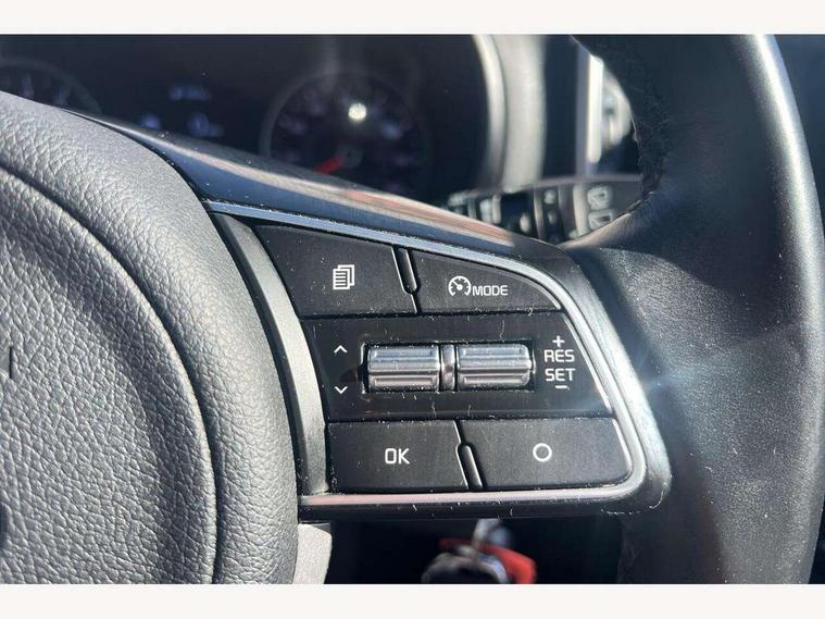 3.5" supervision cluster display, 8" touchscreen satellite navigation with European mapping and traffic messaging channel, Android auto with voice control, Apple car play with voice control, Cruise control + speed limiter, Driver attention warning, Emergency stop signalling system, Kia connected services featuring TomTom live, Lane keep assist, Rear parking sensor, Reversing camera, Speed limit information, Speed sensitive power steering, Telematics system with UVO connect services, Trip computer, Windscreen washer level indicator, Intelligent Stop and Go, 6 speaker audio system, Bluetooth audio streaming, DAB Radio with MP3, Rear USB port, Steering wheel mounted audio controls, USB/iPod/auxiliary input connections, All round electric windows with drivers auto up/down function, Auto dimming rear view mirror, Automatic lighting control, Automatic window defogger, Bi-Function halogen headlights, Black side sill and wheel arch body mouldings, Body colour door handles with chrome inserts, Body colour door mirrors, Chrome front bumper insert, Chrome grille surround, Chrome window surround, Electrically adjustable/heated/folding door mirrors with LED indicators, High beam assist, High gloss black diamond mesh radiator grille, LED daytime running lights, Privacy glass - Rear windows and tailgate, Projection front fog lights with matt black surround, Rain sensing front wipers, Rear spoiler, Rear wiper, Roof rails, Shark fin antenna, Tinted glass, Trailer stability assist, Welcome and follow-me home light functionality, Wide view drivers door mirror, 12V power in front and rear centre console, 3 x passenger assist grips, 60/40 split folding rear seat, Air filter, All-round height adjustable headrests, Centre cabin light, Centre console storage box, Driver and front passenger side sunvisors with illuminated vanity mirrors, Driver's seat manual height adjust, Drivers seat power lumbar support, Dual zone automatic air conditioning, Front and rear door storage, Front cabin LED map light with sunglasses case, Front door courtesy reflectors, Front seat and rear pockets, Front/rear centre armrests, Gear shift indicator, Glovebox illumination, Heated front and outer rear seats, Ignition key lock illumination, Interior door lock/unlock function, ISOFIX Child seat top tethers and anchor fixings, Leather steering wheel, Leather trimmed door armrests, Leather trimmed gearshift, Light grey headlining, Luggage area light, Luggage area load cover, Luggage net with hooks, Premium cloth upholstery, Rear centre armrest with cupholder, Rear coat hooks, Satin chrome interior door handles, Tilt/telescopic adjustable steering wheel, Ventilation ducts to rear compartment, Active front headrests, All round 3-point seatbelts, Anti-lock braking system with electronic brakeforce distribution, Dual front side airbags, Electronic stability control with downhill brake control, Front passenger airbag cut-off switch, Front seatbelt pretensioners + load limiters, Height adjustable front seatbelts, Hill start assist control (HAC), Impact sensing auto door unlocking, Rear door child safety locks, Traction control, Twin curtain airbags with roll over sensor, Twin front airbags, Tyre pressure monitoring system, Advanced anti-theft system including immobiliser and alarm, Door deadlocks, Locking wheel nuts, Remote central door locking with fold away key, Speed sensitive auto door locking, Visible vehicle identification number, Metallic finish centre fascia, 17" Alloy wheels, Tyre mobility kit,