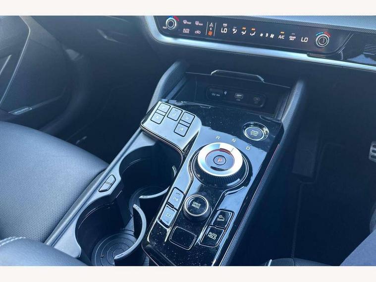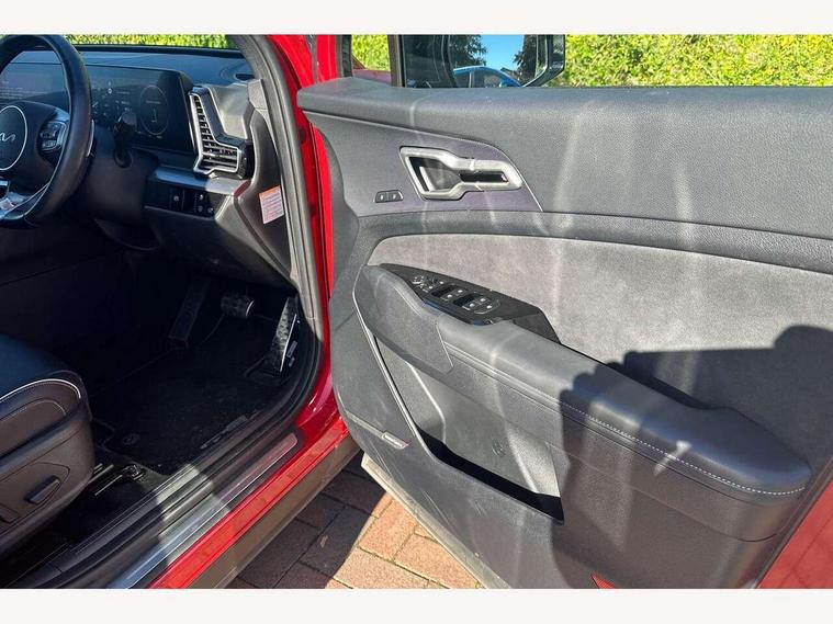 12.3" Display with navigation, 12.3" supervision colour cluster display, 360 degree around view monitor, Apple car play/Android Auto with voice control, Blind spot collision avoidance assist, Blind spot view monitor, Drive mode selector, E-call, Forward collision avoidance assist (FCA) - city/pedestrian/cyclist/junction covering, Front and rear parking sensors, Highway Driving Assist (HDA), Intelligent speed limit assist, Kia Connect (UVO), Lane Following Assist (LFA), Lane keep assist, Low washer fluid warning, Parking collision avoidance assist (PCA), Remote smart parking assist, Reversing camera system integrated into centre fascia screen, Smart cruise control with stop and go functionality, Smart power tailgate, Speed sensitive power steering, Trip computer, Windscreen washer level indicator, Wireless Smartphone charger, Intelligent Stop and Go, Bluetooth audio streaming, DAB Radio with MP3, Harman Kardon premium sound system, Rear USB port, Steering wheel mounted audio controls, USB C type charging ports on centre console, USB C type charging ports on side of front seats, USB port for connection of a media device, All round electric windows with drivers and front passenger auto up/down function, Automatic headlight control system, Automatic window defogger, Backlite glass heated with timer, Body colour and black bumper with silver accents, Body colour exterior door handles, Body colour radiator upper garnish and door garnish, Dual LED adaptive headlamps, Electric panoramic glass sunroof (Electric one touch with safety function), Electrically adjustable/heated/folding door mirrors with LED indicators, Front and rear chrome skid plates, Gloss black door mirrors, Gloss black radiator grille, Gloss black side sill and wheel arch body mouldings, Glossy black roof rack, High beam assist, Interior electrochromic mirror, LED daytime running lights, LED front fog lamps, LED High mounted stop light, LED rear combination lamp, Rain sensing wipers with aero blades, Rear fog lamp, Rear privacy glass, Rear side wing doors, Rear spoiler, Rear wiper, Satin finished beltline, Silver coloured inserts to bumpers, Tinted rear glass, Trailer stability assist, 10 way driver/8 way passenger electrically power adjustable seats, 12V power socket in front centre fascia and luggage compartment, 3 seat bench in 2nd row, 3 x passenger assist grips, 40/20/40 split folding rear seat, All-round height adjustable headrests, Ambient lighting, Black headlining, Centre console storage box, Cupholders in rear armrest, D-Shaped sports leather steering wheel and perforated inserts with GT-Line logo, Door courtesy lamps, Drink holder at centre armrest, Driver and front passenger side sunvisors with illuminated vanity mirrors, Driver seat memory function, Drivers seat power lumbar support, Front and rear door storage, Front seat and rear pockets, Front/rear centre armrests, Gear shift indicator, Glovebox illumination, Heated front and outer rear seats, Heated steering wheel, Interior door lock/unlock function, ISOFIX Child seat top tethers and anchor fixings outer rear seats, LED interior personal lamp, LED lighting in overhead console, Luggage area LED light, Luggage area load cover, Luggage net with hooks, Metal paint interior door handles, Paddle shift controls, Rear cabin light, Rear coat hooks, Single front passenger seat, Sports pedals, Suede leather upholstery, Three zone climate control, Tilt/telescopic adjustable steering wheel, Ventilated front seats, Ventilation ducts to rear compartment, Active front headrests, All round 3-point seatbelts, Anti-lock braking system (ABS), Dual front side airbags, Dual horn, Electronic parking brake, Electronic stability control with downhill brake control, Front passenger airbag cut-off switch, Front seatbelt pretensioners + load limiters, Height adjustable front seatbelts, Hill start assist control (HAC), Impact sensing auto door unlocking, Multi collision brake assist, Rear door child safety locks, Rear seat alert system, Traction control, Twin curtain airbags, Twin front airbags, Tyre pressure monitoring system, Advanced anti-theft system including immobiliser and alarm, Door deadlocks, Engine Start/Stop Button with Smart Entry System, Locking wheel nuts, Speed sensitive auto door locking, Visible vehicle identification number, Aluminium pattern finish centre fascia and door garnish, 18" GT-Line alloy wheels, Michelin tyres, Tyre mobility kit,