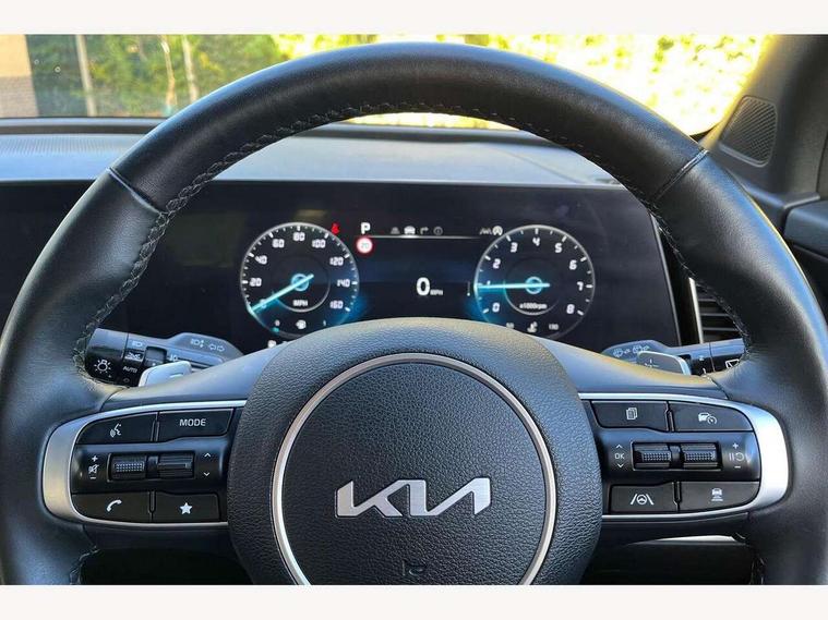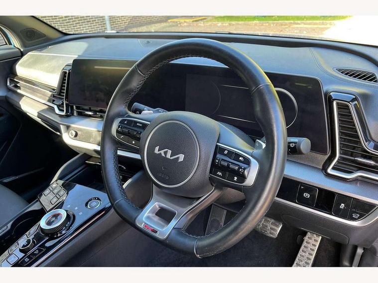 12.3" Display with navigation, 12.3" supervision colour cluster display, 360 degree around view monitor, Apple car play/Android Auto with voice control, Blind spot collision avoidance assist, Blind spot view monitor, Drive mode selector, Driver attention warning, E-call, Forward collision avoidance assist (FCA) - city/pedestrian/cyclist/junction covering, Front and rear parking sensors, Highway Driving Assist (HDA), Intelligent speed limit assist, Kia Connect (UVO), Lane Following Assist (LFA), Lane keep assist, Low washer fluid warning, Motor driven power steering, Parking collision avoidance assist (PCA), Rear cross traffic collision avoidance assist (RCCA), Reversing camera system integrated into centre fascia screen, Safe exit warning (SEW), Smart cruise control with stop and go functionality, Smart power tailgate, Tailgate, Trip computer, Windscreen washer level indicator, Wireless Smartphone charger, Intelligent Stop and Go, Bluetooth audio streaming, DAB Radio with MP3, Harman Kardon premium sound system, Rear USB port, Steering wheel mounted audio controls, USB C type charging ports on centre console, USB C type charging ports on side of front seats, USB port for connection of a media device, All round electric windows with drivers and front passenger auto up/down and safety function, Auto dimming rear view mirror, Automatic headlight control system, Automatic window defogger, Backlite glass heated with timer, Black and body coloured bumpers, Body colour exterior door handles, Body colour radiator upper garnish and door garnish, Dual LED headlights with adaptive driving beam, Electrically adjustable/heated/folding door mirrors with LED indicators, Front and rear chrome skid plates, Gloss black door mirrors, Gloss black radiator grille, Gloss black side sill and wheel arch body mouldings, Glossy black roof rack, GT-Line exterior styling, High beam assist, Interior electrochromic mirror, LED daytime running lights, LED front fog lamps, LED High mounted stop light, LED rear combination lamp, Panoramic sunroof with tilting and sliding function with electric blind, Rain sensing wipers with aero blades, Rear fog lamp, Rear privacy glass, Rear side wing doors, Rear spoiler, Rear wiper, Satin finished beltline, Silver window surround, Tinted rear glass, Trailer stability assist, 10 way driver/8 way passenger electrically power adjustable seats, 12V power socket in front centre fascia and luggage compartment, 3 seat bench in 2nd row, 3 x passenger assist grips, 40/20/40 split folding rear seat, All-round height adjustable headrests, Aluminium pedals, Ambient lighting, Automatic air conditioning, Black headlining, Centre console storage box, Cupholders in rear armrest, Door courtesy lamps, Drink holder at centre armrest, Driver and front passenger side sunvisors with illuminated vanity mirrors, Driver seat memory function, Drivers seat power lumbar support, Front and rear door storage, Front seat and rear pockets, Gear shift indicator, Glovebox illumination, GT-Line Interior Styling, Heated front and outer rear seats, Heated steering wheel, Interior door lock/unlock function, ISOFIX Child seat top tethers and anchor fixings outer rear seats, Leather steering wheel, LED front cabin light, LED interior personal lamp, LED lighting in overhead console, Luggage area LED light, Luggage area load cover, Luggage area parcel shelf, Luggage board, Luggage net with hooks, Metal paint interior door handles, Paddle shift controls, Rear air conditioning, Rear cabin light, Rear coat hooks, Single front passenger seat, Suede leather upholstery, Tilt/telescopic adjustable steering wheel, Ventilated front seats, Ventilation ducts to rear compartment, Active front headrests, All round 3-point seatbelts, Anti-lock braking system (ABS), Dual front side airbags, Dual horn, Dynamic brake control, Electronic parking brake with auto hold function, Electronic stability control with downhill brake control, Front passenger airbag cut-off switch, Front seatbelt pretensioners + load limiters, Height adjustable front seatbelts, Hill start assist control (HAC), Impact sensing auto door unlocking, Multi collision brake assist, Rear airbags, Rear door child safety locks, Rear seat alert system, Seatbelt reminder warning, Traction control, Twin curtain airbags, Twin front airbags, Tyre pressure monitoring system, Vehicle stability management, Advanced anti-theft system including immobiliser and alarm, Door deadlocks, Engine Start/Stop Button with Smart Entry System, Locking wheel nuts, Smart key with motion sensor, Speed sensitive auto door locking, Visible vehicle identification number, Aluminium pattern finish centre fascia and door garnish, 19" GT-Line alloy wheels, Tyre mobility kit,
