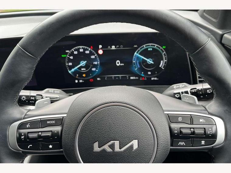12.3" Display with navigation, 12.3" supervision colour cluster display, 360 degree around view monitor, Apple car play/Android Auto with voice control, Blind spot collision avoidance assist, Blind spot view monitor, Drive mode selector, Driver attention warning, E-call, Forward collision avoidance assist (FCA) - city/pedestrian/cyclist/junction covering, Front and rear parking sensors, Highway Driving Assist (HDA), Intelligent speed limit assist, Kia Connect (UVO), Lane Following Assist (LFA), Lane keep assist, Low washer fluid warning, Motor driven power steering, Parking collision avoidance assist (PCA), Rear cross traffic collision avoidance assist (RCCA), Remote smart parking assist, Reversing camera system integrated into centre fascia screen, Safe exit warning (SEW), Smart cruise control with stop and go functionality, Smart power tailgate, Tailgate, Trip computer, Windscreen washer level indicator, Wireless Smartphone charger, Intelligent Stop and Go, Terrain mode select (Mud, Snow, Sand), Bluetooth audio streaming, DAB Radio with MP3, Harman Kardon premium sound system, Rear USB port, Steering wheel mounted audio controls, USB C type charging ports on centre console, USB C type charging ports on side of front seats, USB port for connection of a media device, All round electric windows with drivers and front passenger auto up/down and safety function, Auto dimming rear view mirror, Automatic headlight control system, Automatic window defogger, Backlite glass heated with timer, Black and body coloured bumpers, Body colour exterior door handles, Body colour radiator upper garnish and door garnish, Dual LED headlights with adaptive driving beam, Electrically adjustable/heated/folding door mirrors with LED indicators, Front and rear chrome skid plates, Gloss black door mirrors, Gloss black radiator grille, Gloss black side sill and wheel arch body mouldings, Glossy black roof rack, GT-Line exterior styling, High beam assist, Interior electrochromic mirror, LED daytime running lights, LED front fog lamps, LED High mounted stop light, LED rear combination lamp, Panoramic sunroof with tilting and sliding function with electric blind, Rain sensing wipers with aero blades, Rear fog lamp, Rear privacy glass, Rear side wing doors, Rear spoiler, Rear wiper, Satin finished beltline, Silver window surround, Tinted rear glass, Trailer stability assist, 10 way driver/8 way passenger electrically power adjustable seats, 12V power socket in front centre fascia and luggage compartment, 3 seat bench in 2nd row, 3 x passenger assist grips, 40/20/40 split folding rear seat, All-round height adjustable headrests, Aluminium pedals, Ambient lighting, Automatic air conditioning, Black headlining, Centre console storage box, Cupholders in rear armrest, Door courtesy lamps, Drink holder at centre armrest, Driver and front passenger side sunvisors with illuminated vanity mirrors, Driver seat memory function, Drivers seat power lumbar support, Front and rear door storage, Front seat and rear pockets, Gear shift indicator, Glovebox illumination, GT-Line Interior Styling, Heated front and outer rear seats, Heated steering wheel, Interior door lock/unlock function, ISOFIX Child seat top tethers and anchor fixings outer rear seats, Leather steering wheel, LED front cabin light, LED interior personal lamp, LED lighting in overhead console, Luggage area LED light, Luggage area load cover, Luggage area parcel shelf, Luggage board, Luggage net with hooks, Metal paint interior door handles, Paddle shift controls, Rear air conditioning, Rear cabin light, Rear coat hooks, Single front passenger seat, Suede leather upholstery, Tilt/telescopic adjustable steering wheel, Ventilated front seats, Ventilation ducts to rear compartment, Active front headrests, All round 3-point seatbelts, Anti-lock braking system (ABS), Dual front side airbags, Dual horn, Dynamic brake control, Electronic parking brake with auto hold function, Electronic stability control with downhill brake control, Front passenger airbag cut-off switch, Front seatbelt pretensioners + load limiters, Height adjustable front seatbelts, Hill start assist control (HAC), Impact sensing auto door unlocking, Multi collision brake assist, Rear airbags, Rear door child safety locks, Rear seat alert system, Seatbelt reminder warning, Traction control, Twin curtain airbags, Twin front airbags, Tyre pressure monitoring system, Vehicle stability management, Advanced anti-theft system including immobiliser and alarm, Door deadlocks, Engine Start/Stop Button with Smart Entry System, Locking wheel nuts, Smart key with motion sensor, Speed sensitive auto door locking, Visible vehicle identification number, Aluminium pattern finish centre fascia and door garnish, 19" GT-Line alloy wheels, Tyre mobility kit,