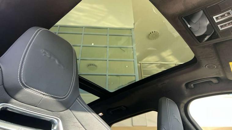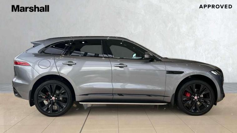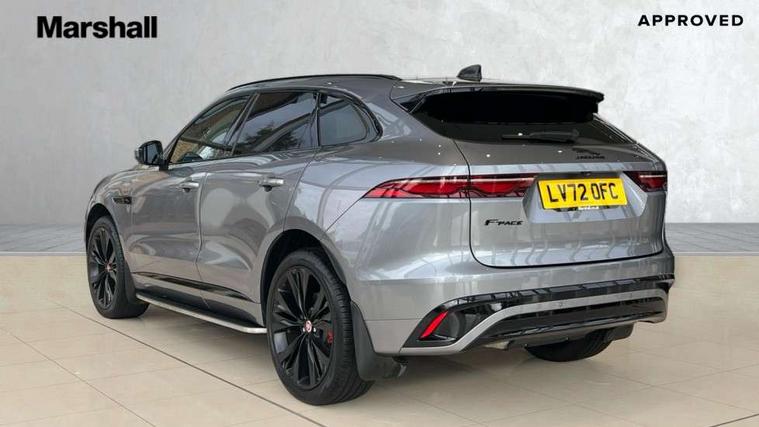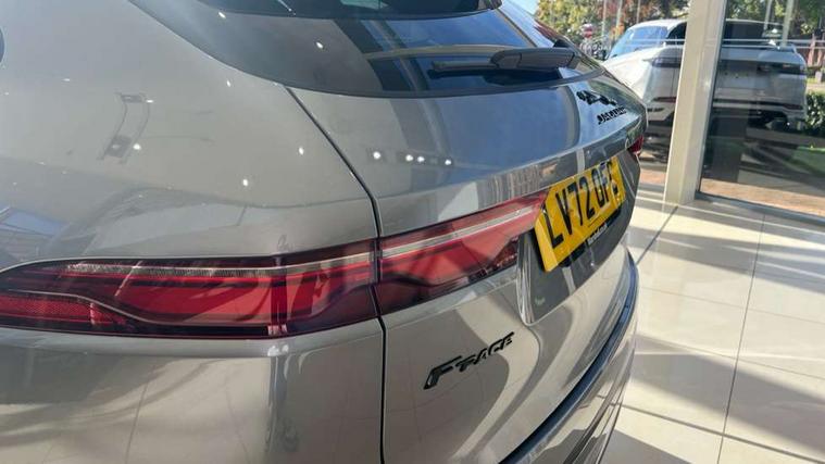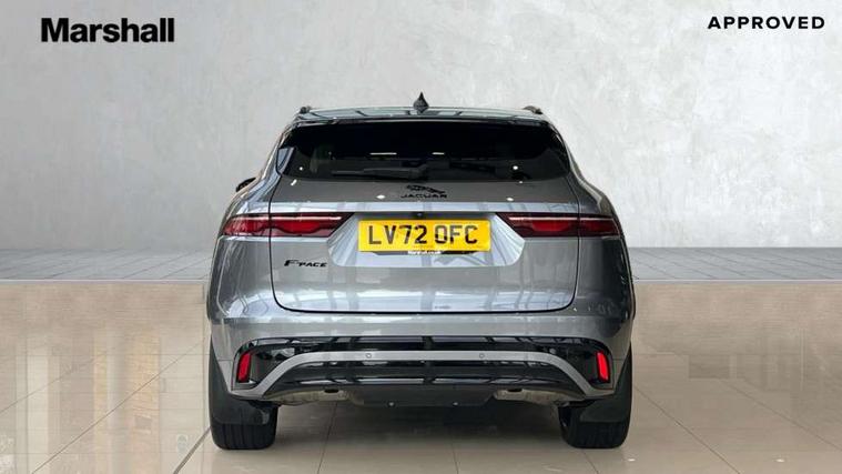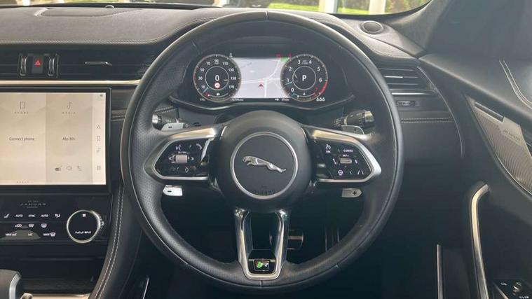 11.4" touchscreen, Adaptive cruise control with steering assist, Android Auto, Apple car play, Blind spot assist, Bluetooth connectivity, Clear exit monitor, Driver alert system, Driver condition monitor, eCall emergency call system, Eco driving style assistant, Electric power assisted steering, InControl remote, Jaguar Toggle shift selector, Lane departure warning system, Lane keep assist, Outside temperature gauge, Personalisation profile management, Pivi pro connected navigation system with app interface and media storage, Pro services and wifi hotspot, Push button starter, Rear collision monitor, Rear traffic monitor, Service interval indicator, Speed proportional steering, Start up sequence with movement in dials and lighting, Traffic sign recognition with adaptive speed limiter, Trip computer, Voice control system, 8 speed automatic transmission, Adaptive dynamics, All terrain progress control, All Wheel Drive (AWD), Configurable dynamics, Open differential with torque vectoring by braking, AM/FM radio, Bluetooth streaming, DAB Radio (Digital Audio Broadcasting), Dynamic volume control, InControl apps, InControl protect, iPod integration, 3 flash lane change indicators, Animated directional indicators, Approach Illumination, Auto dimming rear view mirror, Automatic headlights, Body colour door mirrors, Electric heated/power fold memory door mirrors with approach lights and auto dimming driver side, Electric windows with one touch open/close and anti trap, F-Pace and R Dynamic badge, Green tinted glass, Heated front windscreen + heated washer jets, Heated rear window with timer, Illuminated metal tread plates with Jaguar script, Jaguar script and leaper, LED High level third brake light, LED tail lights, Metal load space scuff plates, Non acoustic front windscreen, R Dynamic badge on side door, Rain sensor windscreen wipers, Rear fog lights, Rear metal tread plates, Rear side wing doors, Rear wiper, Trailer stability assist, Variable front intermittent wipers, 12V power point front, 3 rear headrests, 3 seat bench in 2nd row, Air distribution speed, Bright metal foot pedals, Centre armrest console, Centre console with side storage, Deletion loadspace storage rails, Door sill tread plates, Electrically adjustable steering column, Fold flat front seats, Front centre armrest with storage compartment, Front door storage space, Glovebox finisher with jaguar script, Heated steering wheel, Hooks in loadspace, Illuminated glovebox, Interior front door handles with separate locking switches, ISOFIX on outer rear seats, Jaguar sense, Luggage tie downs in loadspace, Mist sensing, Multifunction steering wheel, Overhead lighting console, Overhead stowage for sunglasses, Passive front head restraints, Premium cabin lighting, Premium carpet mats, R-Dynamic branded leather steering wheel, Rear air vents, Rear armrest with twin cupholders, Rear centre headrest, Rear door storage space, Reversible boot floor, Satin chrome gearshift paddles, Shopping bag hook, Single front passenger seat, Sunvisors with illuminated vanity mirrors, Twin front cupholders with cover, Online Pack with data plan - F-Pace, 355mm front brakes and 325mm rear brakes, 3x3 point rear seatbelts, ABS, All surface progress control (ASPC), Brake pad warning light, DSC - Dynamic Stability Control, Electric parking brake (EPB), Emergency brake assist, Front airbags with passenger seat occupant detector, Front and rear seatbelt reminder, Front side airbags, Full length side window curtain airbag, Hill launch assist, Power operated child locks, Torque vectoring brake, Traction control, Tyre pressure monitoring system, Immobiliser, Keyless entry, Keyless Start, Locking wheel nuts, Perimeter alarm, Remote central locking, Valet mode,