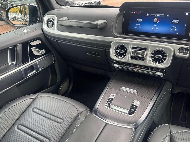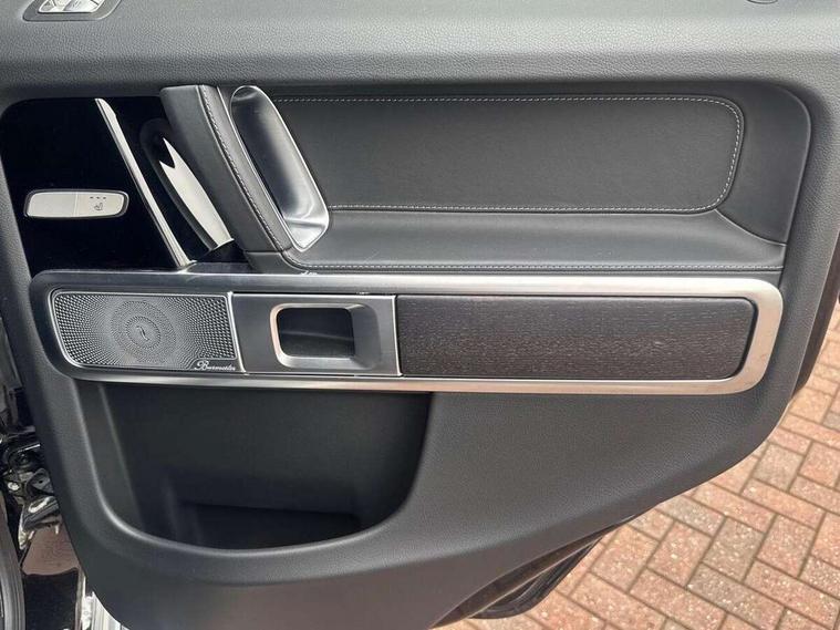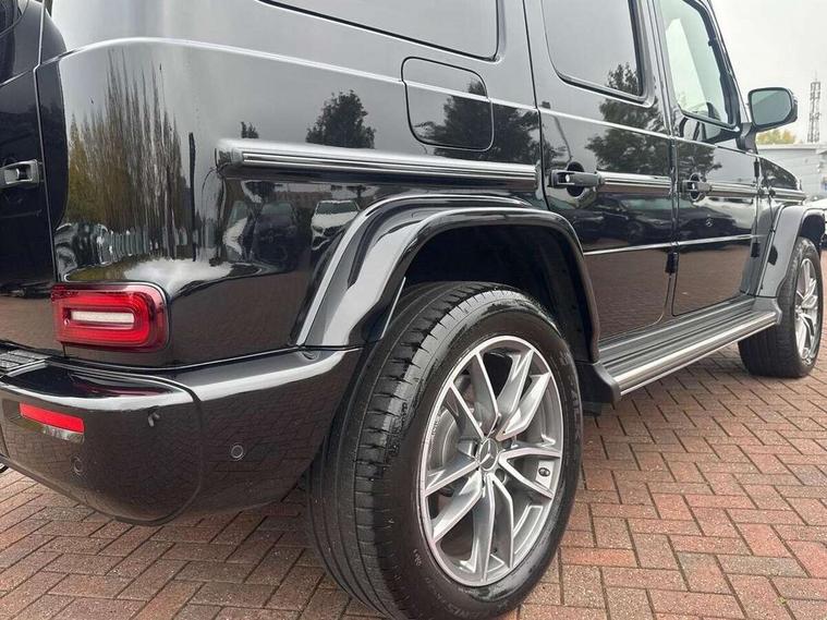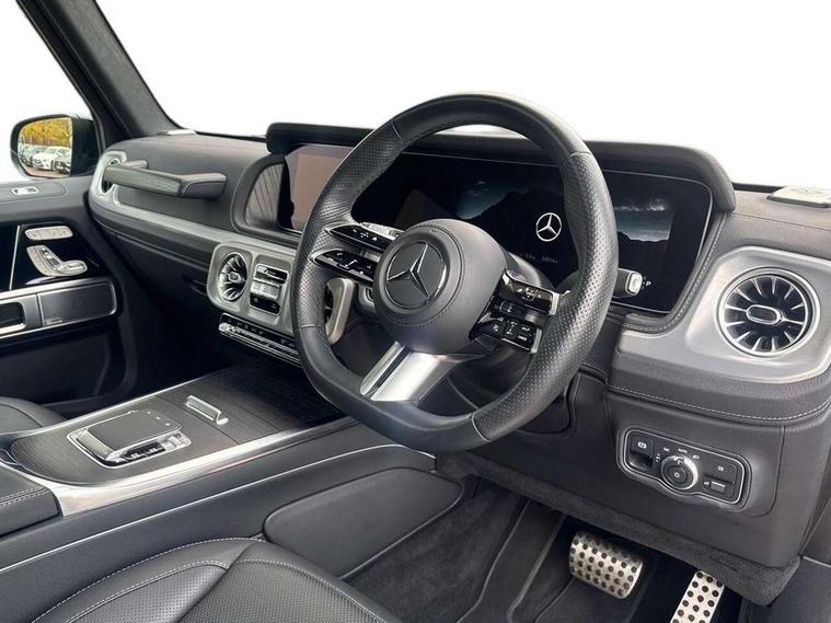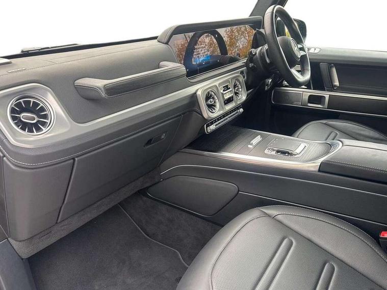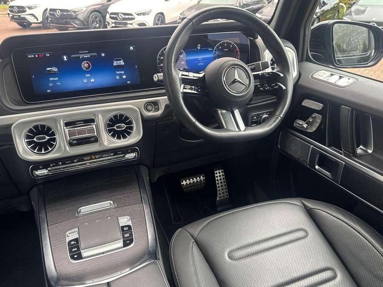 360 degree parking camera, Active parking assist with PARKTRONIC, Attention assist, Bluetooth interface for hands free telephone, Communications module (LTE), DYNAMIC SELECT - 7 drive programmes (Comfort, eco, sport, individual, trail, rock, sand), MBUX augmented reality for navigation, Mercedes connect me, Mercedes-Benz emergency call, PAS, Passive person presence reminder, Remote Services Premium, Service indicator (ASSYST), Smartphone integration with Apple CarPlay and Android auto, Trip computer, Widescreen cockpit with dual bonded 12.3" widescreen displays, Wireless charging, 4MATIC permanent four wheel drive, 9G-TRONIC transmission with cruise control and variable speed limiter, Differential lock, Low range gear reduction (Electronically selectable while driving), Petrol Particulate Filter, Suspension with selective passive damping system, 2 USB ports in the rear, Aux-in socket, Burmester 3D surround sound system, DAB digital radio module, MBUX multimedia system, Sound personalisation, 3rd brake light, Adaptive highbeam assist plus - automatic low high beam switching, Automatic headlamp activation, Automatically dimming rear view mirror, Bumper insert in stainless steel, Dark tinted heat insulated glass, Door mirrors - Electrically adjustable/heated/integrated indicators, front area lighting and automatically dimming driver's mirror, Electric sunroof sliding, with one-touch opening, Front and rear electric windows, Heated windscreen, LED daytime running lights, Privacy glass - Dark glass from B-pillar backwards, Rain sensor windscreen wipers, Rear side wing doors, Rear wiper, Towbar, Trailer coupling with ESP trailer stabilisation, Transparent Bonnet, Underguard in silver, 1/3 to 2/3 split folding rear seats, 12V socket in centre console, rear and load compartment, 2 cup holders in front and rear, 3 seat bench in 2nd row, Ambient lighting with 64 colours and projection of brand logo, AMG floor mats with AMG lettering, Centre armrest between front seats with integrated stowage compartment, Cushion length adjustment with gapless cushion, Designo dinamica microfibre roof lining in Black, Electrically adjustable steering column, with automatic adjustment for entry/exit, Front head restraints, Front seats with heated and electrically adjustable, memory function for seats, head restraints, exterior mirrors and steering wheel, Heated front seats, Heated rear seats, Heated steering wheel, Ionisation of interior air including fine particle activated charcoal filter system, Luggage compartment cover, Multifunction sports steering wheel in nappa leather, Partition net, Rear head restraints, Single front passenger seat, THERMOTRONIC automatic climate control system with 3 climate zones and 3 climate styles - Medium, Diffuse and Focused, Assistance package - G Class, Stowage space pack - G class, 3x3 point rear seatbelts, ABS with Brake Assist, Airbags - windowbags, Brake calipers with Mercedes-Benz lettering, Driver/Front Passenger airbags, Electronic four wheel traction control, ESP with ASR, Front side airbags, Hill start assist, i-Size child seat attachment system for the outer rear seats, PRE-SAFE system for preventive occupant protection, Rear door child safety locks, Rear side airbags, Seat belts, 3-point design in black, Seatbelt pretensioners, Tyre pressure monitoring system, Anti-theft alarm system/interior protection with tow-away protection and interior monitoring systems, Dashcam, Guard 360 degree vehicle protection plus, Immobiliser, Keyless Go starting function, Full size spare wheel,