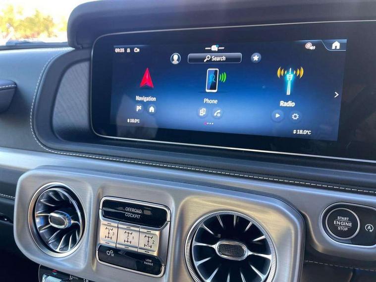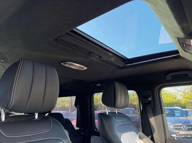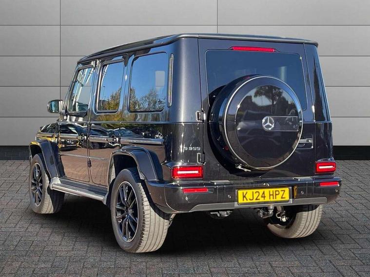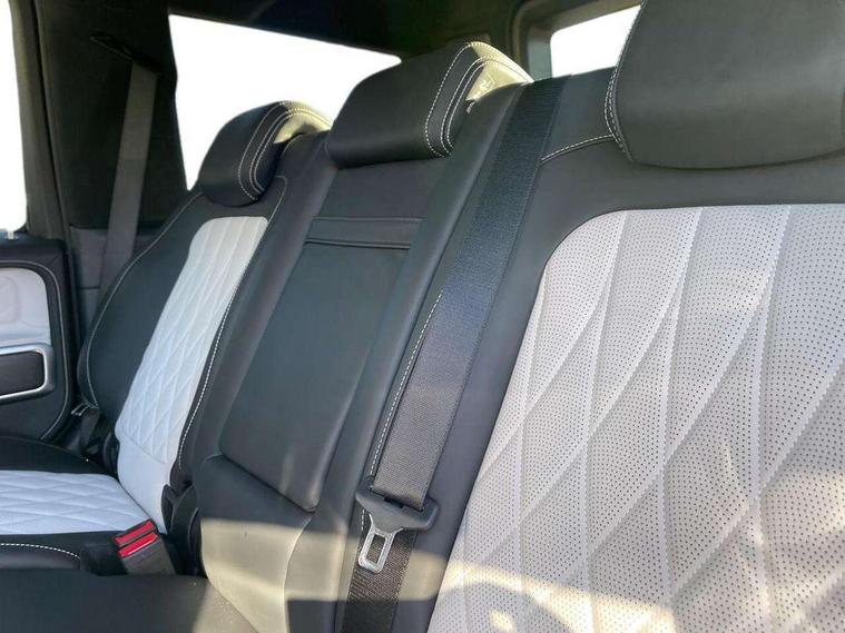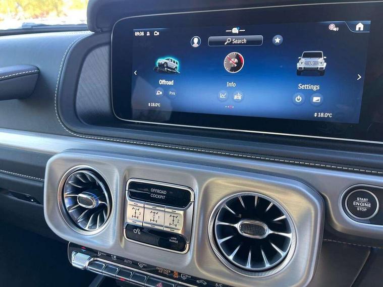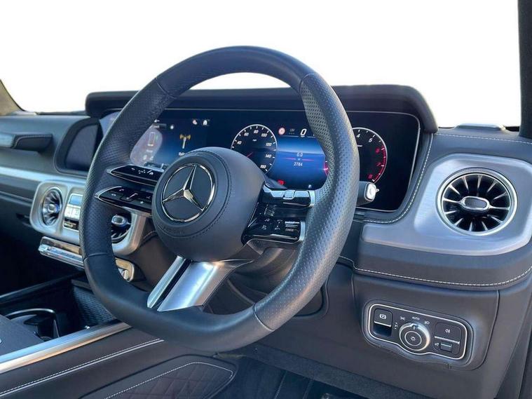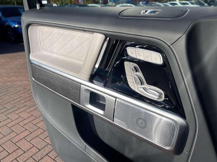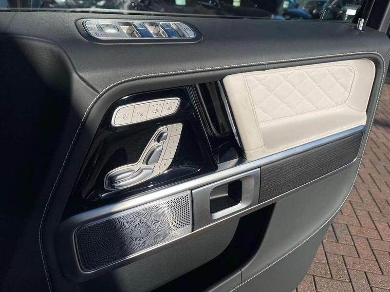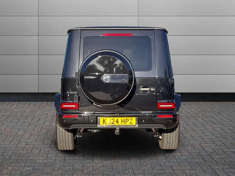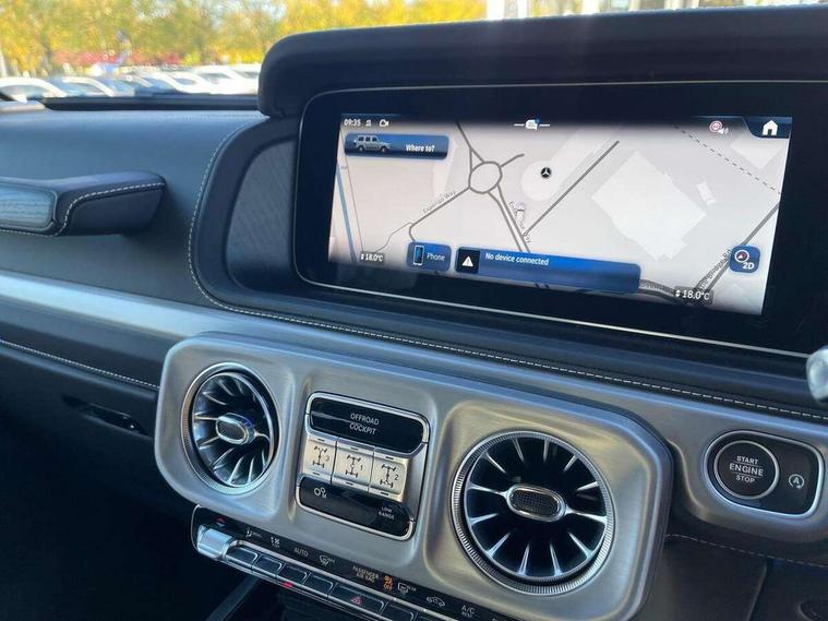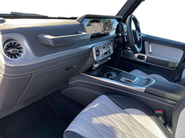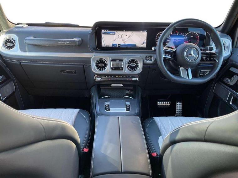 360 degree parking camera, Active parking assist with PARKTRONIC, Attention assist, Bluetooth interface for hands free telephone, Communications module (LTE), DYNAMIC SELECT - 7 drive programmes (Comfort, eco, sport, individual, trail, rock, sand), MBUX augmented reality for navigation, Mercedes connect me, Mercedes-Benz emergency call, PAS, Passive person presence reminder, Remote Services Premium, Service indicator (ASSYST), Smartphone integration with Apple CarPlay and Android auto, Trip computer, Widescreen cockpit with dual bonded 12.3" widescreen displays, Wireless charging, 4MATIC permanent four wheel drive, 9G-TRONIC transmission with cruise control and variable speed limiter, Differential lock, Low range gear reduction (Electronically selectable while driving), Petrol Particulate Filter, Suspension with selective passive damping system, 2 USB ports in the rear, Aux-in socket, Burmester 3D surround sound system, DAB digital radio module, MBUX multimedia system, Sound personalisation, 3rd brake light, Adaptive highbeam assist plus - automatic low high beam switching, Automatic headlamp activation, Automatically dimming rear view mirror, Bumper insert in stainless steel, Dark tinted heat insulated glass, Door mirrors - Electrically adjustable/heated/integrated indicators, front area lighting and automatically dimming driver's mirror, Electric sunroof sliding, with one-touch opening, Front and rear electric windows, Heated windscreen, LED daytime running lights, Privacy glass - Dark glass from B-pillar backwards, Rain sensor windscreen wipers, Rear side wing doors, Rear wiper, Towbar, Trailer coupling with ESP trailer stabilisation, Transparent Bonnet, Underguard in silver, 1/3 to 2/3 split folding rear seats, 12V socket in centre console, rear and load compartment, 2 cup holders in front and rear, 3 seat bench in 2nd row, Ambient lighting with 64 colours and projection of brand logo, AMG floor mats with AMG lettering, Centre armrest between front seats with integrated stowage compartment, Cushion length adjustment with gapless cushion, Designo dinamica microfibre roof lining in Black, Electrically adjustable steering column, with automatic adjustment for entry/exit, Front head restraints, Front seats with heated and electrically adjustable, memory function for seats, head restraints, exterior mirrors and steering wheel, Heated front seats, Heated rear seats, Heated steering wheel, Ionisation of interior air including fine particle activated charcoal filter system, Luggage compartment cover, Multifunction sports steering wheel in nappa leather, Partition net, Rear head restraints, Single front passenger seat, THERMOTRONIC automatic climate control system with 3 climate zones and 3 climate styles - Medium, Diffuse and Focused, Assistance package - G Class, Stowage space pack - G class, 3x3 point rear seatbelts, ABS with Brake Assist, Airbags - windowbags, Brake calipers with Mercedes-Benz lettering, Driver/Front Passenger airbags, Electronic four wheel traction control, ESP with ASR, Front side airbags, Hill start assist, i-Size child seat attachment system for the outer rear seats, PRE-SAFE system for preventive occupant protection, Rear door child safety locks, Rear side airbags, Seat belts, 3-point design in black, Seatbelt pretensioners, Tyre pressure monitoring system, Anti-theft alarm system/interior protection with tow-away protection and interior monitoring systems, Dashcam, Guard 360 degree vehicle protection plus, Immobiliser, Keyless Go starting function, Full size spare wheel,