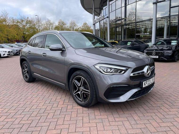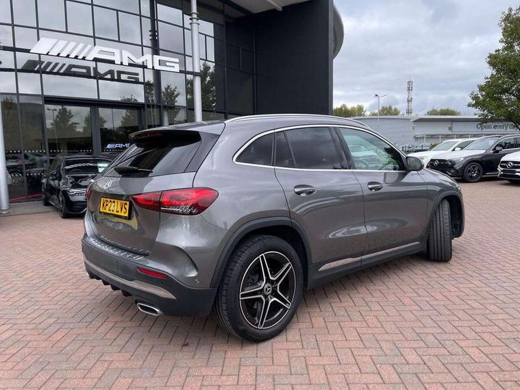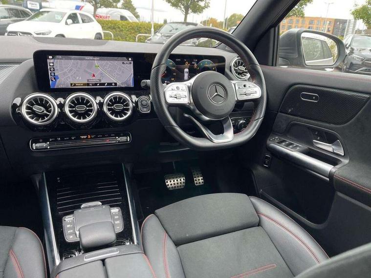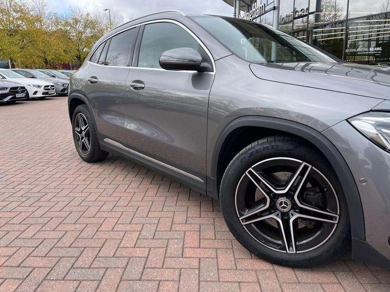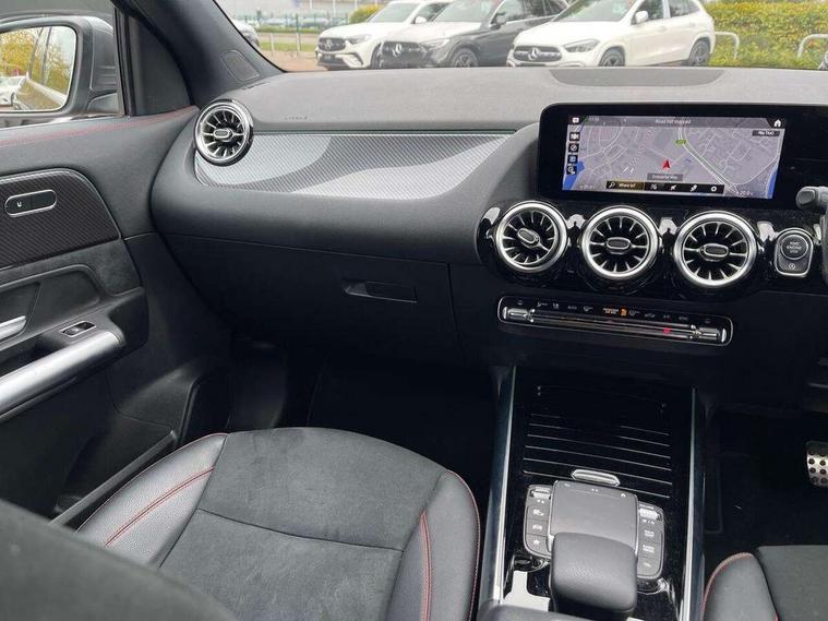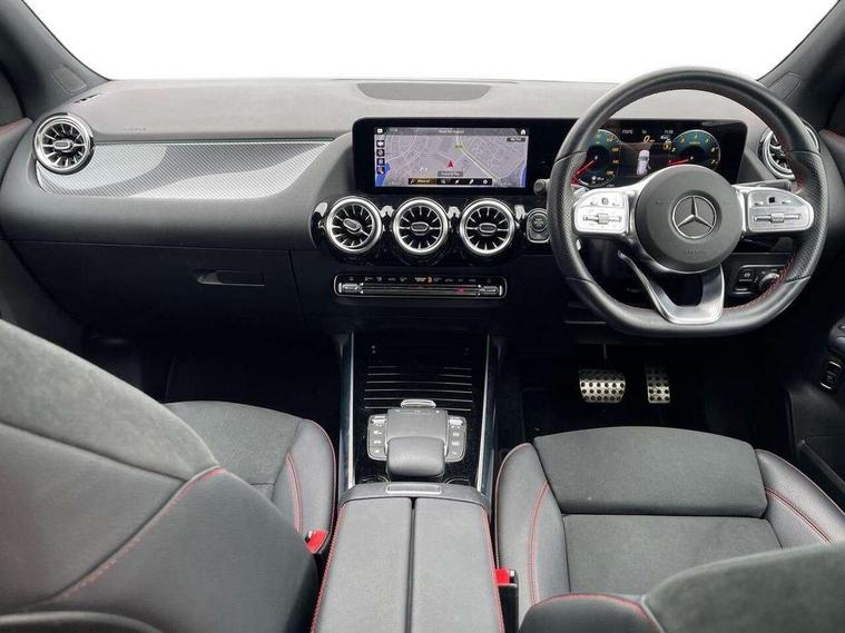 10.25 inch touchscreen central media display, 10.25" Digital instrument cluster display screen, Active lane keeping assist, Attention assist, Cruise control + speed limiter, Direct steering, DYNAMIC SELECT with a choice of driving modes (ECO, Comfort, Sport and Individual), ECO start/stop function, Fluid level warning indicator for fuel, oil, coolant and washer fluid, Hard-disk navigation, Hey Mercedes Voice activation, Lamp failure indicator, Mercedes me connect including emergency call system, accident recovery, breakdown management and maintenance, Mercedes me remote services, Multi function trip computer, Outside temperature gauge, Owners manual and service booklet in English, Pre-installation of private car share, Radio aerial integrated into front and rear windshields, Service indicator (ASSYST), Smartphone integration with Apple CarPlay and Android auto, Speed limit assist, Status display for rear seat belts in instrument cluster, Lowered comfort suspension, Rear axle multi-link, 2 USB ports (type C) in rear stowage compartment and one in front of center console, Bluetooth connectivity including audio streaming, DAB Digital radio, MBUX multimedia system, Media interface, Mercedes-Benz sound system - 100W, Adaptive brake lights, Aerial for GPS, Aluminium roof rails, AMG front and rear apron, AMG specific/dual flow exhaust pipes in chrome (non-functional), Automatic headlamp activation, Beltline strips and weather strip in chrome, Black grained claddings with chrome parts, Body colour bumpers, Body colour door handles, Body colour door mirrors, Car wash function, Dark privacy glass from B-pillar backwards, Electric front windows, Electric rear windows, Electrically adjustable and heated door mirrors with integrated LED indicators, Front bumper with underride guard in high gloss chrome, Heat insulating dark tinted glass, Heated glass rear windscreen + timer control, Heated windscreen wash system, Interior mirror with black reading lamps and frameless, LED high performance headlamps with integrated LED daytime running lights, LED tail lights in two piece design, LED third brake light, Matt titanium grey front and rear apron trim, Rain sensor windscreen wipers, Rear fog lights, Rear side wing doors, Rear wiper, Roof spoiler, Single lamella raditor grille with chrome dotted diamond grille and inlay, 12V power socket in centre console, 3 seat bench in 2nd row, 3 spoke multifunction sports steering wheel in nappa leather with flattened bottom and perforated grip area, 40:20:40 split folding rear seats with backrest, Adjustable head restraints, Air conditioning - Two zone thermotronic luxury automatic climate control with display, Ambient lighting in front headrests, AMG floor mats in black with AMG lettering in front, Artico man-made leather/Microcut microfibre upholstery with red contrast stitching, Auto Mercedes-Benz child seat recognition sensor, Black roof lining, Brushed door pulls in silver chrome, Courtesy light in boot, Floor mats in velour, Front centre armrest with stowage, Galvanished gear shift paddles on steering wheel, Heated front seats, illuminated door sills with changeable cover, Illuminated glovebox, Interior lighting - 64 colour Ambient lighting, Leather trimmed gearknob, Luggage net on driver/front passenger seat backrest, Manually height and reach adjustable steering column, Multi-gesture touchpad control on center console, Single front passenger seat, Sports pedals in brushed stainless steel with black rubber studs, Sports seats, Stowage compartment in centre console, Stowage compartment with retractable cover, Sunvisors with illuminated vanity mirrors, Twin front cup holders, Two outer rear seat isofix and top tether child seat fixing points, AMG body styling pack - GLA, Comfort seat pack - GLA Class, Interior lighting with light and sight pack - GLA, Load compartment pack - GLA, Mirror pack - GLA Class, Parking pack - GLA, 3 rear 3 point seatbelts, ABS with Brake Assist, Active bonnet pedestrain safety measure which detects an impact and raises bonnet by 65mm, Active brake assist includes forward collision warning system with autonomous braking, Adaptive brake assist with hold function and hill start assist, Bonnet with power domes, Brake pad wear warning indicator, Childproof locks manually operated for rear doors and electrically operated for rear power windows, Crash responsive emergency lighting, Driver and passenger head and side airbags, Drivers knee airbag, Dual stage driver/passenger airbags, Electronic parking brake, ESP curve dynamic assist, ESP with ASR, Front and rear seatbelt reminder, Front brake callipers with Mercedes Benz logo lettering on front, Front passenger seat occupancy sensor, Internally ventilated brakes with perforated brake discs at the front, Sports braking system, Tyre pressure monitoring system, Warning triangle and first aid kit, Window airbags, Alarm system with immobiliser and interior protection -Thatcham category 1, Keyless Go starting function, Remote central locking and crash sensor with emergency opening function, Urban guard vehicle protection, Vehicle key with decorative surround in chrome, Carbon structure trim, Chrome air vent surrounds, 19" AMG 5 twin spoke light alloy wheels painted in high gloss black with high sheen finish, Summer tyres, Tirefit tyre sealant kit,
