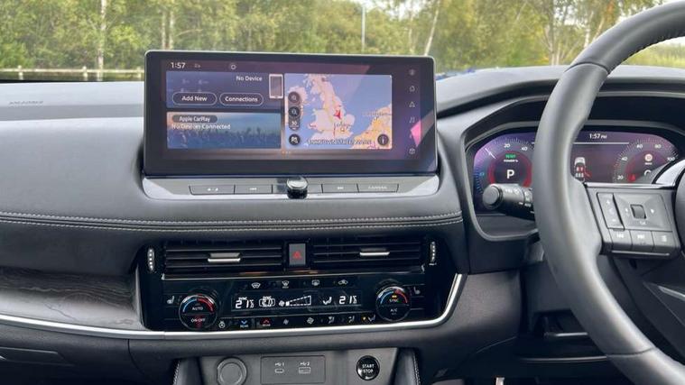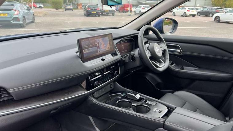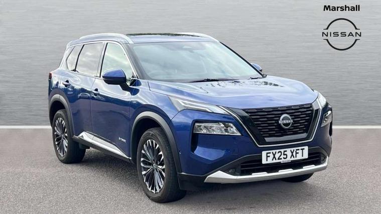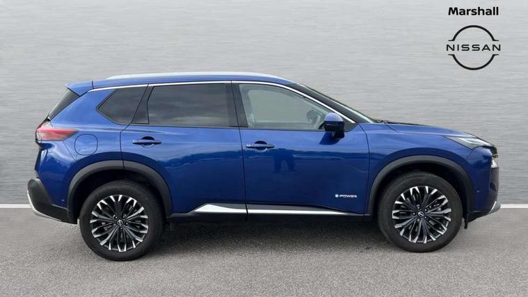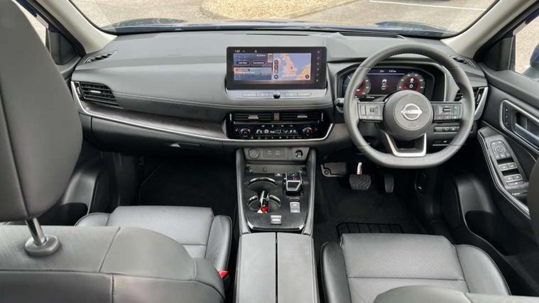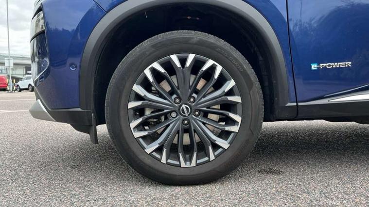 Advanced 10.8" head up display, Android auto wireless, Blind spot warning, Drive assist custom mode, Drive modes (sport, normal, eco), Driver drowsiness and attention warning, e-Pedal step, Electric speed sensitive power steering, Emergency and breakdown call, Event data recorder, Front and rear parking sensors, Full Digital 12.3" TFT Digital Combimeter, Google maps services - search, weather, 3D maps and Google street view, Hands free power tailgate, Idle stop/start system, Intelligent around view monitor, Intelligent Cruise control (ICC), Intelligent driver alert system, Intelligent forward collision warning, Intelligent lane departure warning, Intelligent lane intervention, Intelligent lane keep assist, Lane departure prevention, Maximum speed limiter, Moving object detection, Nissan connect 12.3 inch touchscreen infotainment system, Nissan connect nav with TomTom traffic, Propilot assist with Navi-Link, ProPilot park, Push button starter, Rear cross traffic alert, Rear view camera, Remote control services - door locks, lights, horn and car locator, Reversing detection, Telematics - notifications and connectivity services, Traffic jam pilot, Traffic sign recognition with legal speed adjustment, Trip computer, Virtual personal assistant and firmware over the air capability, Wireless apple carplay, Wireless charging pad, 6 speakers, AM/FM audio system with DAB, Bluetooth audio streaming, Front USB connections (Type-A and Type-C), Rear USB charging only ports 2 Type-C, Auto rear wiper when reversing, Body colour mirror caps, Body coloured door handles, Bodyside mouldings, Chrome side window finisher, e-POWER badging, Electric auto folding door mirrors, Electric sunroof/sunshade, Electrically adjustable and heated door mirrors, Follow me home headlights, High beam assist, Intelligent auto headlights, LED 3rd brake light, LED daytime running lights, LED front fog lights, LED headlights with adaptive driving beam, LED rear lights, One touch front and rear electric windows with remote opening and closing, Partially body coloured bumpers, Rain sensing wipers, Rear privacy glass, Rear reversing light (bulb lighting), Rear roof spoiler, Rear side wing doors, Rear styling plate, Roof rails, Shark fin antenna, Smart rear view mirror with auto dimming, Splash free wipers, Super UV and infrared cut glass, Thermaclear heated windscreen, Three blink turn signal, 12v power socket in dashboard and luggage, 3 bench rear seats in 2nd row, 3 rear headrests, 40/20/40 folding rear seats with recline, Butteryfly console, Chrome interior door handles, Driver and front passenger sunvisors with illuminated vanity mirrors, Driver seat back pocket, Electric adjustable 2 way lumbar support for driver, Electric adjustable 2 way lumbar support for passenger seat, Electric adjustable driver and passenger seat with memory function, Fore/Aft adjustable rear seats, Front and rear heated seats, Front centre console and armrest, Front cupholders, Front door with bottle holders, Heated steering wheel, Height adjustable driver's seat, Height adjustable front headrests, Height adjustable passenger seat, Leather shift knob, Leather steering wheel, Luggage board system, Luggage space lighting, Multifunction steering wheel, Passenger seat back pocket, Rear armrest with 2 cupholders, Rear door bottle holders, Single front passenger seat, Sliding second row seats, Steering column mounted gear shift paddles, Synthetic leather monoform upholstery, Tilt/telescopic adjustable steering wheel, Tri zone automatic climate control with pollen filter, Two rear isofix child seat anchorage points with top tether, Sky pack - X-Trail, 3x3 point rear seatbelt pretensioners + load limiters, ABS with EBD and brake assist, Active brake limited slip, Auto hold function, Child locks on rear doors, Curtain and front side, far side airbags, Driver and passenger airbags, Driver, passenger and 2nd row rear seat belt reminder, Electronic parking brake, Front seatbelt pretensioners + load limiters, Height adjustable front seatbelts, Hill start assist, Intelligent blind spot intervention, Intelligent front emergency braking with pedestrian, cyclist recognition and junction assist, Intelligent rear automatic braking, Tyre pressure monitoring system, Vehicle dynamic control, Approach unlock and walk away lock, Engine immobiliser, Intelligent Key, Remote central door locking with deadlocking, Thatcham Cat.1 alarm, 19" Diamond cut alloy wheels, Tyre puncture repair kit,