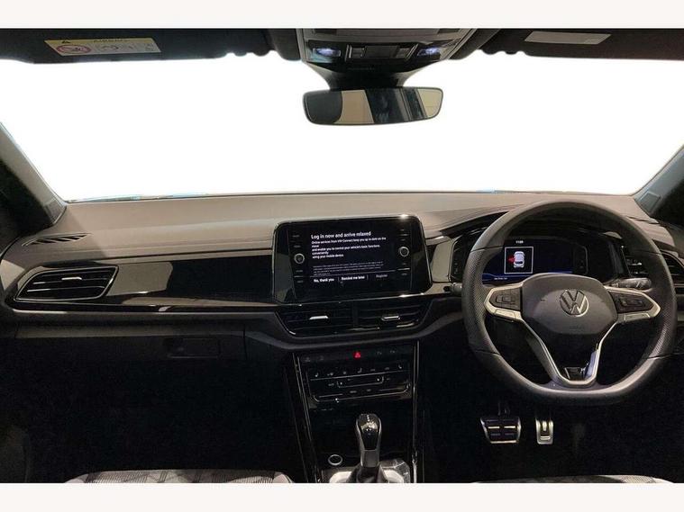 10.25" Digital cockpit pro, Advanced driver attention and drowsiness monitor, Emergency call service, Lane keeping system Lane Assist, Mobile phone interface, Modified key software - reduce switch off time for key status change to Long no motion, Online services, Park assist including front and rear parking sensors, Power assisted speed sensitive steering, Service interval indicator, Tailgate/trunk lid release from outside, Think blue trainer driver tips and journey analysis, Warning sound and light for front seatbelts unfastened, Wireless app connect, Battery regeneration during braking, Rear shock absorption chassis with increased ride height, Start/stop function with battery regeneration, DAB Digital radio, Diversity antenna for FM reception, Front and rear 6 speakers, Music playback - MP3, WMA and AAC files, Premium USB cable in choice of either Apple or Android smartphone compatibility, SD card slot, Simultaneous pairing of 2 compatible mobile devices, Title and cover art display, We Connect and We Connect Plus functionality, Auto dimming interior rear view mirror, Automatic hazard lights activation under emergency braking, Automatic headlight control with LED separate daytime running lights with coming/leaving home function, Dynamic cornering light, Electrically adjustable and heated door mirrors, Extended roof spoiler, Exterior mirrors aspherical on driver side, convex on front passenger side, External USB type C socket and charging sockets, Front windscreen wiper with intermittent wipe and 4 position delay, Heated rear window, Illuminated front grille, IQ LED matrix headlights, LED 3rd brake light, LED rear number plate lights, LED rear tail lights with dynamic turn signal, Light mode for poor weather, rain, fog or snow, Power windows with comfort operation and circuit breaker, R-Line design body coloured bumpers, Rain sensor, Rear exhaust tailpipe, Rear fog light on one side and reversing lights on both sides, Rear side wing doors, Rear wash/wipe with intermittent wipe setting, Remote electrically foldable door mirrors, puddle lights and reverse activated passenger's door mirror, 12V power socket in centre console, 3 rear head restraints, 3 seat bench in 2nd row, 4 load lashing points in luggage compartment, Air care climatronic air conditoning system with active combination filter and 2-zone temperature control, Artvelours cloth upholstery, Black roof lining, Chrome plated radiator grille inserts, air vent surrounds and light switch surrounds, Door and side trim panel with leatherette insert, Drawer under drivers seat, Driver seat height adjust, Driver's seat lumbar support, Front + rear carpet mats, Front centre armrest, Front comfort sports seats, Front cupholders x 2, Front footwell illumination, Front reading light, Front scuff plates with R Line logo, Front seat back storage pockets, Glove compartment door with light, Instrument lighting, white adjustable panel illumination, Interior ambient lighting and surround lighting, Interior light delay, Isofix child seat preparation, Leather gearshift handle, Leather wrapped multifunction steering wheel with paddle shift, Load-through provision with cup holder when folded down ('Unsplit rear seat bench, split folding backrest, with centre armrest), Luggage compartment lighting, Non-folding front passenger seat backrest, Passenger seat height adjuster, Passenger seat lumbar support, Single front passenger seat, Stainless steel pedals, Storage compartment in left and right luggage area, Storage compartment in rear doors, Storage compartments in driver and front passenger doors, Sunvisors with illuminated vanity mirrors, Variable boot floor, height adjustable and removable, Winter pack without heated windscreen washer jets - T-Roc, 3 point height adj front seatbelts + pretensioners, 3 point seatbelts in outer rear with ECE label, ABS, Child locks on rear doors, City emergency braking and pedestrian monitoring, Driver and front passenger airbag with front passenger airbag deactivation, Driver and front passenger safety-optimised head restraints, Drivers seatbelt reminder, Electronic parking brake, Electronic Stability Control (ESC) inc EDL (Electronic Differential Lock) and ASR (Traction Control), Front and rear passengers curtain airbag system including front side airbags, Front disc brakes, Hill start assist, Predictive pedestrian protection, Rear disc brakes, Two tone horn, Tyre pressure loss indicator, Volkswagen roadside assistance, Tool kit, Trims for alloy wheels, Tyre mobility kit including compressor and sealing foam,