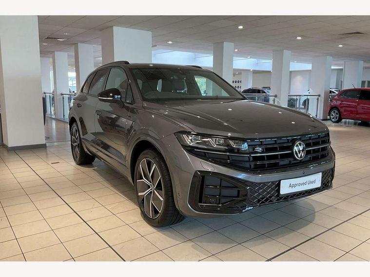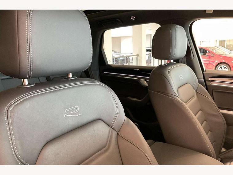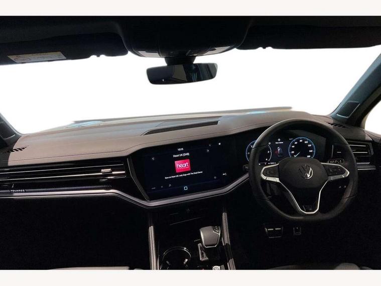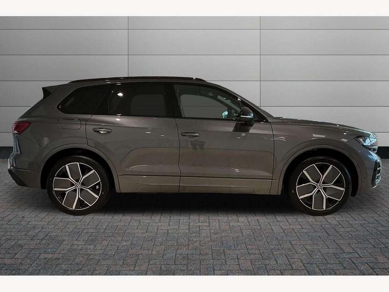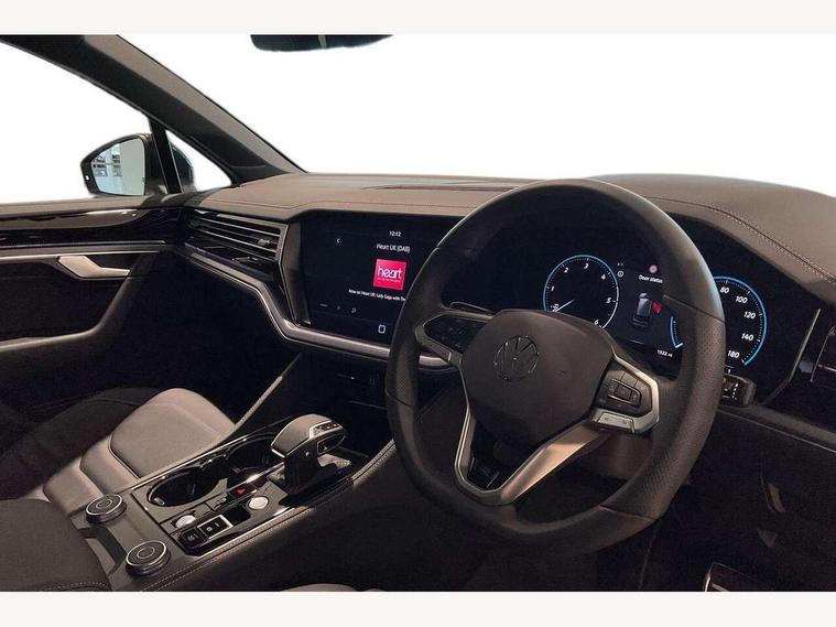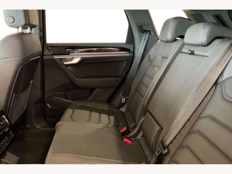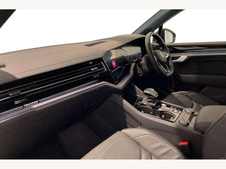 15" Screen Top infotainment system Premium (MIB3), Adaptive cruise control, Advanced driver attention and drowsiness monitor, Driver profile selection, Dynamic road sign display, E-Sim card for online connectivity, eCall emergency system, Innovision cockpit, Intelligent park assist, Mobile phone interface with inductive charging, Multi-colour Active Info display, Park Assist - Sensor controlled steering aid to assist parallel or bay parking, PAS, Warning signal and warning light for front and rear seatbelts not fastened, Wireless app connect, Adaptive chassis control, DAB Digital radio, Diversity antenna for AM/ FM reception, We Connect and We Connect Plus functionality, Automatic coming/leaving home lighting function, Automatic headlights, Black door mirrors, Black style comfort bumpers, Dynamic headlight range control with dynamic cornering light, Electric front tilt/slide panoramic sunroof and fixed rear sunroof, Electrically power adjustable, heated, folding, auto dimming, front passenger exterior door mirror lowering function, External USB type C socket and charging sockets, Gloss black roof rails, HD LED Matrix beam plus digital headlight projection with variable light distribution, Headlight washers, Highway light, LED 3rd brake light, LED daytime running lights, LED rear combination lamp with variable lighting functions and special styling, Poor weather light, Rain sensor, Rear exhaust tailpipe, Rear fog light with back up light on both sides, Rear light bar and illuminated logo, Rear side wing doors, Rear wiper, Stainless steel door sill protection, 12V socket in centre console, 3 rear headrests, 3 seat bench in 2nd row, 4 zone climate control, Airbag label on sun visor and B-pillar, Brushed stainless steel pedals, Double sun visors with illuminated vanity mirrors, Front + rear carpet mats, Front centre armrest, Leather wrapped multifunction sports steering wheel, heated, with touch control and shift paddles, Mechanical rear seat release, Power adjustable lumbar support in front, Power seats in front, right side with memory features and seat cushion depth adjustment, Rear seat backrest and split folding with center armrest, Single front passenger seat, Memory pack plus - Touareg, 3 point seatbelts, outer rear with ECE lable, ABS, Child locks on rear doors, Curtain airbags, Driver and front passenger safety-optimised head restraints, Driver/Front Passenger airbags, Extended pedestrian protection measures, Front assist, Front seat side impact airbags, Generative braking with start and stop system, Height adjustable 3 point front seatbelts with pre tensioners, Passenger airbag deactivate switch, Three 3 point rear seatbelts, Two tone horn, Tyre pressure loss indicator, Warning triangle and first aid kit, Alarm system with interior protection, Easy open and close sensor controlled luggage compartment opening and closing with remote unlocking, Keyless Access Keyless locking and starting system with SAFELOCK, Aluminium decorative inserts, Black decorative trims, Gloss black decorative inserts in centre console, Tool kit,