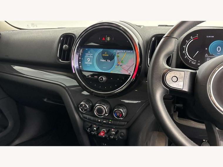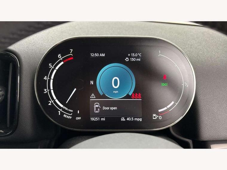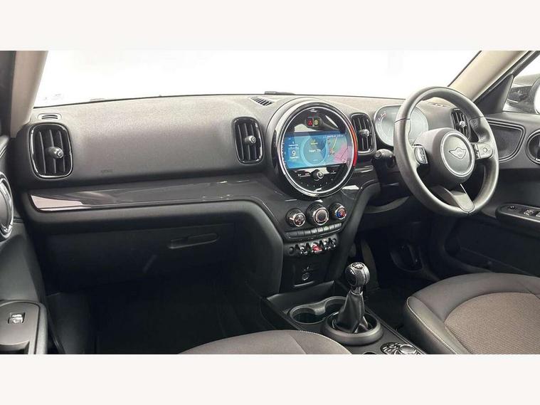 Active Guard incl speed limiting and lane departure functions with auto steering, and front collision warning with brake intervention, Automatic start/stop function with brake energy recuperation, Compatible mobile phone bluetooth with audio streaming, Cruise control with brake assist, Electro-mechanical speed dependant steering assistance, Instrument cluster, On board computer, Rear parking distance control, 51 Litre fuel tank, 6 Speed manual transmission including gear change indicator display, Double Vanos system, Fully variable valve control, High precision injection, Performance Control, 6 speakers, FM tuner and DAB digital radio, Body colour fuel filler cap, Day time driving lights, Door sill strips, Dynamic brake lights, Electric windows, Heated rear window, Heated windscreen washer jets, LED fog lights, LED Headlights, Left exhaust tailpipe with chrome finisher, Model logo, Model logo on Tailgate, Radiator grille, Rain sensor with auto headlights, Rear fog lights, Rear window wiper, Side scuttle panel with integrated indicator, Split rear doors, Sun/heat protection glass, White indicator lenses, 12V socket in centre console, 3 spoke sport leather steering wheel + limiter function and audio controls, 360L luggage compartment capacity, 4 lashing eyes in luggage compartment, 40:20:40 split folding rear seats, Chrome interior highlights, Colour line - Carbon black, Cupholders, English handbook, Floor mats, Front headrests, Glove compartment, Headliner with grab handles and clothes hooks, Height and length steering column adjustment, Interior lighting with 12 basic colours selectable via toggle switch in roof, Isofix rear child seat preparation, Leather gearshift lever and handbrake gaiters, LED reading lights, vanity mirror lights, front foot well light and spotlight on front seats, Manual air conditioning, Mechanical seat adjustment, driver seat height adjust, forward/back and front seats backrest, Multifunction steering wheel, Passenger seat height adjuster, Rear headrests, Storage compartments in doors, Sunvisors with vanity mirrors, Excitement pack - Countryman, Navigation pack - Countryman, 2 tone horn, 3 point seatbelts on all seats, 6 Airbags - front, side, head and seat belt tensioners, Anti-lock braking system (ABS), DSC - Dynamic Stability Control, Electronic handbrake, Front and rear disc brakes, Hill start assist, Tyre pressure monitoring system, Alarm system with tilt sensor, monitoring doors, bonnet interior and tailgate, Auto drive away locking, Deadlocking function, Electronic vehicle immobiliser, Locking wheel bolts, Start/stop toggle with keyless go, Tool kit,