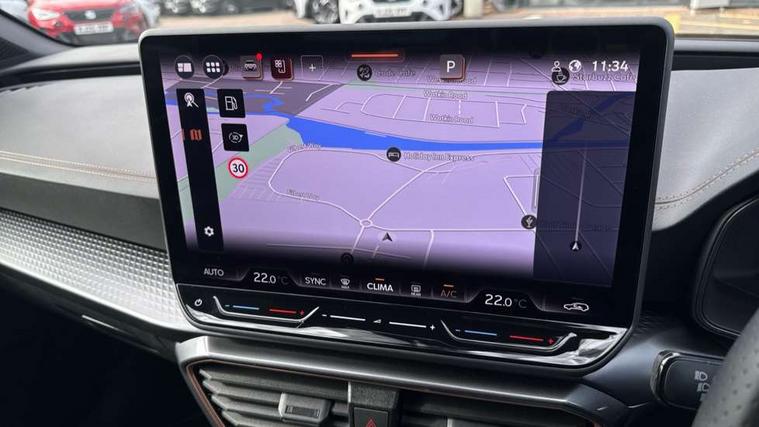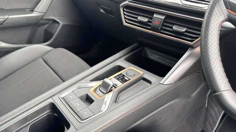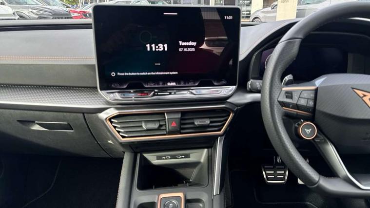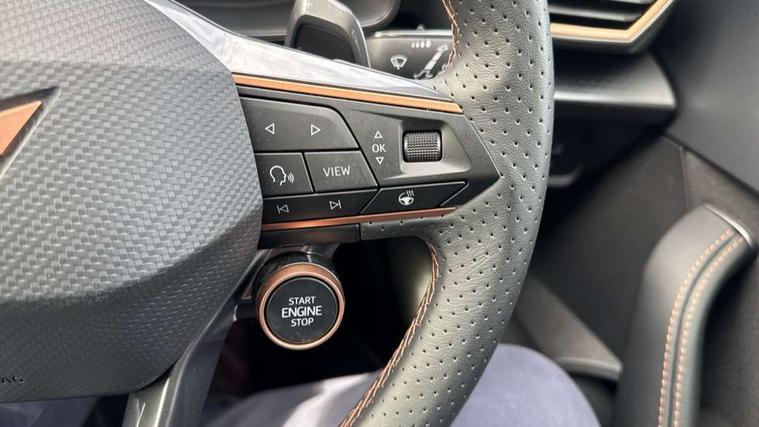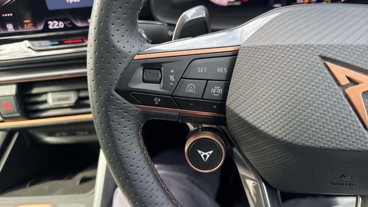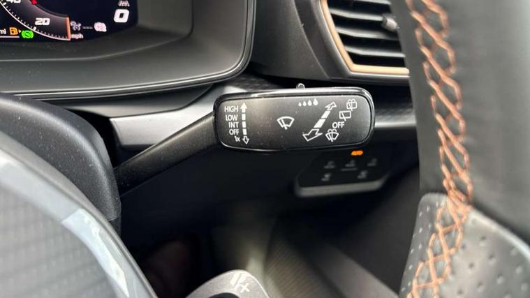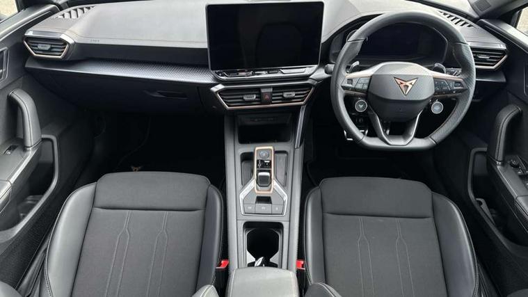 Adaptive cruise control with follow-to-stop and speed limiter, CUPRA drive profile selection with (Comfort/Sport/Individual), throttle response and gearshift mode, Digital cockpit, Dynamic road sign display, E-call, Four x USB Type C ports (2 in front and 2 in rear), Front and rear parking sensors, Front assist with forward collision warning braking reaction to vehicles, pedestrians and cyclists, Full link smartphone integration with Mirror Link, wireless Apple CarPlay and wired Google Android Auto, Lane assist, Lockable tailgate, PAS, RPM, trip computer, outside temp gauge, instrument light brightness, low fuel warning light, lights on reminder, gearshift indicator, Service interval indicator, Start/stop system with regenerative braking, Wireless phone charger, 7 speakers, Auxiliary input socket, Auto dimming rear view mirror, Body colour door handles, Body coloured bumpers, Cupra sports bumpers, Dark tinted rear windows, Electric front/rear windows, Electrically adjustable, heated and folding door mirrors, High beam assist, LED front fog lamps with cornering function, LED headlights with dynamic turn signals, tail lights, rear fog lights with rear coast to coast lighting, LED rear fog lamp, Rain sensing wipers, Rear side wing doors, Rear wash/wipe, Separate daytime running light with automatic headlight control and coming home feature, Third brake light, Welcome light with logo projector in door mirrors, 12v power supply in centre console, 3 seat bench in 2nd row, 5 headrests, 60/40 split rear bench seat with armrest, Ambient lighting with glovebox, footwell and single monocolour, Black headlining, Cloth/PVC upholstery, Cupra sports pedals, CUPRA Supersports, heated steering wheel with satellite buttons, Driver and passenger seat with manual height and lumbar adjustment, Folding boot cover, Front and rear reading lights X 4, Front centre armrest, Height/reach adjust steering wheel, Illuminated interior front door sills, ISOFIX points in outer rear seats with top tether anchorage points, Single front passenger seat, Storage pockets on rear of front seats, Sunvisors with illuminated mirror, Three zone climate control, Media system plus with 12.9" display + navigation pack - Leon Cupra, 3 point seatbelts on all rear seats, ABS, Brake control system - ESC and brake booster, Child proof door locks, Cupra black brake calipers, Driver and front passenger airbags with front passenger airbag de-activation, front side and curtain airbags, Electronic parking brake, Hill hold control, Rear disc brakes, Seat belt reminder for front and rear seats, Tiredness recognition system, Tyre pressure monitoring system, Anti theft alarm system with interior monitoring in cab, backup horn and towing protection, Central locking system Keyless Go, Locking wheel bolts, Chrome and copper interior detailing, 18" Windstorm machined sport black matt and silver alloy wheel with 92Y XL tyres, Tool kit,