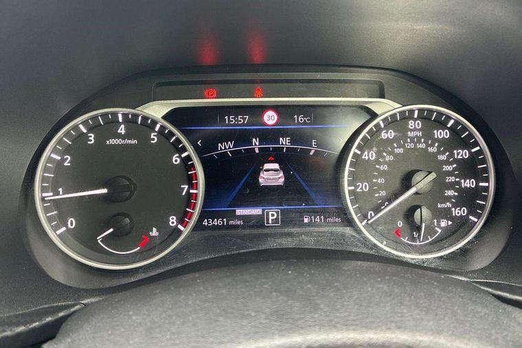 7" full colour TFT screen combimeter, 8" infotainment colour display with touch screen, Apple CarPlay and Google Android auto, Drive modes select (Eco, normal and sport), Emergency and breakdown call, Front parking sensor, Idle start/stop system, Intelligent lane intervention, Lane departure warning system, Nissan connect nav with TomTom traffic, Nissan connect services and Wifi connection, Outside temperature sensor, Power Steering, Rear parking sensor, Traffic sign recognition, Trip computer, Gasoline particulate filter, Bluetooth system, USB, Aux-in and 12V socket, Bose personal plus audio system with 8 speakers(4 speakers and 2 headrest speaker for driver and passenger seats), Bose personal sound stage control, DAB Digital radio, Rear console USB port, Auto dimming interior rear view mirror, Automatic hazard signal with emergency stop signal, Body colour bumpers, Body colour door handles, Electrically adjustable door mirrors with integrated indicators, Follow me home headlights, Front and rear electric window with one touch driver window, Heated and auto folding door mirrors, High beam assist, LED daytime running lights, LED front fog lights, LED headlamps, LED rear fog lamp, LED rear lamps, Rain sensor windscreen wipers, Rear privacy glass, Rear spoiler, Rear wiper, Thermaclear heated windscreen, Three blink turn signal, 3 height adjustable rear headrests, 60/40 split folding rear seat, Automatic climate control, Card holder on driver sunvisor, Cloth/Synthetic leather upholstery, Door ambient lighting, Driver and passenger sliding and reclining seats, Driver seat back pocket, Driver side rear coat hanger, Driver/passenger sunvisors and vanity mirrors, Front and rear cabin lighting, Front armrest, Front door pockets with bottle holders, Front head restraints, Front passenger isofix child seat anchorage point, Front/rear passenger grab handles, Gear console ambient circle lighting, Grey synthetic leather kneepad, Heated front seats, Height adjustable driver's seat, Height adjustable passenger seat, Internal chrome door handles, Leather gearshift knob, Leather steering wheel, Luggage board, Luggage space lighting, Monoform sporty seats, Multifunction steering wheel, Passenger seat back pocket, Rear door bottle holders, Steering wheel mounted gearshift paddles, Telescopic steering wheel adjustment, Two cupholders in front centre console, Two rear isofix child seat anchorage points with top tether, Voice recognition switch on steering wheel, Welcome light and console tray ambient lighting, ProPilot pack - Juke, ABS with EBD and brake assist, Active ride control, Active Trace Control, Driver and passenger airbags, Driver and passenger side airbags, Electric handbrake with auto hold function, Electronic Stability Programme (ESP), Front and rear curtain airbags, Height adjustable seatbelts, Hill start assist, Intelligent emergency braking with pedestrian and cyclist recognition, Seatbelt reminder for driver/front passenger and rear seats, Single tone horn, Three 3 point rear seatbelts, Traction control, Tyre pressure monitoring system, VDC Dynamic Vehicle Control, Ventilated rear brake discs, Alarm, Immobiliser, Intelligent Key with push button starter, Remote central locking,