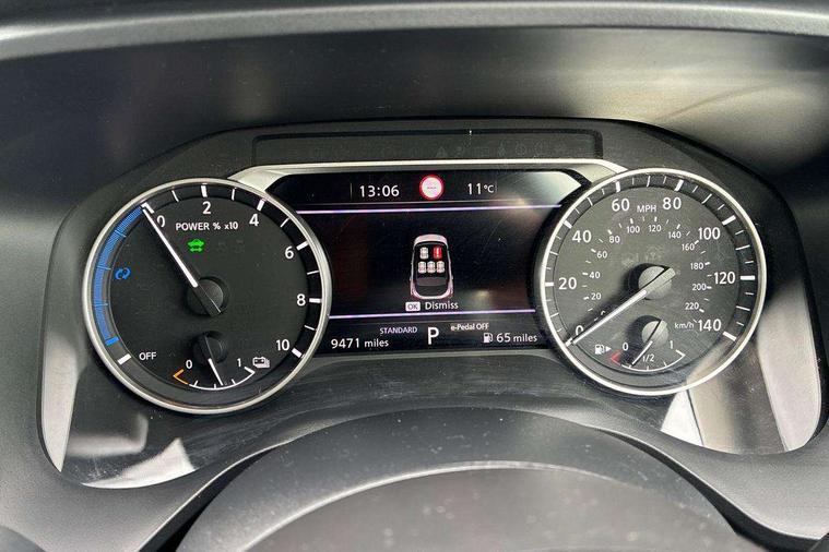 7" High definition full colour TFT screen combimeter, Android auto/Apple CarPlay (Wired), Blind spot warning, Drive modes (sport, normal, eco), Electric speed sensitive power steering, Emergency and breakdown call, Idle stop/start system, Intelligent Cruise control (ICC), Intelligent driver alert system, Intelligent forward collision warning, Intelligent lane intervention, Lane departure prevention, Lane departure warning system, Maximum speed limiter, Nissan connect 8" touchscreen infotainment system, Push button starter, Rear cross traffic alert, Rear parking sensors, Rear view camera, Traffic sign recognition with legal speed adjustment, Trip computer, 6 speakers, AM/FM audio system with DAB, Bluetooth audio streaming, Front USB connections (Type-A and Type-C), Auto dimming rear view mirror, Auto rear wiper when reversing, Automatic hazard signal with emergency stop signal, Body colour mirror caps, Body coloured door handles, Bodyside mouldings, Chrome side window finisher, Door handle with button, e-POWER badging, Electric auto folding door mirrors, Electrically adjustable and heated door mirrors with LED turn indicator, Follow me home headlights, High beam assist, Intelligent auto headlights, LED daytime running lights, LED Headlights, LED rear lights, One touch front and rear electric windows with remote opening and closing, Partially body coloured bumpers, Rear reversing light (bulb lighting), Rear roof spoiler, Rear side wing doors, Shark fin antenna, Splash free rain sensing wipers, Three blink turn signal, 12v power socket in dashboard and luggage, 2x Rear coat hooks, 3 bench rear seats in 2nd row, 3 rear headrests, 4 folding assist grip, 6-way manually adjustable driver's seat, 60/40 split folding rear seat bench, Centre console storage tray, Chrome interior door handles, Cloth monoform upholstery, Driver and front passenger sunvisors with illuminated vanity mirrors, Driver seat back pocket, Dual zone automatic climate control with pollen filter, e-POWER shifter, Front and rear door storage, Front centre console and armrest, Front cupholders x 2, Front door with bottle holders, Glovebox with light, Hard trunk cover, Height adjustable driver's seat, Height adjustable front headrests, Height adjustable passenger seat, Leather steering wheel, Luggage space lighting, Manually adjustable passenger (slide recline + lifter), Multifunction steering wheel, Passenger seat back pocket, Rear armrest with 2 cupholders, Rear door bottle holders, Single front passenger seat, Steering wheel switches, Sunglasses holder, Tilt/telescopic adjustable steering wheel, Two rear isofix child seat anchorage points with top tether, 3x3 point rear seatbelt pretensioners + load limiters, ABS with EBD and brake assist, Active brake limited slip, Auto hold function, Child locks on rear doors, Curtain and front side, far side airbags, Driver and passenger airbags, Driver, passenger and 2nd row rear seat belt reminder, Electronic parking brake, Front seatbelt pretensioners + load limiters, Height adjustable front seatbelts, Hill start assist, Intelligent blind spot intervention, Intelligent front emergency braking with pedestrian, cyclist recognition and junction assist, Intelligent rear automatic braking, Tyre pressure monitoring system, Vehicle dynamic control, Capless fuel filler, Engine immobiliser, Intelligent Key, Remote central door locking with deadlocking, Thatcham Cat.1 alarm, Interior instrumental panel A finisher, 18" Diamond cut alloy wheels, Tyre puncture repair kit,