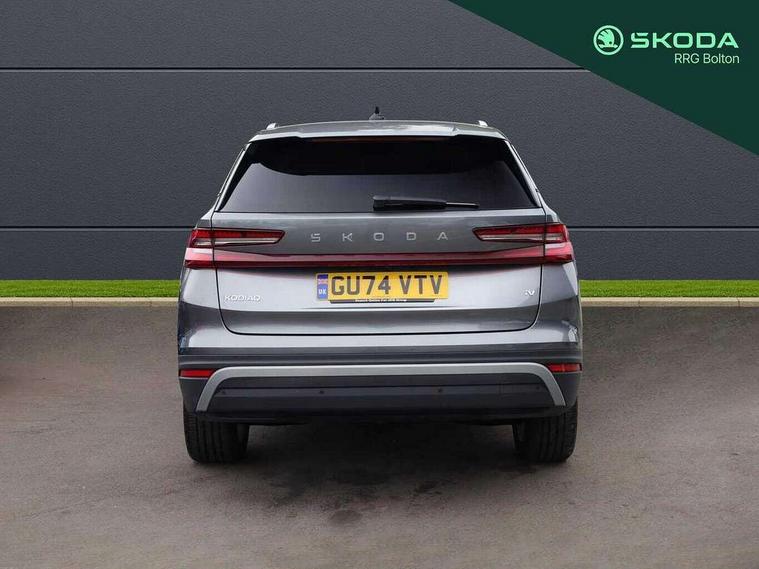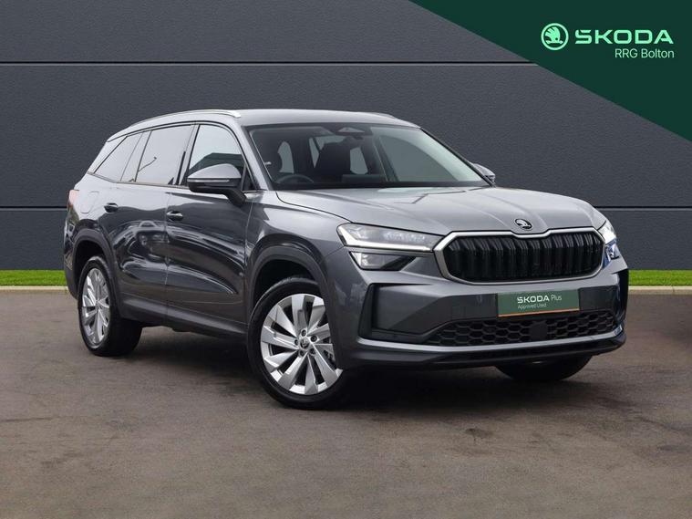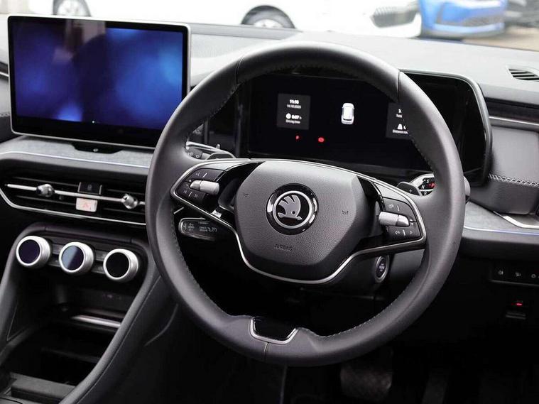 13" satellite navigation touchscreen display, Blind spot detection with door exit warning, Bluetooth system, ChatGPT functionality, Drive mode selector, Driver alert with fatigue sensor, Driver drowsiness alert system, Dry display cleaner, e call+, Front cross traffic assist, Lane assist, PAS, Rear traffic assist, Tailgate unlocking from outside, Traffic sign recognition, USB C Port x 2 in front centre console, Virtual Cockpit - 10.25" digital display, Voice control system, Wireless charging for two smartphones (15W) with cooling function, Wireless SmartLink for Apple CarPlay and Android Auto, 32A charging cable, Stop/start function, 2x USB-C in the rear, DAB Digital radio, Aero front windscreen wipers with intermittent function, Auto dimming rear view mirror, AWL (all weather lighting) and all weather light with cornering function, Black wheel arch surrounds, Body colour bumpers, Body colour door mirrors and handles, Cornering light and poor weather light, Electric folding /adjustable/separted heated/folding door mirrors, auto dimming with boarding sports and memory function, Electric front and rear windows, Exterior black decorative trims, Heat insulating glass in windshield, Heated rear window, Ice scraper in fuel tank cap, Invisible tailpipe, LED daytime running lights, LED rear fog light, LED third brake light in rear spoiler, Light assistant with automatic headlight control and coming home feature, Logo projection in door mirrors, Privacy glass, Rear side wing doors, Rear spoiler, Rear window wiper, Red decorative strip between rear LED lights, Safety reflectors on front and rear doors, Window control switches with black trim, Windscreen wipers with rain sensor, Without engine designation, 1.5l bottle holder points in all door, 12V socket in boot, 1x centre rear reading light, 3 configurable smart dials with 32mm coloured display, 3 seat bench in 2nd row, 4 foldable roof handles with rear coat hooks, Ambient interior lighting - Dashboard, front-door stowage compartments, front and rear door panels and footwell lighting, Automatic gear selector on steering wheel, Chrome interior door handles, Driver/front passenger reading lights, Fabric headlining, Fixed bench 40:60:40 split folding backrests, Front and rear floor mats, Front centre armrest with jumbo box storage compartment, cup holder and 12V socket, Front courtesy lights, Height adjustable front headrests, Isofix child seat fittings in outer rear seats and front passenger with top tether, iV badging on boot, Manually adjustable steering column, Pollen filter, Rear centre armrest with cupholders, Rear seat boot backrest release, Retractable luggage compartment cover, Single front passenger seat, Sliding trunk cover, Small Bags on the inner sides of the front backrests, Storage pocket including mobile phone pockets on the backs of the front seats, Sunvisors with illuminated vanity mirrors, Three rear height adjustable headrests, Ticket holder on A Pillar, Tri zone climate control, Umbrella in door panel x1 made from sustainable materials, Upper and lower glovebox with card holder and coin compartment, USB C port by rear view mirror for charging only (15W), Exterior styling pack - Kodiaq, Auto door release and activation of warning lights in the event of an accident, Driver and front passenger airbag with knee airbag and front passenger airbag deactivation, Electric child locks, Electronic parking brake, ESC (incl. ABS+EMD+MSR+ASR+EDL+HBA+DSR+RBS+ESBS+MCB+TSA+XDS), Front assist with braking reaction to vehicles, pedestrians and cyclists, Front disc brakes, Fuel cut off safety device, Height adjustable front 3 point seatbelts + pretensioners, Hill hold control, Junction assist with automatic emergency braking, Rear disc brakes, Safety vest holder in door, Seat belt reminder for all seats, Three point rear seat belts, Two tone horn, Tyre pressure monitor, Anti-theft wheel bolts, Immobiliser, Remote central locking with 2 keys, Breakdown kit,