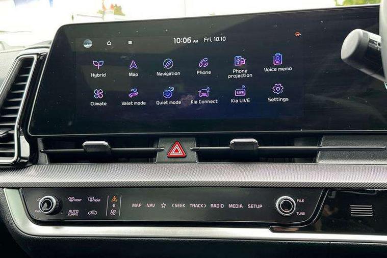 12.3" Display with navigation, 12.3" supervision colour cluster display, 360 degree around view monitor, Apple car play/Android Auto with voice control, Blind spot collision avoidance assist, Blind spot view monitor, Drive mode selector, E-call, Forward collision avoidance assist (FCA) - city/pedestrian/cyclist/junction covering, Front and rear parking sensors, Highway Driving Assist (HDA), Intelligent speed limit assist, Kia Connect (UVO), Lane Following Assist (LFA), Lane keep assist, Low washer fluid warning, Parking collision avoidance assist (PCA), Remote smart parking assist, Reversing camera system integrated into centre fascia screen, Smart cruise control with stop and go functionality, Smart power tailgate, Speed sensitive power steering, Trip computer, Windscreen washer level indicator, Wireless Smartphone charger, Intelligent Stop and Go, Terrain mode select (Mud, Snow, Sand), Bluetooth audio streaming, DAB Radio with MP3, Harman Kardon premium sound system, Rear USB port, Steering wheel mounted audio controls, USB C type charging ports on centre console, USB C type charging ports on side of front seats, USB port for connection of a media device, All round electric windows with drivers and front passenger auto up/down function, Automatic headlight control system, Automatic window defogger, Backlite glass heated with timer, Body colour and black bumper with silver accents, Body colour exterior door handles, Body colour radiator upper garnish and door garnish, Dual LED adaptive headlamps, Electric panoramic glass sunroof (Electric one touch with safety function), Electrically adjustable/heated/folding door mirrors with LED indicators, Front and rear chrome skid plates, Gloss black door mirrors, Gloss black radiator grille, Gloss black side sill and wheel arch body mouldings, Glossy black roof rack, High beam assist, Interior electrochromic mirror, LED daytime running lights, LED front fog lamps, LED High mounted stop light, LED rear combination lamp, Rain sensing wipers with aero blades, Rear fog lamp, Rear privacy glass, Rear side wing doors, Rear spoiler, Rear wiper, Satin finished beltline, Tinted rear glass, Trailer stability assist, 10 way driver/8 way passenger electrically power adjustable seats, 12V power socket in front centre fascia and luggage compartment, 3 seat bench in 2nd row, 3 x passenger assist grips, 40/20/40 split folding rear seat, All-round height adjustable headrests, Ambient lighting, Black headlining, Centre console storage box, Cupholders in rear armrest, D-Shaped sports leather steering wheel and perforated inserts with GT-Line logo, Door courtesy lamps, Drink holder at centre armrest, Driver and front passenger side sunvisors with illuminated vanity mirrors, Driver seat memory function, Drivers seat power lumbar support, Front and rear door storage, Front seat and rear pockets, Front/rear centre armrests, Gear shift indicator, Glovebox illumination, Heated front and outer rear seats, Heated steering wheel, Interior door lock/unlock function, ISOFIX Child seat top tethers and anchor fixings outer rear seats, LED interior personal lamp, LED lighting in overhead console, Luggage area LED light, Luggage area load cover, Luggage net with hooks, Metal paint interior door handles, Paddle shift controls, Rear cabin light, Rear coat hooks, Single front passenger seat, Sports pedals, Suede leather upholstery, Three zone climate control, Tilt/telescopic adjustable steering wheel, Ventilated front seats, Ventilation ducts to rear compartment, Active front headrests, All round 3-point seatbelts, Anti-lock braking system (ABS), Dual front side airbags, Dual horn, Electronic parking brake, Electronic stability control with downhill brake control, Front passenger airbag cut-off switch, Front seatbelt pretensioners + load limiters, Height adjustable front seatbelts, Hill start assist control (HAC), Impact sensing auto door unlocking, Multi collision brake assist, Rear door child safety locks, Rear seat alert system, Traction control, Twin curtain airbags, Twin front airbags, Tyre pressure monitoring system, Advanced anti-theft system including immobiliser and alarm, Door deadlocks, Engine Start/Stop Button with Smart Entry System, Locking wheel nuts, Speed sensitive auto door locking, Visible vehicle identification number, Aluminium pattern finish centre fascia and door garnish, 18" Alloy wheels, Michelin tyres, Tyre mobility kit,