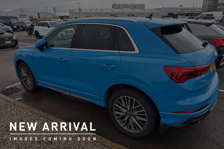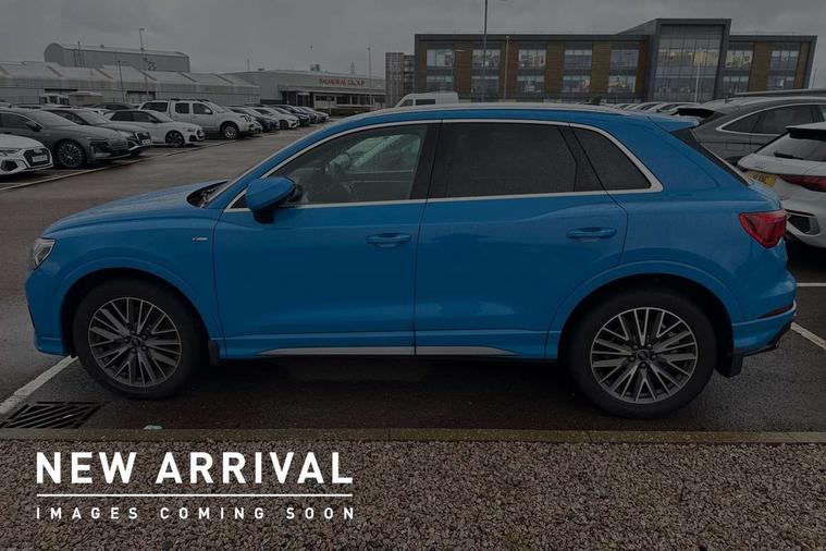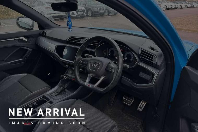 Audi connect safety and service (e-call), Audi drive select, Audi lane departure warning, Audi side assist, Audi Virtual Cockpit - 10.25" display, Bluetooth interface, Camera based traffic sign recognition, MMI Navigation Plus with high resolution 10.1 inch touchscreen colour display, Power operated tailgate, Progressive steering, Service interval indicator, Smartphone interface includes wireless Apple carplay/Android Auto, Start stop system with recuperation, Voice control system with natural language interaction, Sports suspension, 1 x USB type C and 1 USB type A charging points, 6 passive loudspeakers, DAB digital radio module, Acoustic windscreen, Aluminium roof rails, Aluminium window trim, Auto dimming frameless rear view mirror, Body coloured bumpers, Electrically folding, adjustable and heated door mirrors with integrated LED side indicators and kerb view function for passenger side, Front and rear electric windows, Front fog lights, Front side air inlets in matt platinum grey, Front spoiler blade in matt platinum grey, Grille vertical bars in aluminium silver/Matt, High gloss black finish B and C pillars, LED headlights with LED daytime running lights and dynamic rear indicator, LED rear lights, Privacy glass dark tinted rear and rear-side windows (from B-pillar backwards), Rain and light sensors, Rear diffuser strip in matt titanium black, S line badges on front wings, S Line front and rear bumpers, Side skirt insert in matt Platinium grey, Silver chrome grille surround, Titanium black radiator grille, 12V socket in rear centre console, 40:20:40 folding with manual adjustment for 60:40 forwards/backwards position and backrest angle, Adjustable rear seat bench/backrest with centre armrest and cupholder, Black cloth headlining, Dual zone electronic climate control, Front and rear black floor mats with contrast stitching in rock grey, Front and rear headrests, Front and rear roof module including reading lights, Front centre armrest, Glove compartment lighting, Height and reach adjustable steering wheel, Illuminated door sill trims with S logo, ISOFIX child seat mounting for front passenger with airbag deactivation and outer rear seat including top tether attachment point for outer rear seats, Luggage compartment light, Manual front seats with height adjustment, Perforated leather gearknob, Stainless steel luggage compartment sill finisher, Stainless steel pedals, Non smoking pack - Q3, 3x3 point rear seatbelts, 6 airbags - Driver, front passenger, curtain and side windows, Audi pre-sense front with pedestrain and cyclist recognition, Electrically operated child locks on rear doors, Electromechanical parking brake, Electronic stabilisation control including ABS, ASR and EDL, Hill descent control, Hill hold assist, Pre sense basic, Seatbelt monitoring, Tyre pressure warning, Warning triangle and first aid kit, Anti theft alarm, Anti theft wheel bolts, Remote central locking, Dark matt brushed aluminium inlay, Detail dashboard around MMI touch colour display in glass look, black with surround in aluminium look, Leatherette door armrest,