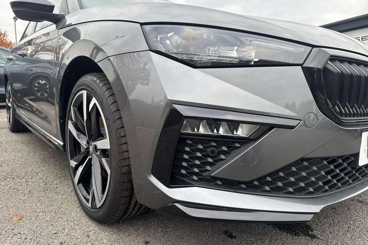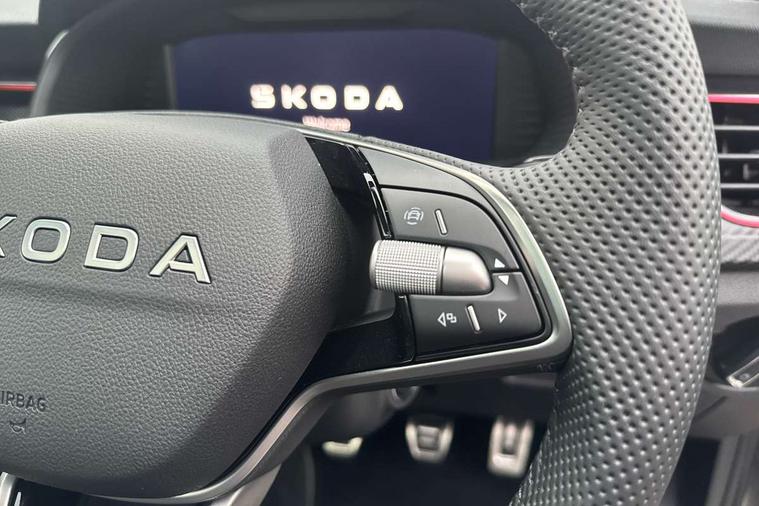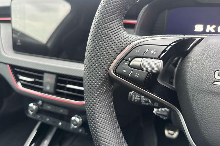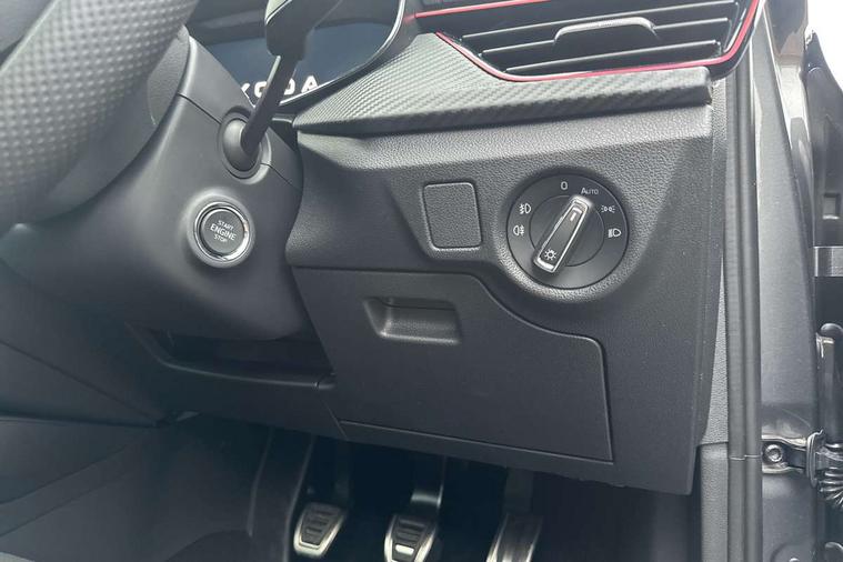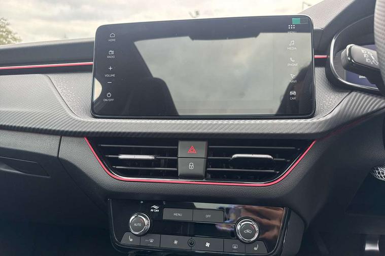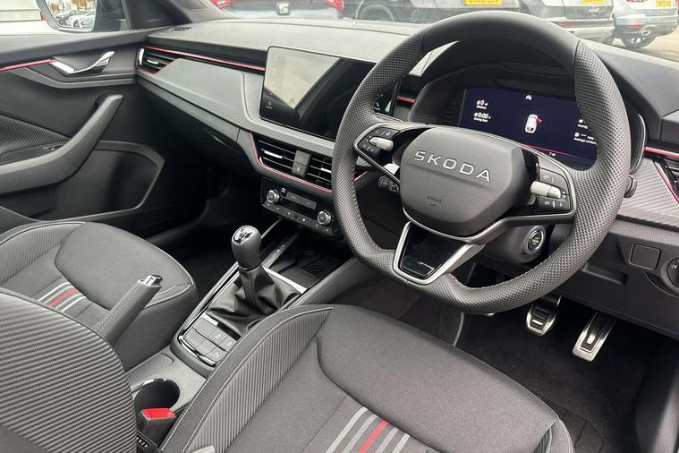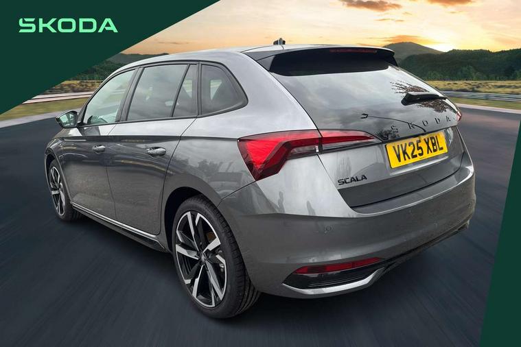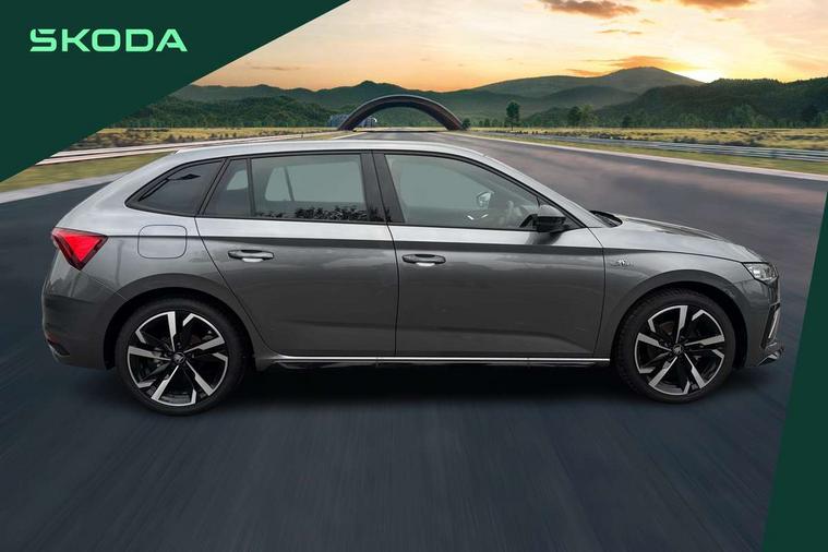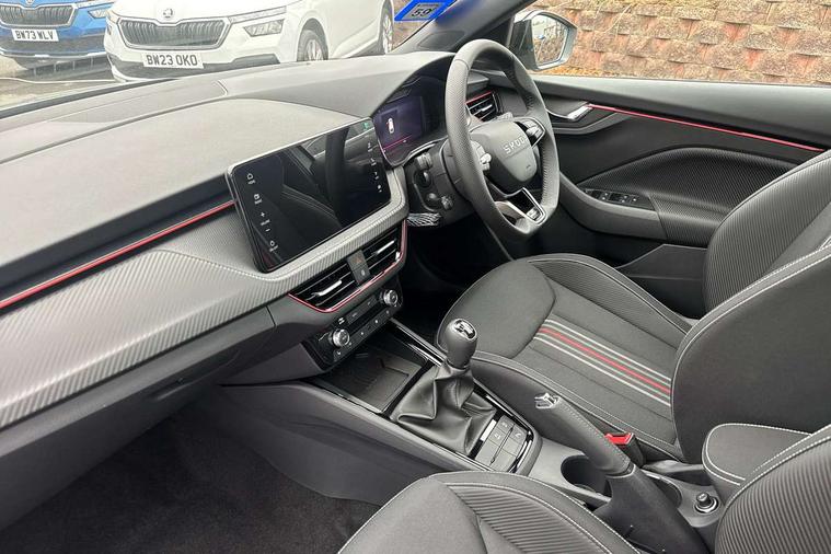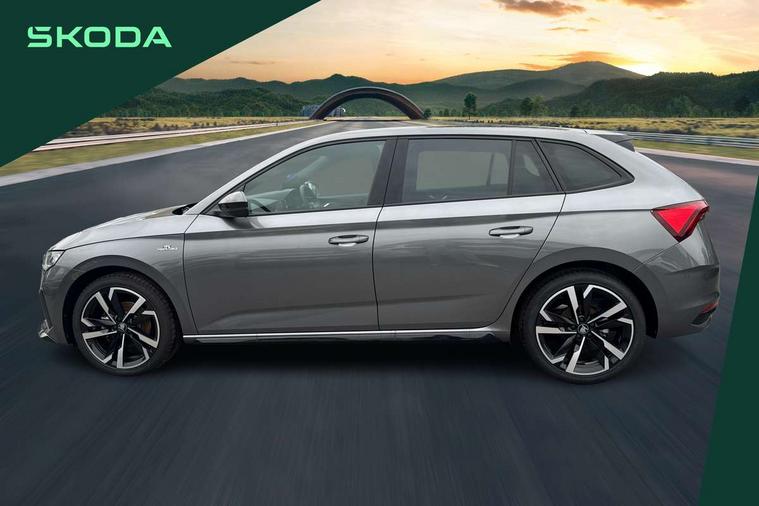 Advanced driver attention and drowsiness monitor, Bluetooth, e-Call (emergency call), Front assist system, PAS, Rear parking sensors, Rear view camera, Speed limiter, Tailgate, Traffic sign recognition, Virtual Cockpit - 10.25" digital display, Voice control system, Wireless smartlink, 4 USB C ports, 8 Speakers, 9.2" Skoda navigation display, DAB radio, Auto dimming rear view mirror, Automatic headlamp activation with Coming home and Leaving home feature, Automatic high/low beam, Automatic intermittent wipers, Black door mirrors, Black lettering on boot lid, Black radiator grille, Black rear diffuser, Black roof spoiler, Body colour bumpers, Body colour door handles, Chrome moulding around grille, Extended tailgate glass, Front and rear electric windows, Heated rear window, LED 3rd brake light, LED brake lights, LED daytime running lights, LED high beam, LED low beam, Light sensors, Monte carlo plaque, Panoramic glass roof, Privacy glass, Rear LED fog light, Rear side wing doors, Rear wiper, Tinted windows, Unique dark chrome design logo on alloy wheels, 12V socket in luggage compartment, 3 seat bench in 2nd row, Aluminium pedals, Ambient lighting in white/red, Black / White armrest stitching, Black ceiling, Black roof headlining, Cargo elements, Chrome inner door handles, Door inserts in art.leather carbon, Driver and passenger sun visors with vanity mirror, Dual zone climate control, Front and rear roof lights, Front centre armrest, Front head restraints, Height adjustable driver seat, Height adjustable passenger seat, Ice scraper, Illuminated glove compartment, Inner circulation control with pollen filter, ISOFIX for front passenger seat, Isofix preparation for back seats, Leather gearknob and handbrake lever, Luggage net under rear parcel shelf, Manual lumbar support for front seats, Monte Carlo cloth upholstery, Net package and top tether hooks in boot space, Pocket on the back of both front seats, incl. mobile phone pockets, Rear centre armrest, Red hotstamping, Single front passenger seat, Skoda lettering on steering wheel, Sport seats, Textile floor mats, Third rear headrest, Ticket holder, Top tether for front passenger seat, Umbrella in driver's door, Light and view plus pack - Scala, 3x3 point rear seatbelts, ABS, Child locks, Curtain airbags and front side airbags, Disc brakes, Driver and front passenger airbags, ESP, Hill hold control, Manual leather parking brake, One tone horn, Passenger airbag switch off function, Seatbelt reminder for driver and front passenger, Tyre pressure monitoring system, Anti theft alarm system with interior monitoring, backup horn and towing protection, Anti-theft wheel bolts, Remote central locking with 2 remote folding keys, SAFE function for remote central locking, Carbon effect decorative inserts, 18" Ursa black diamond cut alloy wheels,
