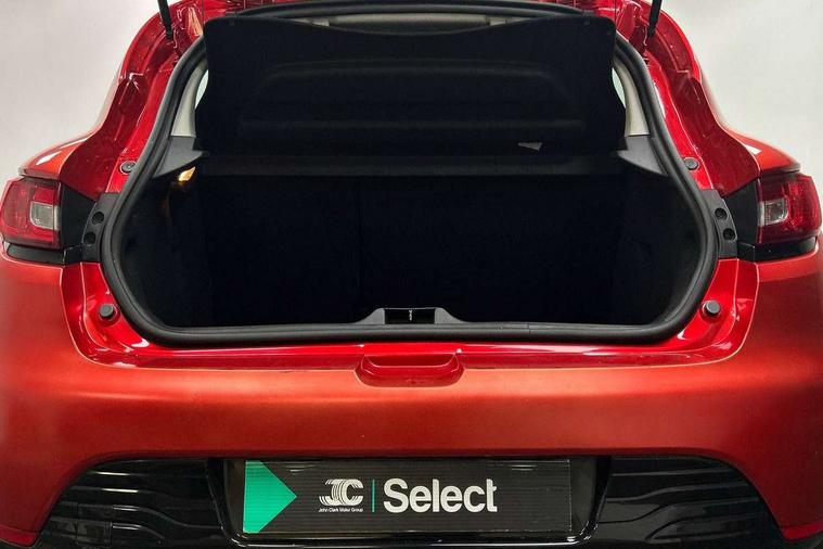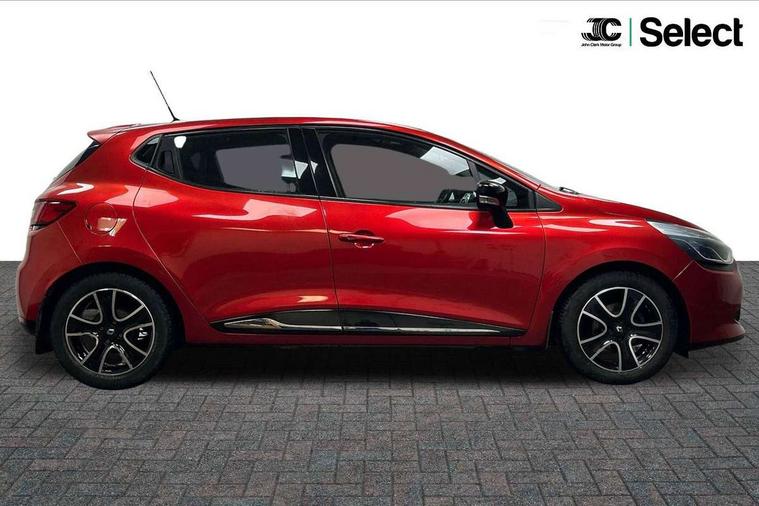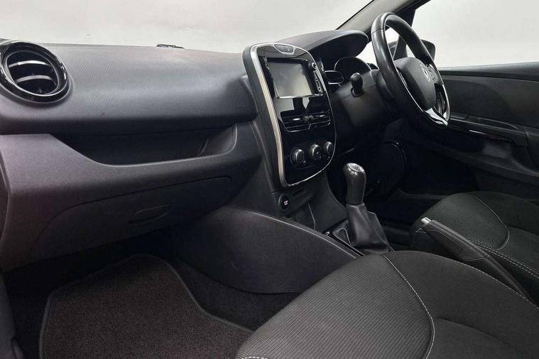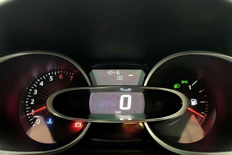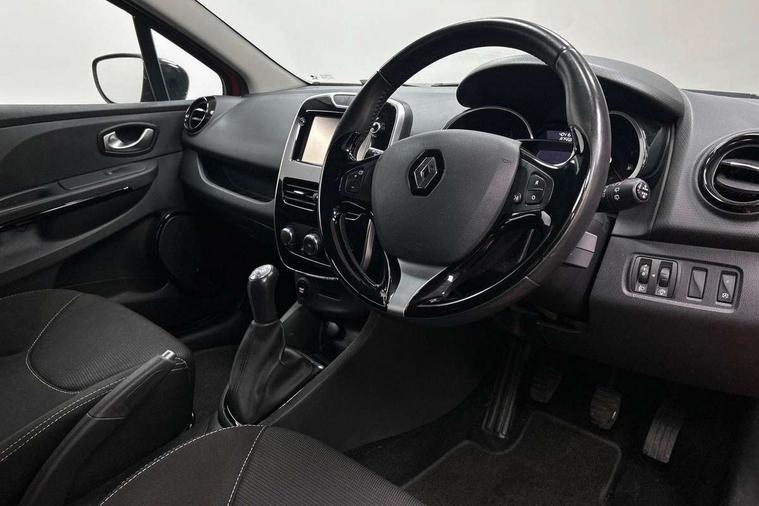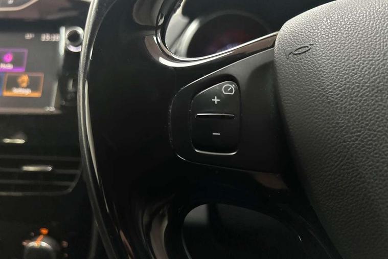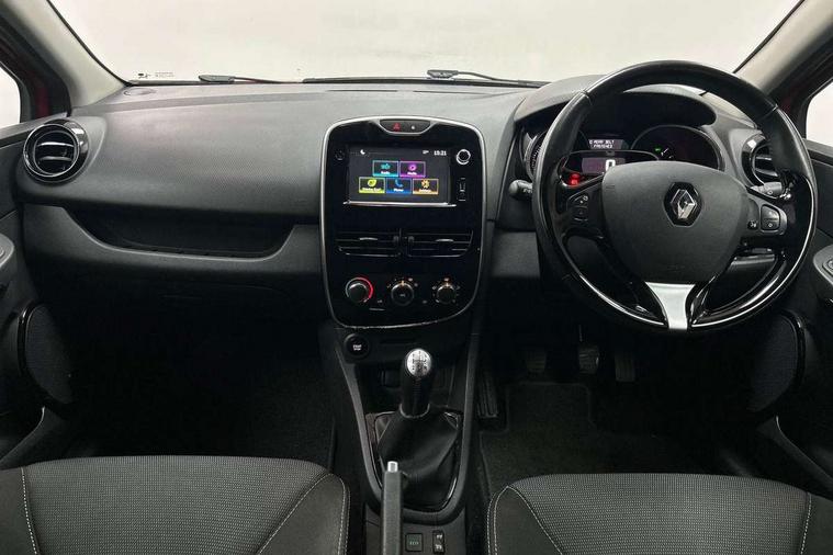 Cruise control + speed limiter, Trip computer, Variable PAS, DAB radio preparation, Fingertip controls for audio system, Automatic headlights + automatic windscreen wipers, Black headlamp surrounds, Black rear diffuser, Body colour door handles, Body coloured bumpers, Body coloured rear spoiler, Chrome strip on lower grille, Chrome surround for front fog lights, Electric adjustable door mirrors, Electric front windows + one touch + anti-pinch, Front fog lamps, Gloss black front bumper insert with chrome surround, Heated door mirrors, LED daytime running lights, Matt black finish B pillar, Rear wiper, Tinted windows, Variable front intermittent wipers, 12V Accessory socket, 2 cupholders, 3 rear height adjustable headrests, 60/40 split rear seats, Air recirculation control, Chrome gear knob insert, Chrome interior door handles, Driver's seat height adjustment, Folding front passenger seat, Glovebox, Height adjustable front headrests, Height/reach adjust steering wheel, Isofix system on outer rear seats, Leather steering wheel, Matt black door handle surrounds, Multi function steering wheel, Passenger dashboard tray, Pollen filter, Style cloth upholstery, 3 point seatbelts on all rear seats, ABS+EBD+Brake assist, Driver and passenger front and side airbag deactivation, Driver/Front Passenger airbags, Driver/front passenger side airbags, ESP + Traction control + Understeer control, Front side airbags(head+thorax), Height adjustable driver's seatbelt, Hill start assist, Seatbelt warning, Tyre pressure monitoring system, Anti-drill door locks, Child lock control of rear doors and windows, Deadlocking system, Hands free Renault card, Locking fuel filler cap, RAID (Renault Anti-Intruder Device) with automatic door locking, Remote central locking, Thatcham Cat 2 engine immobiliser, Dark carbon soft touch dashboard, Gloss black air vent surround, Gloss black centre console, Gloss black dashboard inserts, Instrument dials in chrome surround,