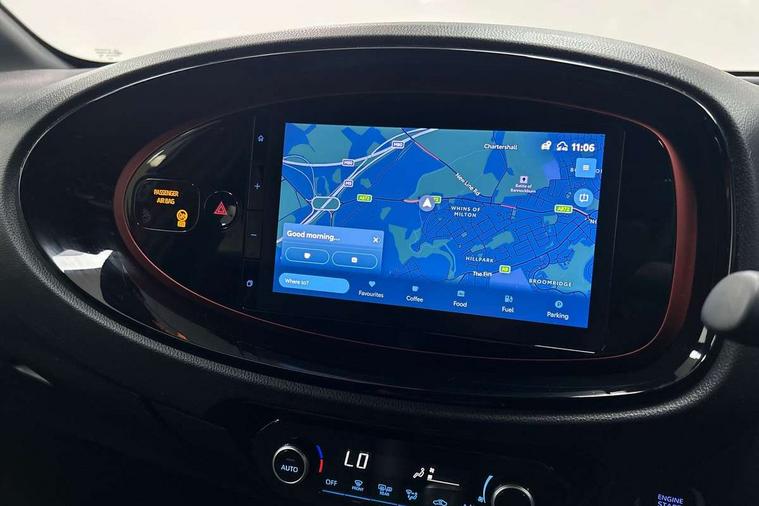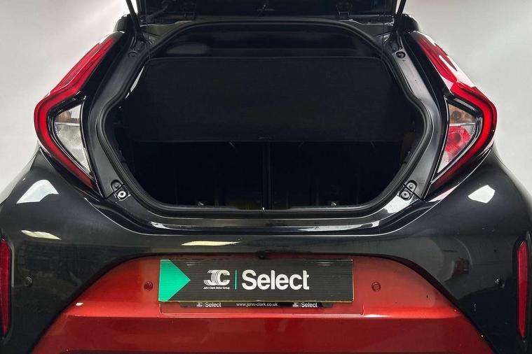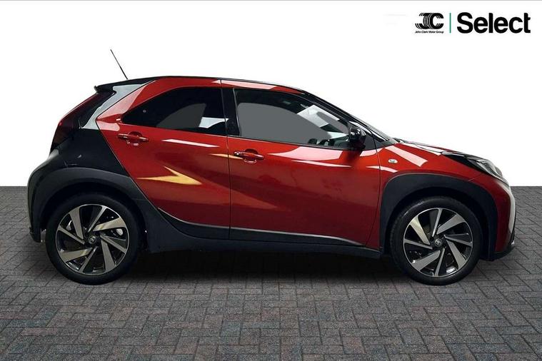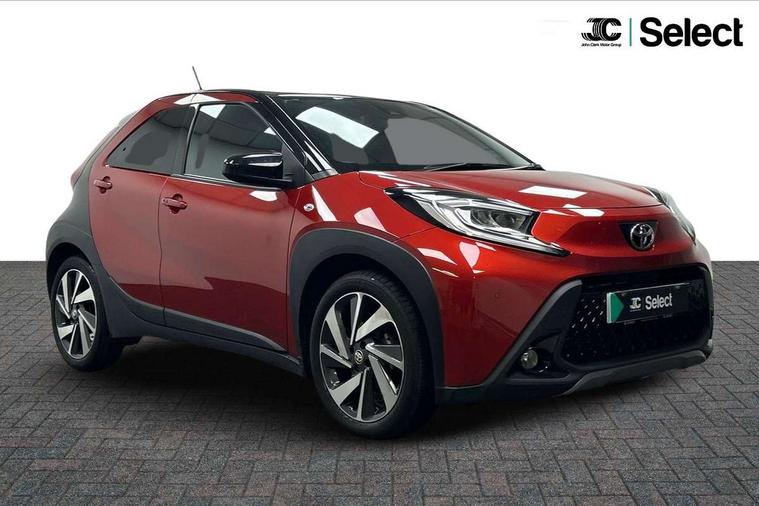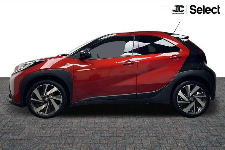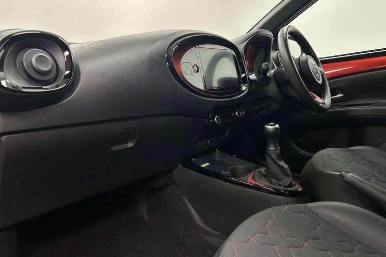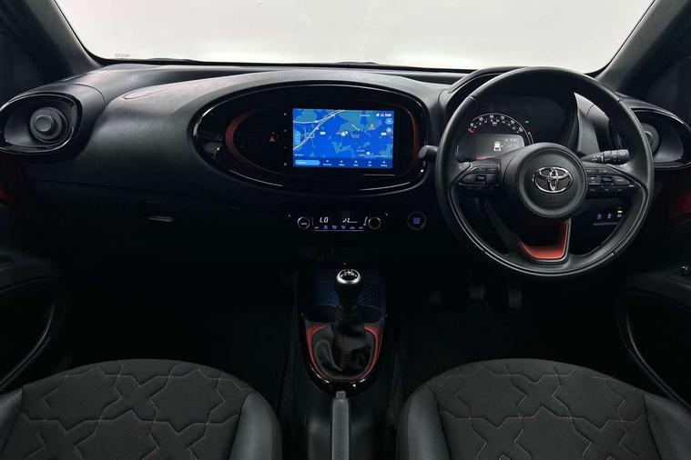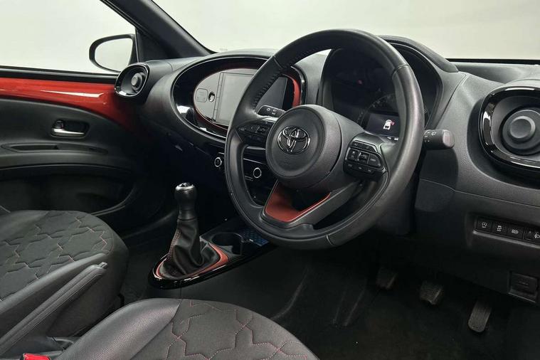 4.2" TFT colour screen, Adjustable speed limiter, Analogue speedometer, Bluetooth connectivity, Digital tachograph, Driver attention alert system, eCall emergency call system, Electric power steering, Front and rear parking sensors with auto brake, Intersection turn assist, Key reminder warning, Noise reduction kit, Pre collision system with emergency steering assist, Remote boot door release on key, Reversing camera with static guide lines, Smart entry and push button start, Speed limit display, Start and stop, Wireless charger, Wireless Smartphone Integration includes Apple CarPlay and Android auto, Vehicle Stability Control (VSC), 4 speakers, 9" HD multimedia display touch screen with Toyota smart connect, DAB digital audio broadcast, USB connector, Auto headlights, Auto wipers, Automatic headlights cut-off, Automatic high beam On/Off switch, Bicycle towing hook, Black fog light surrounds, Black side protection mouldings, Black wheel arch mouldings, Body colour door handles, Body coloured front bumper, Boot door scuff plate, Eclipse black rear bumper, Electric heated door mirrors, Follow me home headlights, Front and rear underruns in silver, Front fog lights, Front power windows, Gloss black door mirrors, Gloss black upper front grille, Headlight cut-off reminder, LED daytime running lights guide, LED front light guide, LED High mounted stop lamp, LED projector headlights, Manual day/night rear view mirror, Manual headlight levelling, Pagoda roof, Power adjustable door mirrors, Power back door, Privacy glass, Rain sensor, Rear combination lights LED bulb type, Rear side wing doors, Rear windscreen defogger, Rear windscreen wiper, Remote hazard lights system, Short antenna, Variable intermittent windscreen wipers, 12v power outlet - front, 2 seat bench in 2nd row, 3 spoke leather steering wheel, 50/50 split folding rear seat, Adhesive roof headlining, Adjustable speed limiter switch on steering wheel, Audio and telephone switches on steering wheel, Auto air conditioning, Black roof lining, Body colour satin anodised insert on steering wheel, Boot light, Centre room light, Chrome interior door handles, Chrome surround on air conditioning buttons, Clean air filter, Console box storage, Floor mats, Front and rear cup holders, Front head rest deco art, Front head restraints, Height adjustable driver seat, Intelligent adaptive cruise control switch on steering wheel, ISOFIX child restraint system on rear seats, Lane departure alert switch on steering wheel, Leather gearshift knob, Light blue ambient lighting in centre console, Manual tilt steering wheel, Manually reclining and sliding driver seat, Manually reclining and sliding front passenger seat, Multimedia switches on steering wheel, Partial synthetic leather upholstery, Pollen filter, Rear door pockets, Rear head restraints, Satin silver insert on gear shift knob, Single compartment glovebox with lights, Single front passenger seat, Soft tonneau cover, Sun visors with mirror on driver and passenger side, Voice recognition switch on steering wheel, Toyota safety sense pack - Aygo X, Anti lock braking system + Electronic brake force distribution, Child safety door lock, Emergency brake light signal (EBS), Hill start assist control (HAC), Passenger airbag on/off switch, Seat belt reminder for front and rear seats, Supplement restraints system (SRS) - 6 airbags, Traction control, Tyre pressure warning system, Immobiliser, Remote power door locks, Black wheel centre caps, Tyre repair kit,