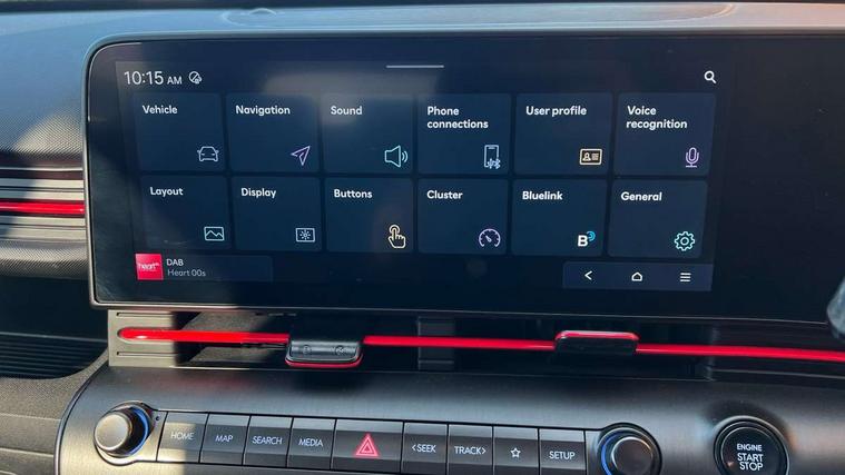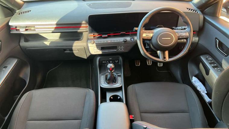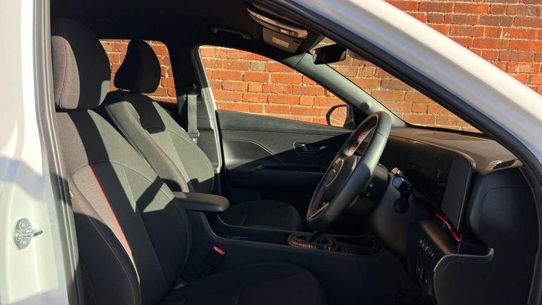 12.3" touchscreen centre console display satellite navigation with bluelink, live services and mapcare, Bluetooth connectivity with voice recognition, Cruise control, Digital clock, Driver status monitor (DSM), Driver supervision instrument cluster with 12.3" LCD display, eCall emergency call system, Feature on demand - Enabled, Forward collision avoidance assist (FCA 1.5) - Car, pededstrian, cycle and junction turning, Front parking sensor, Height adjustable power tailgate, Intelligent speed limit assist, Lane follow assist, Lane keep assist, Leading vehicle departure alert (LVDA), Parking system with rear camera and guidance system, PAS, Rear parking sensor, Roadside assistance, Windscreen washer fluid sensor and warning indicator, Wireless phone charging pad, Wireless Smartphone Integration includes Apple CarPlay and Android auto, 2 front USB C and 2 rear USB C charging points, DAB Digital radio, Speakers - Front, rear and tweeters, Steering wheel audio, phone and cruise controls, Auto dimming rear view mirror, Automatic headlights with dusk sensor, Automatic windscreen wipers with rain sensor, Body colour bumpers, Body colour exterior door handles, Body coloured wheel arch inserts, Door mirror LED indicator lights, Electric front windows with anti-trap mechanism and one touch control, Electric rear windows, Electrically adjustable and heated door mirrors, Full LED MFR headlights, Gloss black door mirrors, LED daytime running lights, LED upper and lower rear lights, Power folding door mirrors, Privacy glass - Rear windows and tailgate, Rear roof spoiler with integrated LED brake light, Rear side wing doors, Rear wiper, Roof rails, Solar glass with front door glass and windscreen, Tinted glass in front and rear doors, Windscreen auto defog function, 12V power outlet in front console, 2 zone climate control, 3 seat bench in 2nd row, 40/20/40 split folding rear seat, Adjustable head restraints, Aluminium pedals, Ambient lighting, Driver and passenger front seat pockets, Driver's seat lumbar support, Driver/passenger manual seat height adjustment, Driver/passenger sunvisors and illuminated vanity mirrors, Floor mats, Heated front seats, Heated rear seats, Heated steering wheel, Height/reach adjustable steering column, Isofix rear child seat fastenings, Leather wrapped steering wheel and gear knob, LED centre interior light, LED front interior light, Luggage compartment LED lighting, Luggage shelf, Metal paint effect interior door handles, N Line cloth upholstery, Parcel shelf, Rear centre armrest, Rear centre console with air vents, Single front passenger seat, Vertical adjustment rear head restraints, N Line exterior design pack - Kona, Trailer wiring package - Kona, Airbag - front, front side, curtain and centre front airbag, Anti-lock brake system (ABS), Childproof rear door locks, Downhill brake control, EBD + Brake Assist, Electric parking brake, Electronic stability control, Fasten seatbelt reminder, Fixed 3 point for second row centre passenger seatbelt, Front seatbelt pretensioners, Height adjustable front seatbelts, Hill start assist control (HAC), Passenger airbag deactivate switch, Rear seat alert, Traction control, Tyre pressure monitoring system, Alarm/immobiliser, Deadlocks, Folding key, Locking wheel nuts, Remote central locking, Smart key with keyless entry and engine start/stop button, Five year annual vehicle health checks, Temporary mobility kit (TMK),