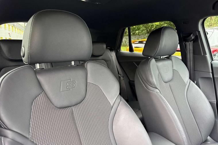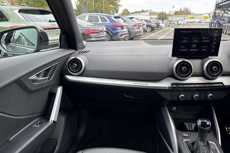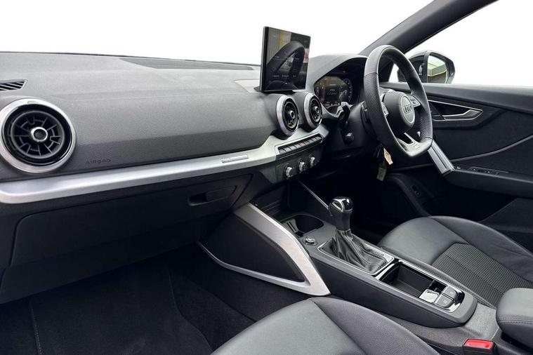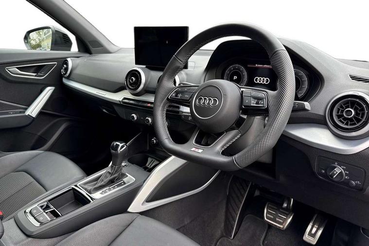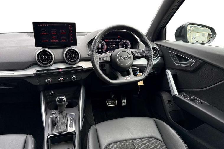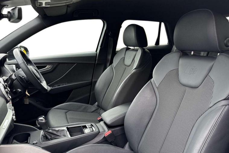 3D map display, Audi connect navigation and infotainment includes innovative services, Audi connect remote and control connects your vehicle to your smartphone, Audi drive select: S tronic - power steering assistance + engine + gearshift (modes: comfort, auto, dynamic, efficiency, individual), Audi smartphone interface - Apple carplay/Android Auto, USB connect, 2xSDXC card readers, voice control for navi, telephone, music and 3rd party apps, Audi virtual cockpit, Automatic start/stop system with recuperation, Bluetooth interface includes bluetooth audio streaming, Camera based traffic sign recognition, Cruise control, Distraction and Fatigue warning, E-call, Jukebox hard drive memory for music (10GB), Lane departure warning, MMI navigation plus with 8.8" touchscreen, Natural voice recognition, Power operated tailgate, Progressive steering, Rear parking sensors, Sport suspension, 6 passive loudspeakers, DAB Digital radio, USB type C port, Audi beam, Auto dimming rear view mirror, Black window trims, Bumper in full body colour paint finish, Electrically adjustable, folding, auto dimming and heated door mirrors with integrated LED side indicators, Front windscreen with grey tinted sunband, LED daytime running lights, LED headlights with dipped beam, high beam, position lights, indicators, LED rear lights, LED third brake light, Privacy glass - dark tinted rear and rear side windows from B-pillar backwards, Rear side wing doors, Rear wiper, Variable front intermittent wipers, Wheel arch trims in manhattan grey, 12v socket in front, 3 seat bench in 2nd row, 3 spoke flat bottomed multi-function leather sport steering wheel with gear shift paddles, 4-way electric lumbar support for front seats including manual seat height adjustment for both front seats, 60/40 split folding rear seat bench, Black carpets, Black cloth headlining, Front and rear head restraints, Front centre armrest, Front sport seats, Front/rear floor mats, Height/reach adjust steering wheel, Illuminated door sill trims with S logo, ISOFIX child seat mounting in front passenger and rear outer seats, Manual air conditioning, Single front passenger seat, Stainless steel pedals, Black styling pack - Q2, 3x3 point rear seatbelts, 6 airbags - Front, curtain and front side airbags, Electromechanical parking brake, Electronic stabilisation control including ABS, ASR and EDL, Front passenger airbag deactivation, Hill hold assist, Pre-sense front with pedestrian recognition, Seatbelt monitoring, Tyre pressure warning light with visual and acoustic warning, Warning triangle and first aid kit, Anti theft alarm, Anti theft wheel bolts, Electronically operated child locks, Remote central door locking, Aluminium interior element, Black dashboard, Gloss black centre console, Matt brushed aluminium trim inlays, Tool kit,