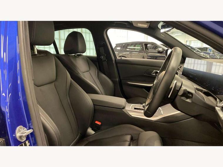 Active guard plus, Attentiveness assist, Automatic Start/stop button, Bluetooth Wi-Fi interface, BMW iDrive, BMW Teleservices, ConnectedDrive Services - last state call, Live cockpit plus with Navigation + 12.3" instrument display + 14.9" display, Intelligent voice assist, 2 USB, 4G LTE connect, Oil sensor for level and grade, Personal e-SIM, Shifting point display, Double joint spring strut front axle, Fuel tank breather system, Public mode 3 professional fast charging cable with 5m length, Steptronic Sport automatic transmission with steering wheel mounted gearshift paddles launch control and xtreme drive lever control, DAB tuner, 3rd brake light, Auto dimming rear view mirror, Automatic headlight beam throw control with load dependent regulating reaction, dynamic compensation of braking dive and acceleration squat, Bi-LED Low and high beam headlights, BMW emblem, engine compartment lid and tailgate, Body colour roof fin, Door sill strips, Electric windows - front and rear, with open/close fingertip control, anti-trap facility and comfort closing, Fading support, Follow me home headlight function, Front and rear bumper system with replaceable deformation elements, Front apron plastic in body colour, Fuel filler flap - right rear in body colour, Heat protection glazing on front windows and windscreen, Heated washer jets, High gloss chrome kidney frame with high gloss black kidney struts, LED daytime running lights, LED rear lights, LED turn indicator, Licence plate panel integrated into front bumper and tailgate, M high gloss shadow line exterior trim, Matt black B-pillar finsher, Matt black window recess cover, Model designation on right side of tailgate, One piece front bumper cover including towing eye cover in body colour, Rain sensor with automatic headlight activation, Rear boot, Rear side wing doors, Reversing lights, Side frame decorative moulding black matt, Trailer stabilisation logic, Visible exhaust tailpipe finisher, Welcome lights in interior and door handle area, 12V power socket in front storage compartment, 2 front cupholder in centre console with clamping elements and matt black inlay, 3 seat bench in 2nd row, 3 spoke M Sport multifunction flat bottom leather steering wheel, 3 zone automatic air conditioning, 40:20:40 split folding rear seat with loading system, Anthracite headlining, Armrest integrated in front and rear door trim + front centre console armrest, Battery in luggage compartment, BMW ID, Cruise control operation in steering wheel, Driving experience mode switch, Folding rear centre armrest with 2 cupholders, Front and rear headrests, Front and rear velour floor mats, Front reading light, Heated front seats, Height adjustable mechanically and infinitely variable steering column, Illuminated armrest storage compartment, Illuminated glove compartment, Illuminated luggage compartment, Lashing eyelets in luggage compartment, Single front passenger seat, Sunvisors with illuminated vanity mirrors and ticket pocket, Toolkit located in luggage compartment, Connected pack professional - 3 Series Saloon/Touring, Interior and exterior mirror pack - 3 Series Touring/Saloon, M sport exterior styling pack - 3 Series Saloon/Touring, Parking assistant pack - 3 Series, 3x3 point rear seatbelts, BMW emergency call, Child locks on rear doors, Crash sensor activating of airbags, Unlocking doors, hazard warning lights, interior light, safety battery terminal, Drive-off assistant, Driver and front passenger with seat occupancy detection for driver's and passenger side, Driver and passenger side airbags, body protection at side and airbags deploy from seat backrests, Dry braking, Dynamic brake control, Dynamic stability control + (DSC+) - Anti-lock Braking System (ABS) with brake assist and cornering brake control + Automatic Stability Control (ASC), Dynamic Traction Control - DTC, Electric parking brake including automatic hold function and automatic release of the parking brake when driving off, Electronic differential lock control (EDLC), Front airbag deactivation, Front airbags for driver and front passenger, Head airbags in 1st and 2nd row, head protection at side, curtain airbags open from headliner above 1st and 2nd row, Plastic fuel tank, Side impact protection, Tyre pressure sensors, Ventilated front and rear disc brakes, Warning triangle and first aid kit, Alarm system, Centre lock switch, Closing system with central locking, Electronic vehicle immobiliser, Locking wheel bolts,