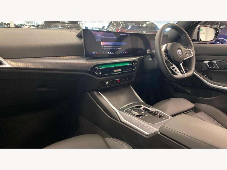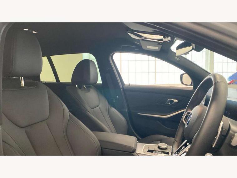 Active guard plus, Attentiveness assist, Automatic Start/stop button, Bluetooth Wi-Fi interface, BMW iDrive, BMW Teleservices, ConnectedDrive Services - last state call, Electric bootlid, Live cockpit plus with Navigation + 12.3" instrument display + 14.9" display, Intelligent voice assist, 2 USB, 4G LTE connect, Oil sensor for level and grade, Personal e-SIM, Shifting point display, Double joint spring strut front axle, Fuel tank breather system, Public mode 3 professional fast charging cable with 5m length, Steptronic Sport automatic transmission with steering wheel mounted gearshift paddles launch control and xtreme drive lever control, DAB tuner, 3rd brake light, Auto dimming rear view mirror, Automatic headlight beam throw control with load dependent regulating reaction, dynamic compensation of braking dive and acceleration squat, Bi-LED Low and high beam headlights, BMW emblem, engine compartment lid and tailgate, Body colour roof fin, Door sill strips, Electric windows - front and rear, with open/close fingertip control, anti-trap facility and comfort closing, Fading support, Follow me home headlight function, Front and rear bumper system with replaceable deformation elements, Front apron plastic in body colour, Fuel filler flap - right rear in body colour, Heat protection glazing on front windows and windscreen, Heated washer jets, High gloss chrome kidney frame with high gloss black kidney struts, High gloss shadow line roof rails, LED daytime running lights, LED rear lights, LED turn indicator, Licence plate panel integrated into front bumper and tailgate, M high gloss shadow line exterior trim, Matt black B-pillar finsher, Matt black window recess cover, Model designation on right side of tailgate, One piece front bumper cover including towing eye cover in body colour, Rain sensor with automatic headlight activation, Rear side wing doors, Rear wiper, Reversing lights, Side frame decorative moulding black matt, Trailer stabilisation logic, Visible exhaust tailpipe finisher, Welcome lights in interior and door handle area, 12V power socket in front storage compartment, 2 front cupholder in centre console with clamping elements and matt black inlay, 3 seat bench in 2nd row, 3 spoke M Sport multifunction flat bottom leather steering wheel, 3 zone automatic air conditioning, 40:20:40 split folding rear seat with loading system, Anthracite headlining, Armrest integrated in front and rear door trim + front centre console armrest, Battery in luggage compartment, BMW ID, Cruise control operation in steering wheel, Driving experience mode switch, Folding rear centre armrest with 2 cupholders, Front and rear headrests, Front and rear velour floor mats, Front reading light, Heated front seats, Height adjustable mechanically and infinitely variable steering column, Illuminated armrest storage compartment, Illuminated glove compartment, Illuminated luggage compartment, Lashing eyelets in luggage compartment, Single front passenger seat, Sunvisors with illuminated vanity mirrors and ticket pocket, Toolkit located in luggage compartment, Connected pack professional - 3 Series Saloon/Touring, Interior and exterior mirror pack - 3 Series Touring/Saloon, M sport exterior styling pack - 3 Series Saloon/Touring, Parking assistant pack - 3 Series, 3x3 point rear seatbelts, BMW emergency call, Child locks on rear doors, Crash sensor activating of airbags, Unlocking doors, hazard warning lights, interior light, safety battery terminal, Drive-off assistant, Driver and front passenger with seat occupancy detection for driver's and passenger side, Driver and passenger side airbags, body protection at side and airbags deploy from seat backrests, Dry braking, Dynamic brake control, Dynamic stability control + (DSC+) - Anti-lock Braking System (ABS) with brake assist and cornering brake control + Automatic Stability Control (ASC), Dynamic Traction Control - DTC, Electric parking brake including automatic hold function and automatic release of the parking brake when driving off, Electronic differential lock control (EDLC), Front airbag deactivation, Front airbags for driver and front passenger, Head airbags in 1st and 2nd row, head protection at side, curtain airbags open from headliner above 1st and 2nd row, Plastic fuel tank, Side impact protection, Tyre pressure sensors, Ventilated front and rear disc brakes, Warning triangle and first aid kit, Alarm system, Centre lock switch, Closing system with central locking, Electronic vehicle immobiliser, Locking wheel bolts, Tyre repair kit,
