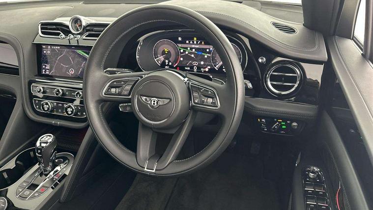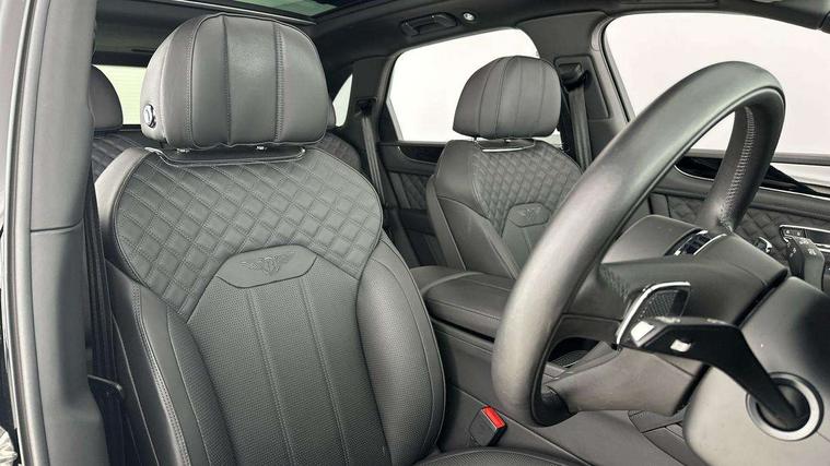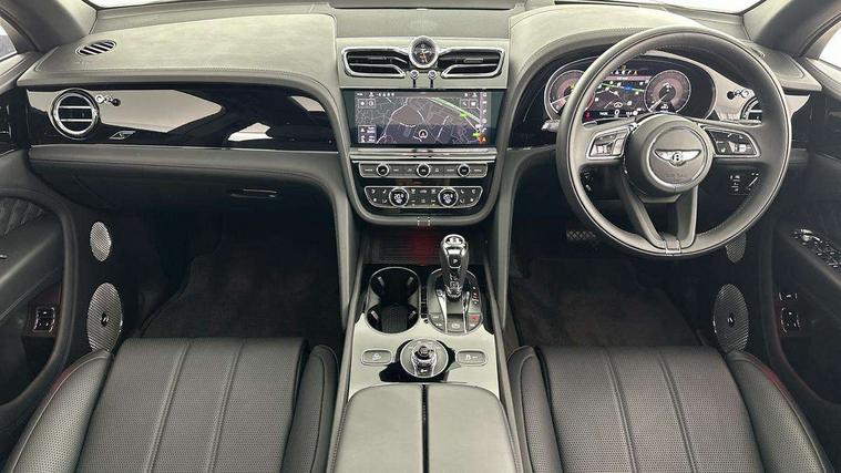 10.9" touch screen high resolution and configurable infotainment display and digital drivers information display, Advanced navigation function with text, search, 3D, satellite maps, speed limit, dynamic traffic route guide, telephone, Text-speech + voice, Bentley branded clock, Bentley GPS tracking system full fitment, Bentley safeguard, Blind spot assist, Bluetooth and WIFI enabled, Emergency services call system, Four drive dynamics modes (bentley, comfort, enhanced sport, custom), Front/rear park distance control, Hands free power tailgate, MMI Screen, My Bentley connected car services, Power latching to all doors for easy entry, Redesigned instrument panel lower trim rolls, incorporating a storage compartment on the passenger side, Seamlessly integrated technology with wireless apple car play and android auto, Speed sensitive variable ratio electric power steering, Sports driver information panel, Sports kombi graphics, Touch screen remote, Voice control system, Wireless phone charging compartment, Air suspension with continuous damping control, Bentley Dynamic ride, Permanent all wheel drive with centre torsen differential, Bluetooth audio streaming, 3rd brake light, Adaptive low beam, Auto dimming rear view mirror, Automatic headlights, Bentley badge in tailgate opening switch, Black door mirrors, Black painted shark fin aerial, Black side sills, Black speed style front and rear bumper, Body coloured front lower bumper apron panel, Body coloured lower bodywork - Standard paint range, Bumper design with large side intakes and sculptured surfaces, Clamshell rear tailgate design with Bentley lettering under the wings, Dark tinted front & rear lamps, Elec/heat/adj/fold door mirror+memory, Electric tilt/slide panoramic sunroof, Exterior S badge, Fender design reduces over bodied perception, Fixed rear spoiler, Front and rear fog lamps, Full LED supplementary lamps and tail lamps, Full matrix LED headlamps with high beam assist, Full width clamshell design and deeply contoured rear tailgate panel, Heated rear windscreen, Large dominant B shaped side wing vent front position, LED daytime running lights, Long fender vent above the power line on body side, Lower door side mouldings, Number plate aperture position under rear bumper, Oval split tailpipe, Phone antenna amplifier, Rain sensing wipers, Rear side wing doors, Rear wiper, S fascia badge, Self levelling wheel badge, Sports exhaust, Trailer sway mitigation, Tunnel detection for auto light control, V8 exterior badge, Wet arm wipers and heated water jets, 12V power in rear centre console, 12V socket in glovebox, 12V socket in luggage compartment, 3 seat bench in 2nd row, 4-Zone HVAC, Air Ioniser, Black (Beluga) boot carpet, Dinamica gear lever, Dinamica seats and dash, Electric tilt and reach adjustment steering column with memory and easy entry function, Electronic accessory preparation, Embroidered Bentley emblems, Foams and cover design on all seats, Folding luggage compartment cover, Front and rear cupholders, Indented steering wheel, Isofix attachments on outer rear seats, Key box, Load through facility, Lockable cooled glovebox, Luggage rails, Rear head restraints, Rear seat climate control, Rear seat massage function, Single front passenger seat, Stowage with instrument panel, doors (front and rear), armrests and console, Twin front armrests, Two metal bulls eye vents with organ stops and redesigned centre vents, Two type C USB ports front and rear, Unique S fluted seat colour combination with dinamica inserts, Veneered/carbon fibre centre fascia panel, Wing pockets for small items, Blackline Specification Pack - Bentayga, 3 rear seatbelts, ABS/EBD, Child safety lock, EDL, Electronic park brake with move-off assist, Electronic stability control, Electronic tyre pressure monitoring, ESP + MSR + ASR, Exit warning, Front and rear head airbags, Front and rear thorax airbag system, Front and rear ventilated brake disc, Front passenger airbag deactivation, Front seatbelt pretensioners with force limiters, Hill descent function, Hydraulic Brake Assist (HBA), Rear outer seatbelt pretensioners with force limiters, Rollover mitigation, Side airbags, Traction control, Immobiliser, Keyless entry, Keyless ignition, Preparation for vehicle tracking, Remote central locking, Volumetric anti theft alarm, 22" Summer tyres,