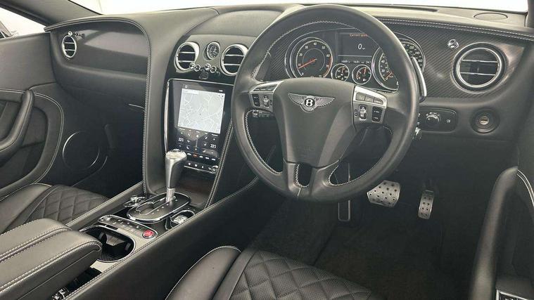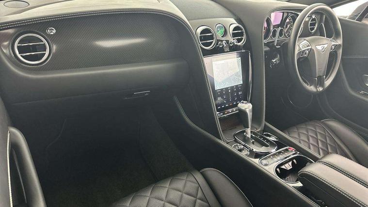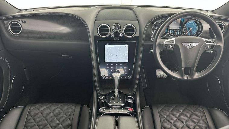 Bluetooth telephone connectivity, Breitling clock, Continuous damping control, Front/rear park distance control, Infotainment system/satellite navigation, Power boot opening and closing, Power latching to all doors for easy entry, Service indicator, Servotronic speed sensitive power steering, Telephone voice dialling, Trip computer, Anti roll bar front and rear, 30gb Hardrive media storage, DVD System, External media interface, iPod connection, Radio/CD, Satellite Radio, Steering wheel mounted controls, Acoustic glazing with infra red reflective, Aluminium bonnet, Bentley 'jewel' fuel filler cap, Bi-Xenon headlights and headlight washers, Body coloured bumpers, Chrome grille, Daytime running lights, Elec/heat/adj/fold door mirror+memory, Electric front windows, Heated rear windscreen, Rain sensor windscreen wipers, Rear diffuser, Retractable rear spoiler, 14 way Elec adj front seats/memory/lumbar control, Diamond quilted hide to seat facings and doors and rear quarter panels, Drilled alloy accelerator and brake pedals, Easy entry/electrically adj steering column+memory, Embroidered Bentley emblem in headrests, Footwell illumination, Front head restraints, Full hide trim upholstery, Illuminated centre console storage, Interior light, Isofix attachments on rear seats, Knurled sports gear lever, Multi-zone climate control, Rear courtesy lights, Rear head restraints, Seatbelts-colour to match hide, Steering column mounted gear shift paddles, Vertical fluted seat style, Anti-lock brakes, Brake assist function, Curtain airbags, Door open warning light, Driver/front passenger airbag, Drivers knee airbag, Electronic parking brake, Electronic Stability Programme, Emergency brake force distribution, Front and rear thorax airbag system, Front passenger airbag deactivation, HBA (Hydraulic Brake Assist), Seatbelt warning, Side airbags, Traction control, Tyre pressure monitoring system, Alarm/immobiliser, Anti-theft wheel bolts, Auto door lock when driving, Keyless entry, Keyless ignition, Ultrasonic alarm, Embroidered emblems to all head restraints,