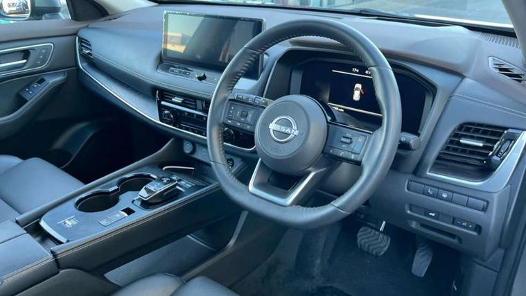 Advanced 10.8" head up display, Android auto/Apple CarPlay (Wired), Blind spot warning, Drive modes (sport, normal, eco), e-Pedal step, Electric speed sensitive power steering, Emergency and breakdown call, Front and rear parking sensors, Full Digital 12.3" TFT Digital Combimeter, Google maps services - search, weather, 3D maps and Google street view, Hands free power tailgate, Idle stop/start system, Intelligent around view monitor, Intelligent driver alert system, Intelligent forward collision warning, Intelligent lane departure warning, Intelligent lane intervention, Intelligent lane keep assist, Lane departure prevention, Maximum speed limiter, Moving object detection, Nissan connect 12.3 inch touchscreen infotainment system, Nissan connect nav with TomTom traffic, Pro pilot and head up display, ProPilot park, Push button starter, Rear cross traffic alert, Rear view camera, Remote control services - door locks, lights, horn and car locator, Telematics - notifications and connectivity services, TomTom live traffic services, Traffic jam pilot, Traffic sign recognition with legal speed adjustment, Trip computer, Virtual personal assistant and firmware over the air capability, Wireless apple carplay, Wireless charging pad, 6 speakers, AM/FM audio system with DAB, Bluetooth audio streaming, Front USB connections (Type-A and Type-C), Rear USB charging only ports (Type-A and Type-C), 3rd brake light, Auto dimming rear view mirror, Auto rear wiper when reversing, Body colour mirror caps, Body coloured door handles, Bodyside mouldings, Chrome side window finisher, e-POWER badging, Electric auto folding door mirrors, Electrically adjustable and heated door mirrors, Follow me home headlights, Headlights auto levelling system, High beam assist, Intelligent auto headlights, LED daytime running lights, LED headlights with adaptive driving beam, LED rear lights, One touch front and rear electric windows with remote opening and closing, Partially body coloured bumpers, Rain sensing wipers, Rear privacy glass, Rear reversing light (bulb lighting), Rear roof spoiler, Rear side wing doors, Rear styling plate, Shark fin antenna, Splash free wipers, Super UV and infrared cut glass, Thermaclear heated windscreen, Three blink turn signal, 12v power socket in dashboard and luggage, 3 bench rear seats in 2nd row, 3 rear headrests, Butteryfly console, Chrome interior door handles, Driver and front passenger sunvisors with illuminated vanity mirrors, Driver seat back pocket, Electric adjustable 2 way lumbar support for driver, Electric adjustable 2 way lumbar support for passenger seat, Electrically adjustable driver seat, Front and rear heated seats, Front centre console and armrest, Front cupholders, Front door with bottle holders, Heated steering wheel, Height adjustable driver's seat, Height adjustable front headrests, Height adjustable passenger seat, Leather shift knob, Leather steering wheel, Luggage board system, Luggage space lighting, Multifunction steering wheel, Passenger seat back pocket, Rear armrest with 2 cupholders, Rear door bottle holders, Single front passenger seat, Sliding second row seats, Split folding 2nd row - 40/20/40, Steering column mounted gear shift paddles, Synthetic leather monoform upholstery, Tilt/telescopic adjustable steering wheel, Tri zone automatic climate control with pollen filter, Two rear isofix child seat anchorage points with top tether, Sky pack - X-Trail, 3x3 point rear seatbelt pretensioners + load limiters, ABS with EBD and brake assist, Active brake limited slip, Auto hold function, Child locks on rear doors, Curtain and front side, far side airbags, Driver and passenger airbags, Driver, passenger and 2nd row rear seat belt reminder, Electronic parking brake, Front seatbelt pretensioners + load limiters, Height adjustable front seatbelts, Hill start assist, Intelligent blind spot intervention, Intelligent front emergency braking with pedestrian, cyclist recognition and junction assist, Intelligent rear automatic braking, Tyre pressure monitoring system, Vehicle dynamic control, Engine immobiliser, Intelligent Key, Remote central door locking with deadlocking, Thatcham Cat.1 alarm, 19" Diamond cut alloy wheels, Tyre puncture repair kit,