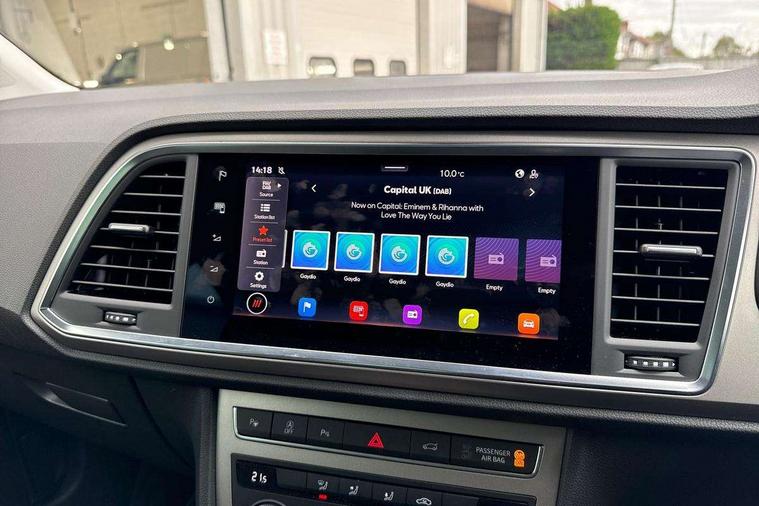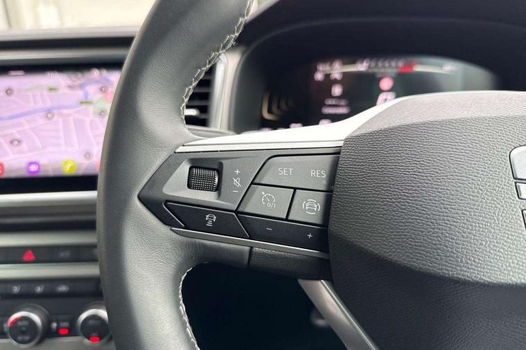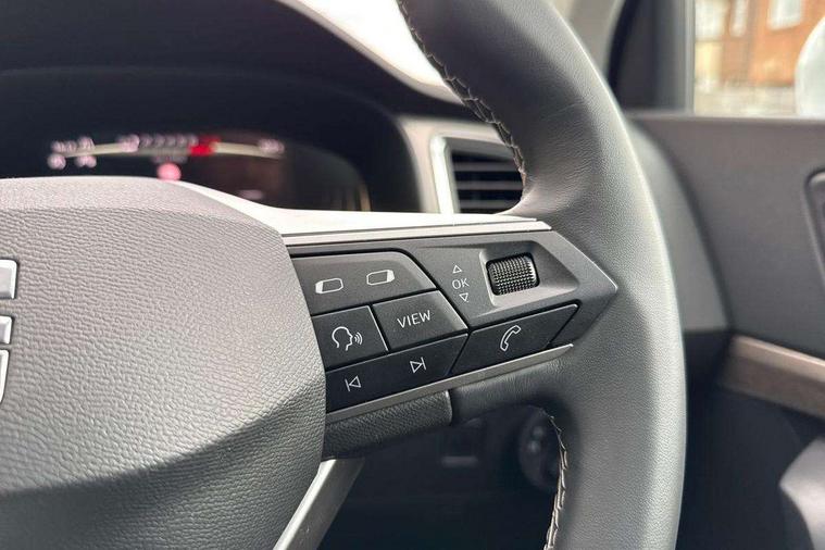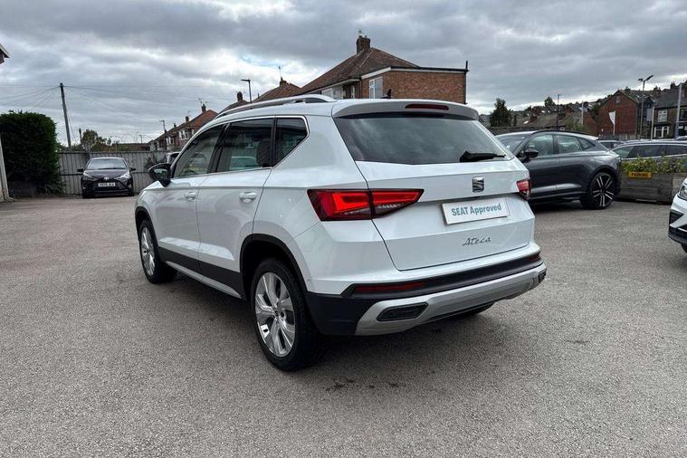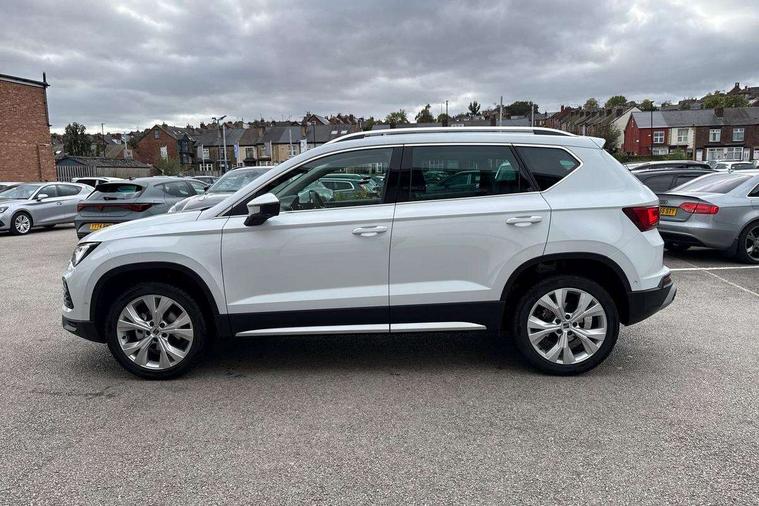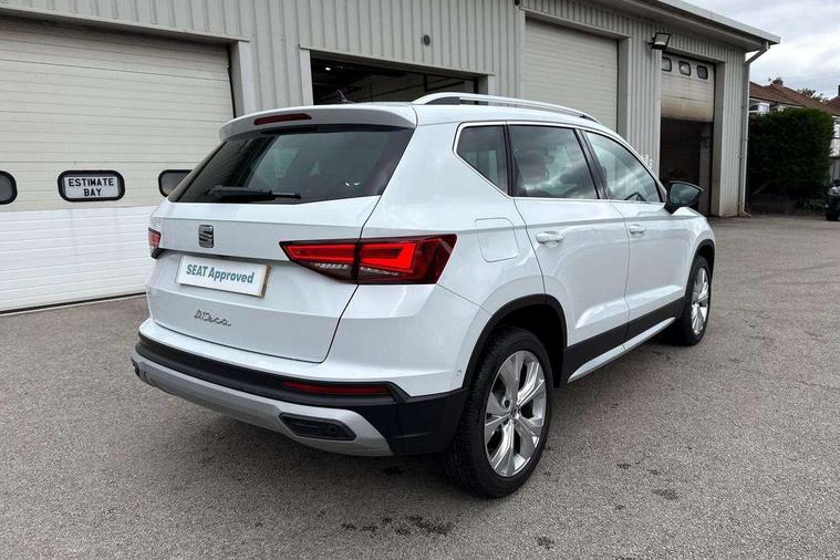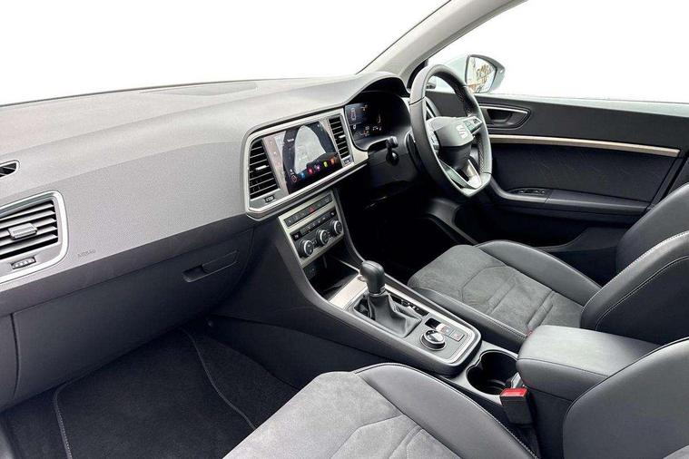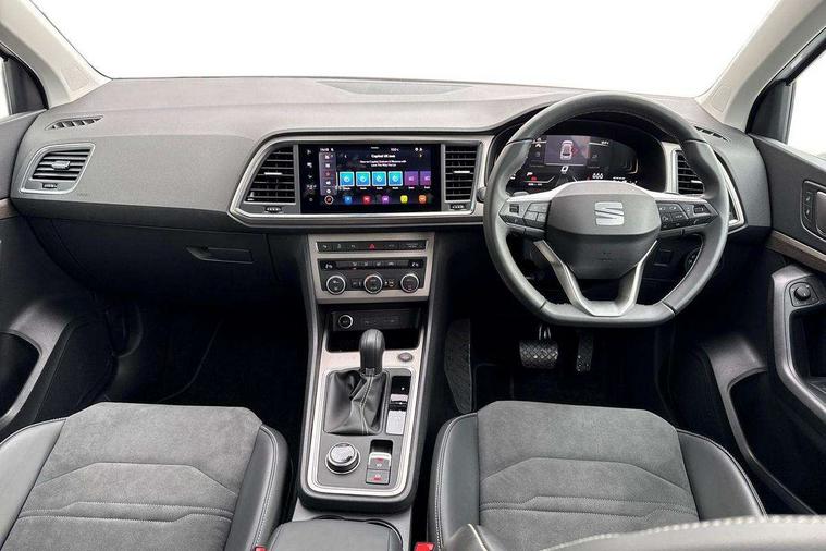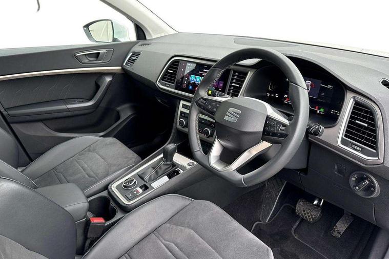 8" Digital cockpit, Colour multi-function on board computer display, E-call, Electric tailgate, Outside temperature gauge, Progressive power assisted steering, Rear view camera, SEAT drive profile with driving experience button - Normal, Sport, Eco and Individual mode, gearshift, steering and throttle response, Self parking functionality (includes front and rear parking sensors), Start/stop system, Trip computer, wired and wireless full link smartphone integration, Wireless phone charger, Steering wheel mounted audio/phone controls, Black wheel arch surrounds, Body colour bumpers, Chrome front grille frame, Chrome roof rails, Chrome side window trim, Dark tinted rear windows, Daytime running lights, Door mirrors with welcome light silhouette, Dynamic headlight range control with self adjusting whilst driving, Electric adjustable/heated/folding door mirrors, Front and rear electric windows, Front grille hot stamping, Full LED headlamps with lens and LED front fog lamps with cornering function, Heat reflecting windscreen, Illuminated aluminium front door sill, LED 3rd brake light, LED rear tail lights with dynamic indicators, Rear exhaust tailpipe, Rear fog lights, Rear side wing doors, Rear wash/wipe, Reflex silver side mouldings, Variable front intermittent wipers, 12v socket in front, 3 seat bench in 2nd row, 60/40 split folding rear seat, Dinamica upholstery with front comfort seats, Drawer under right front seat, Dual zone climate control, Front and rear head restraints, Front centre armrest, Front seat back storage pockets, Height adjustable driver and passenger seat with lumbar adjustment, ISOFIX points in outer rear seats with top tether anchorage points, Leather sports steering wheel and gear knob, Rear armrest and easy back seat release mechanism from boot, Single front passenger seat, Steering wheel mounted gearshift paddles, Convenience pack - Ateca, Interior lighting pack - Ateca, Navigation system pack with DAB - Ateca, Safety and driving pack (M) - Ateca, Safety and driving pack with attention and drowsiness assist - Ateca, 3x3 point rear seatbelts, ABS, Traction control system (TCS), Electronic stability control (ESC) and Electronic differential lock system (XDS), Airbags - Driver and front passenger airbag with deactivation, front side, two curtain and driver's knee airbags, Electric parking brake with auto hold function, Front and rear seatbelt reminder, Hill hold control, Manual rear child locks, Single tone horn, Tiredness recognition system, Tyre pressure monitoring system, Alarm, Keyless entry, Locking wheel bolts, Remote central locking, Chrome interior detailing, 18" Brillaint silver alloy wheels,