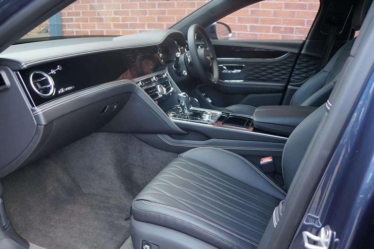 4G LTE telephone module, Adaptive cruise control, Apple car play, Bentley safeguard plus, Blind spot assist, Bluetooth telephone connectivity, Car computer, City assist, Continuous damping control, Emergency services call system, Engine start/stop button, Front/rear park distance control, Hands free boot opening, Head up Display, Inductive phone charger, Infotainment system/satellite navigation, Lane assist, Night vision, Power latching to all doors for easy entry, Rear cross traffic alert, Speed sensitive power steering, Telephone voice dialling, Top view camera, Traffic assist, Traffic sign recognition, Anti roll bar front and rear, Battery charger, Dynamic ride with electronic All wheel steer, Wi-Fi hot spot, 3rd brake light, Acoustic glass, Adaptive brake lights, Auto dimming door mirrors, Automatic headlamps, Azure exterior fender badges, Azure fascia badge, Azure treadplates, Bentley 'jewel' fuel filler cap, Body colour door mirrors, Body coloured bumpers, Elec/heat/adj/fold door mirror+memory, Electric front windows, Front fog lights, Full LED Matrix headlamps with high-beam assist, Hidden antennae, LED daytime running lights, Panoramic glass tilt and slide sunroof with twin blinds and vanity mirrors, Rain sensor windscreen wipers, Rear boot, Rear diffuser, Rear electric windows, Rear side wing doors, 14 way Elec adj front seats/memory/lumbar control, 5 seats, Air Ioniser, Azure seat emblems, Door lights, Easy entry/electrically adj steering column+memory, Electric rear window sunblinds, Footwell illumination, Front head restraints, Full hide trim upholstery, Illuminated centre console storage, Isofix attachments on rear seats, Multi-zone automatic climate control - two zone, Rear centre armrest with 2 cupholders + storage, Rear headrests, Sports pedals, City specification pack - Flying Spur, Colour specification pack - Flying Spur, Comfort specification pack - Flying spur, Mood Lighting Specification pack - Flying spur, Organic comfort quilt specification pack - Flying Spur, 3 point inertia reel seatbelts on outer rear seats, ABS/EBD, Child safety lock, Driver/front passenger airbag, Drivers knee airbag, Electronic park brake with move-off assist, Electronic tyre pressure monitoring, ESP, Exit warning, Front and rear curtain airbags, Front and rear thorax airbag system, Front passenger airbag deactivation, Hydraulic Brake Assist (HBA), Motor Slip Regulation (MSR) - Engine Drag Torque Control, Pedestrian warning, Traction control, Anti-theft wheel bolts, Bentley GPS advanced tracking system, Immobiliser, Keyless entry, Keyless ignition, Preparation for vehicle tracking, Remote central locking, Ultrasonic alarm, Tyre inflation kit,