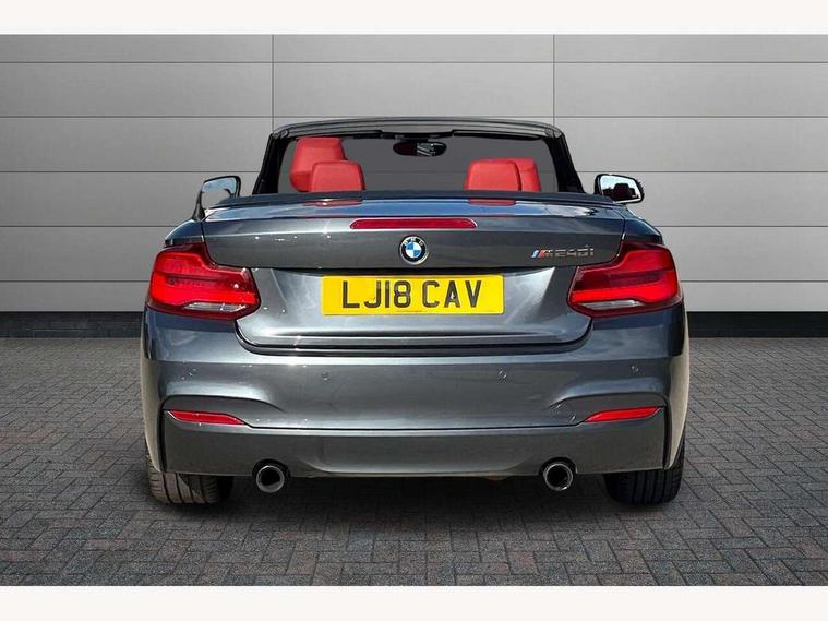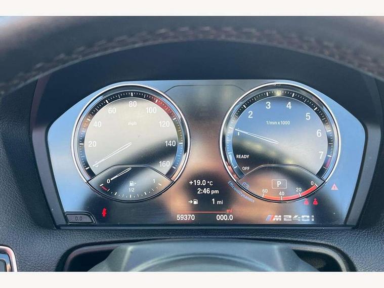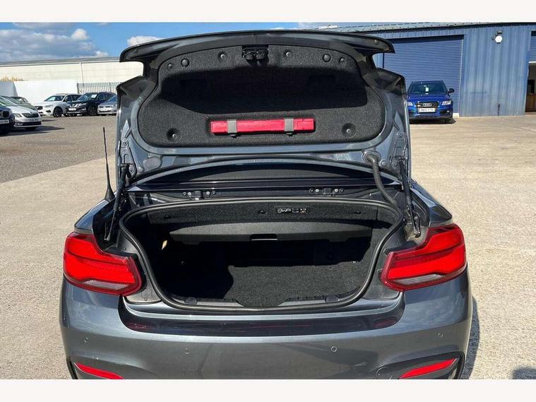 BMW Online services, BMW remote services, BMW Teleservices, Brake pad wear indicator warning light, Check control system, Door/boot open warning, Lights on warning, Oil temperature gauge, On board computer, Outside temperature display, Personal Profile, Real time traffic information, Service interval indicator, Speed limiter, Stop/start button, Variable sport steering, Drive Performance Control, Sports function on gearbox with steering wheel mounted gearshift paddles, BMW professional radio/CD/MP3, DAB Digital radio, 2 speed adjustable intermittent wipers with wash/wipe function, Auto dimming rear view mirror, Body colour bumpers, Body colour door handles, Body colour roof mouldings, Door mirror integrated indicators, Dual dark chrome exhaust tailpipes, Dynamic brake lights, Electric adjustable heated door mirrors, Electric front and rear windows with fingertip open/close + anti-trap all round, Exclusive door sill finishers, Ferric grey mirror caps, Follow me home headlights, Heat insulating tinted glass, Heated windscreen washer jets, LED welcome home lights, M aerodynamic body styling, Rain sensor including auto headlights activation, Welcome lighting, 12V sockets in front centre console and passenger footwell, 4 grab handles, Anthracite Velour floor mats, Dakota leather upholstery, Folding storage compartment with glasses holder + coin tray, Front cupholders x 2, Front door storage bins, Front head restraints, Front sliding armrest, Front/rear armrests within door panels, Glovebox with lid, ISOFIX child seat preparation+airbag deactivation, Lashing eyelets in boot, Leather handbrake lever, M Sport multifunction leather steering wheel, Reach + rake adjustable steering column, Rear centre armrest, Storage compartment in rear centre console, Interior comfort pack - 2 Series/M2, ABS/EBD, Automatic Stability Control (ASC), BMW emergency call, Cornering brake control (CBC), Crash Sensor - activates hazard/interior lighting + unlocks doors, Driver/Front Passenger airbags, DSC+, Dynamic brake control, Dynamic Traction Control - DTC, Front seat belts warning, Front seatbelt force limiters, Front seatbelt pretensioner, Front side airbags, Hill start assist, M Sport braking system, Tyre pressure monitoring system, Warning triangle and first aid kit, Drive away door locking, Electronic immobiliser, Key integrated remote control central locking, Locking wheel bolts, Remote control Thatcham category 1 alarm,