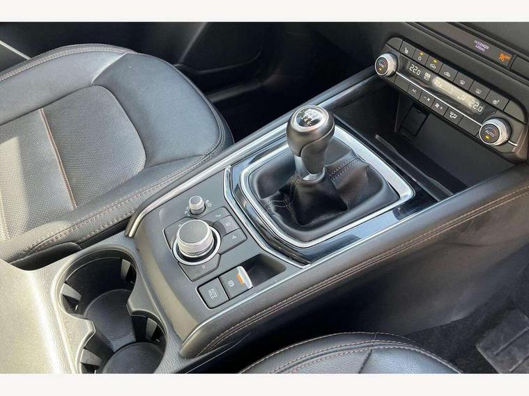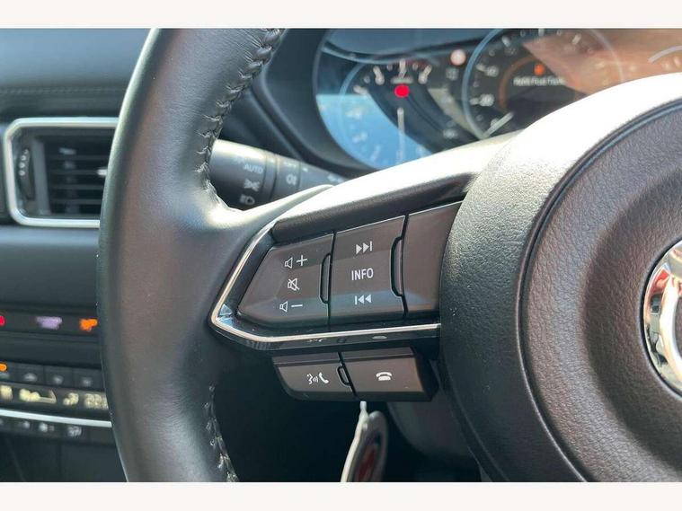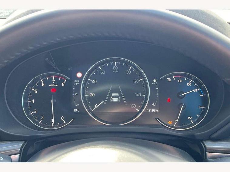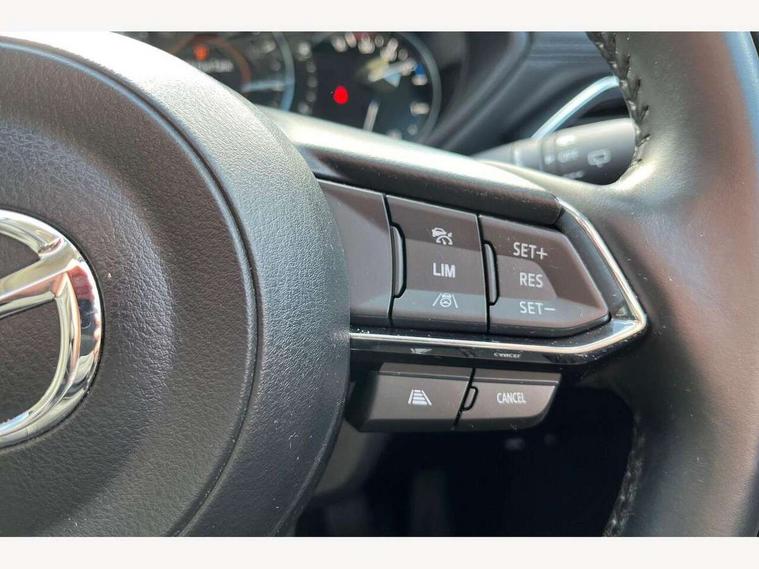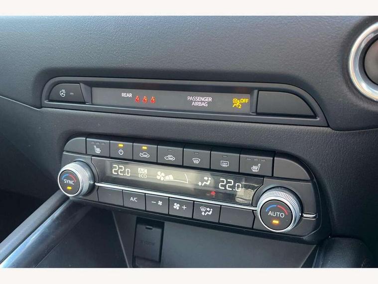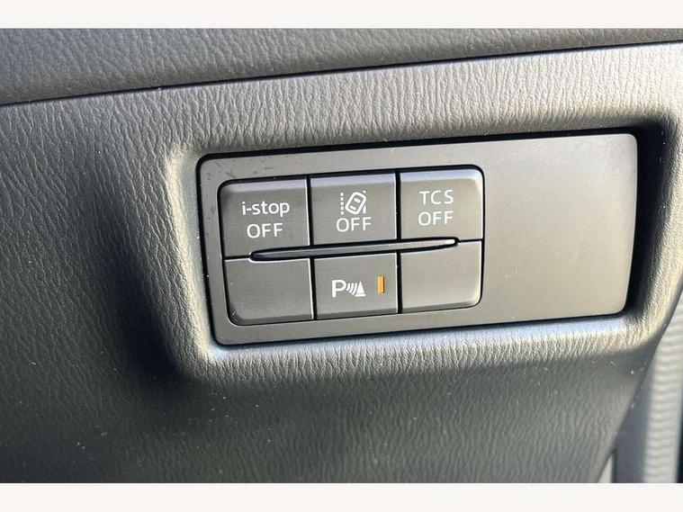 10.25" display with Mazda Connect infotainment, 7" colour TFT display, Apple car play/Android Auto, Blind spot monitoring with rear cross traffic alert, Bluetooth connectivity with voice control, Collision prevention assist, Connected services, Cruising Traffic Support, Electric power steering, Emergency stop signalling system, Engine start/stop button, Forward collision warning, Front and rear parking sensors, Integrated navigation system, Intelligent speed assist, Lane departure warning system, Lane keep assist, Qi wireless phone charging, Radar cruise control, Reversing camera, Service indicator, Traffic sign recognition (TSR), Trip computer, Windscreen projected colour active driving display (HUD) with memory, Cylinder Deactivation, i-stop, 2 USB sockets in rear, 2x USB sockets in front, AM/FM radio, Bluetooth audio streaming, Bose premium sound system with 10 speakers, DAB Digital radio, Multimedia Commander including separate volume dial, Steering wheel mounted audio controls, Adaptive front lighting system, Auto dimming rear view mirror, Automatic headlights, Black inlay dashboard panel, Body colour door mirrors, Body colour roof spoiler, Body coloured front and rear black lower bumper mouldings, Bright finish signature wing, Coming/leaving home lighting function, Door mirror integrated indicators, Dual chrome tailpipes, Dusk sensitive headlamps, Electric front/rear windows with one touch auto up/down, Front grille in gloss black finish, Gloss black B and C pillars garnish, High beam assist, Intermittent rear wash/wipe, LED auto levelling, LED daytime running lights, LED front fog lights, LED Headlights, LED third brake light, Power folding and heated door mirrors, Power tilt/slide sunroof, Privacy glass (rear side windows only), Rain sensing front wipers, Rear side wing doors, Satin black side mouldings, Scuff plates, Shark fin antenna, Signature LED rear combination lights, Vinyl with wood grain metal inlay door trim panel, Windscreen wiper de-icer, 12v electrical power outlet, 3 seat bench in 2nd row, 3 stage heated front seats, 40:20:40 Karakuri fold-flat seat system, 6 way electric adjustable passenger seat, 8 way electric driver seat with lumbar support + memory, Cargo room flat floor board with waterproof undertray, Driver seat power slide, recline and height adjustment, Driver, Front passenger and two rear grab handles with coat hooks, Driver/passenger front seatback pockets, Driver/passenger sunvisors + illuminated vanity mirrors (drivers with ticket holder), Dual zone climate control, Folding centre armrest with 2 cup holders, Front and rear door pockets, Front centre storage with two cupholders, Front passenger seat power slide, recline and height adjustment, Gear shift indicator, Heated steering wheel, Humidity sensor, Illuminated glovebox, Interior dome light with integral spotlight, ISOFIX child seat anchorage points attached on outer rear seats, Karakuri tonneau cover, Leather upholstery, Leather wrapped steering wheel and gear knob, Light roof lining, Luggage compartment LED lighting, Luggage compartment power outlet, Rear air vents, Rear headrests, Rear seat recline, Roof mounted sunglasses holder, Single front passenger seat, Three height adjustable head restraints, Tilt/height adjustable steering wheel, White interior LED illumination lighting, 3 point front seatbelts with pre-tensioners, 3 rear 3 point seatbelts, ABS, Advanced Smart City Brake Support - SCBS, Child locks on rear doors, Driver and front passenger side airbags, DSTC-Dynamic Stability and Traction Control, Dual front airbags, Electronic brake force distribution, Electronic parking brake with auto hold, ESP, Front and rear curtain airbags, Front passenger airbag deactivation, G-Vectoring control, Hill hold assist, Seatbelt reminder front and rear, Single stage passenger airbags, Smart brake support with forward obstruction warning, Tyre pressure monitoring system, Automatic door locking when moving off, Deadlock, Immobiliser, Power door locks, Remote central locking, Smart keyless entry, Thatcham Cat.1 alarm, 19" diamond cut black alloy wheels, Tyre repair kit,