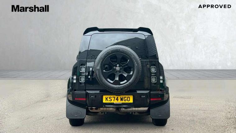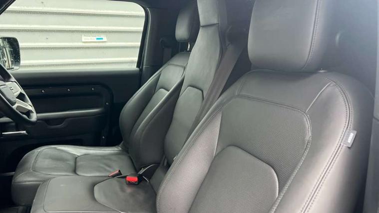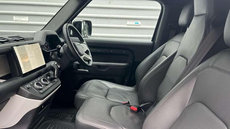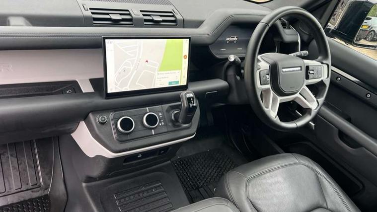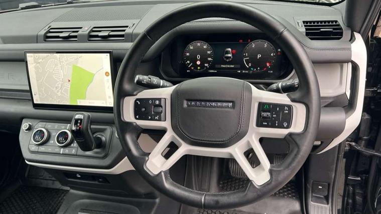 Customer Configurable Autolock, 11.4" touchscreen, 360 parking aid, 3D Surround Camera with 360 View, 180 Rear View, Front Traffic Detection, Forward Vehicle Guidance, Tow Hitch Assist and clear sight Ground View, Adaptive cruise control, Blind spot assist, Brake Hold, Driver condition monitor, Electric power assisted steering (EPAS), Interactive Driver display, Lane keep assist, Low traction launch, Pivi pro connected, Rear collision monitor, Rear traffic monitor, Traffic sign recognition adaptive speed limiter, Trip computer, Tyre pressure monitor, Android Auto, Apple CarPlay, DAB Radio (Digital Audio Broadcasting), Meridian 280W sound audio system with 7 speakers with subwoofer, Alpine lights, Assisted tailgate, Automatic headlight levelling, Automatic headlights and rain sensitive front wipers, Body coloured bonnet, Body coloured exterior Utility Panel, Centre high mounted stop light, Electric heated/power fold door mirrors with approach lights and auto dimming driver side, Electric windows with one touch open/close and anti-trap, Follow me home lighting, Front fog lights, Heated rear window with timer, Heated windscreen, LED tail light, Matrix LED headlights with signature DRL, Privacy glass, Puddle lights, Rear fog lights, Rear wash wiper, Side-hinged tailgate, Soft close tail door, Standard roof, Standard tail door, Standard tread plates, Additional lashing points, Black exposed rear recovery eyes, Configurable cabin lighting, Dual zone climate control, Durable rubber cabin flooring, Electric adjustable steering column, Footwell lights, Front jump seat and folding front centre armrest, Full height bulkhead behind row 1 seats, Glovebox storage, Heated steering wheel, High sided rubber mats, Leather steering wheel, Loadspace cover, Loadspace hooks, Loadspace rubber mat, Overhead stowage for sunglasses, Rear centre headrest, Rear reading light, Sunvisors with illuminated vanity mirrors, Upgraded loadspace LED lighting, Online pack - Defender with data plan, Brake pad wear indicator, Electronic traction control, Emergency braking, Front airbags, with passenger seat occupant detector, Power operated child locks, Remote for (e-Call, Optimised assistance call, InControl app, Climate, beep and flash and door), Seat belt reminder, Intrusion sensor, Keyless entry system, Locking wheel nuts, Spare wheel lock, 8 speed automatic transmission, ABS and EBA, All wheel drive, CBC - (Cornering brake control), Dynamic stability control, Electronic brake force distribution, Electronic park brake, Gradient acceleration control, Hill Descent Control, Hill start assist, Particulate filter (DPF), Push button start, Roll stability control, Trailer stability assist, Twin speed transfer box (high/low range), Extended leather upgrade,