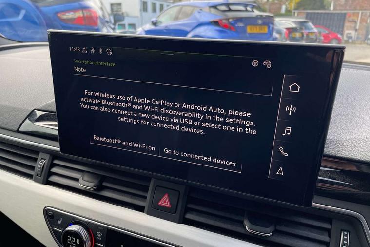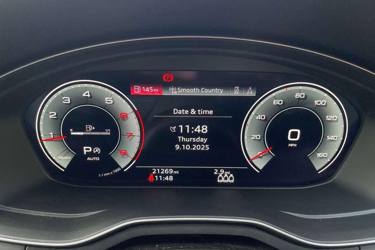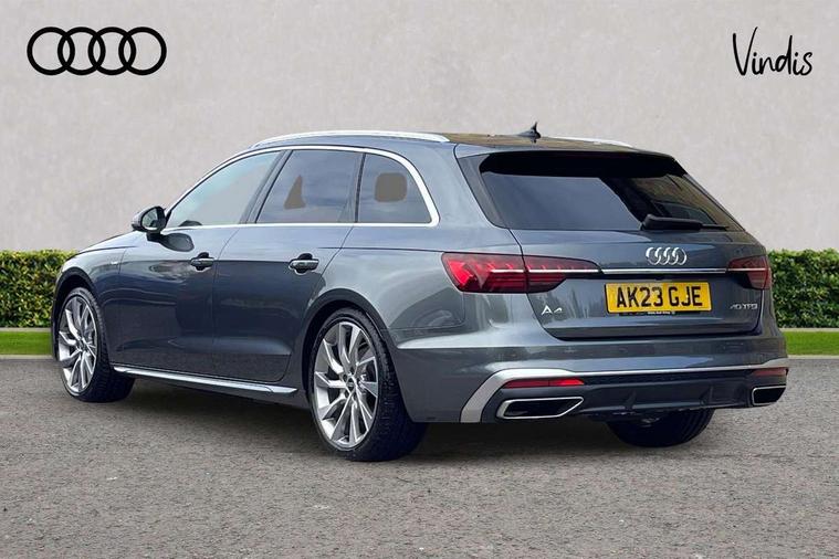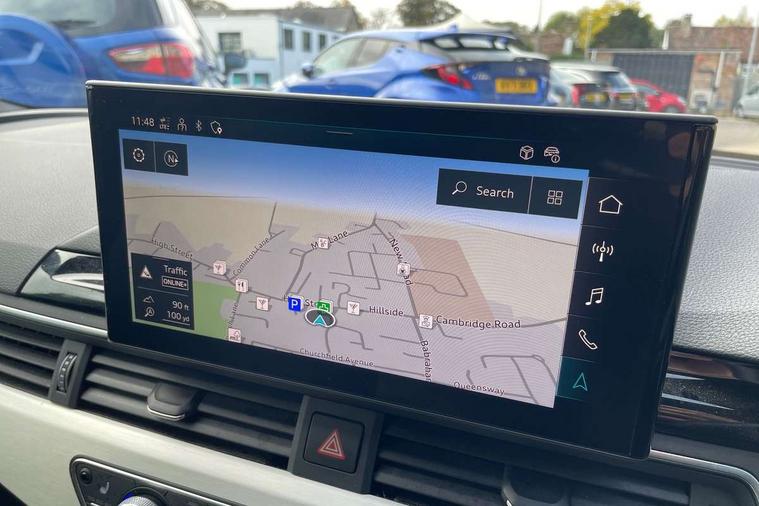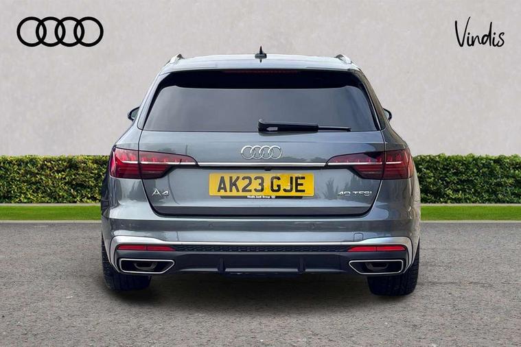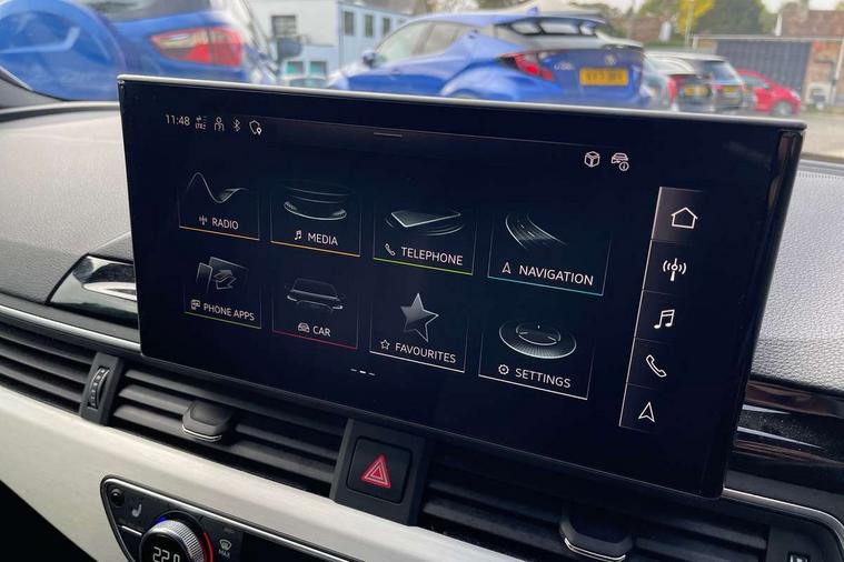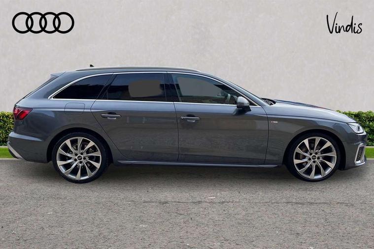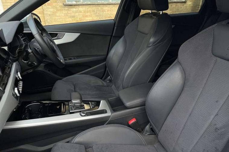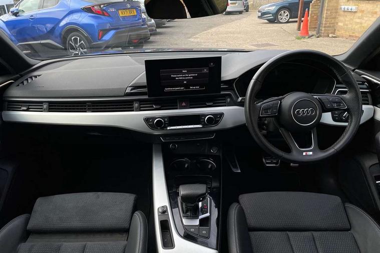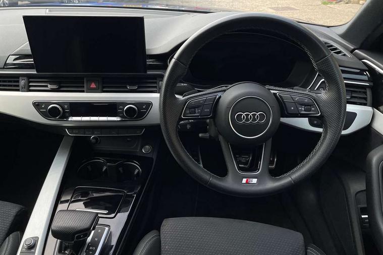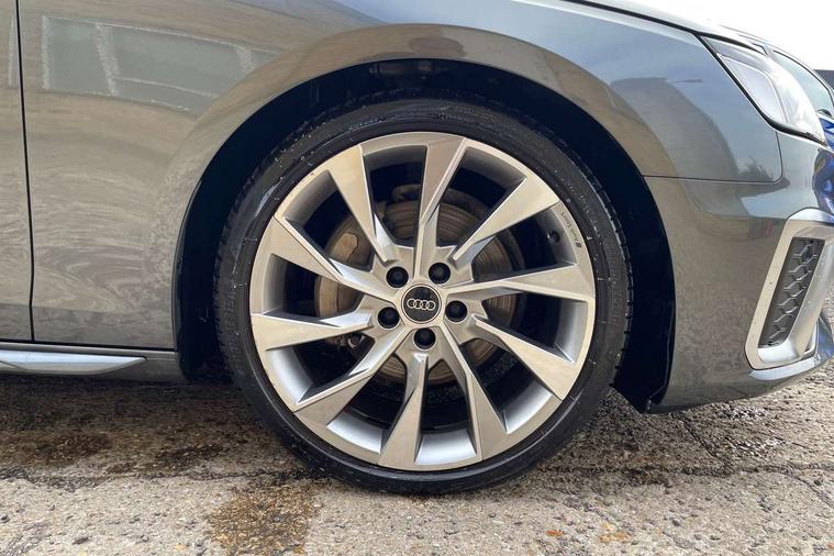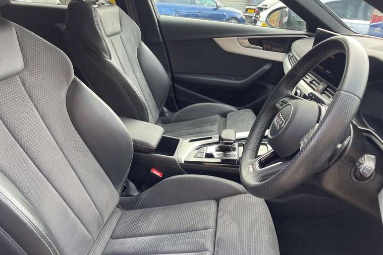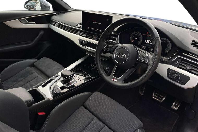 Audi connect safety and service (e-call), Audi connect with Amazon Alexa Integration, Audi drive select, Audi smartphone interface, Audi virtual cockpit, Automatic start-stop system with coasting functionality and efficiency programme, Bluetooth interface, Electromechanical power steering, Email, calendar and text messages displayed via MMI, MMI Navigation plus with MMI touch includes 10.1" high resolution colour MMI display, 3D map, Power operated tailgate, Voice control system, 54 litre fuel tank, Sports suspension lowered by 23mm, 2 USB charging ports, 8 passive loudspeakers, DAB digital radio reception, Aluminium roof rails, Auto dimming rear view mirror, Body colour door handles, Body colour front spoiler lip, Body colour side sill trim, Body coloured door mirrors, Electrically folding auto dimming/adjustable/heated door mirrors with LED side indicators and kerb view function for passenger side, Grained matt black side air inlets with matt aluminium silver inlay, High beam assistant, Honeycomb structure radiator grille in grained matt black, LED headlights with LED rear lights + dynamic rear indicators + headlight adjustment and high beam, turning light + LED daytime running lights, LED third brake light, Matt aluminium silver tailpipe trim, Privacy glass, Rain and light sensors, Rear side wing doors, Rear wiper, S Line badges on the front wings, S line front and rear bumpers with side skirts, S Line rear diffuser in matt anthracite black with trim strip in matt aluminium silver, S Line roof edge spoiler, Variable intermittent front wash/wipe, Windscreen with acoustic glazing, 3 spoke high multi-function sports leather steering wheel grips in perforated leather with S badging including paddle shift, 4 way electric lumbar support for driver and front passenger, 40/20/40 split folding 3 rear seat bench in 3 parts with rear centre armrest, Black cloth headlining, Black perforated leather gearknob, Contrast stitching on seats, steering wheel and gear lever gaiter, Deluxe 3 zone electronic climate control, Door sill trims with aluminium inlay, Electric load area cover, Front and rear head restraints, Front centre armrest, Heated front seats, Illuminated door sill trims with S logo, ISOFIX child seat mounting and top tether, Manual seat adjustment, Single front passenger seat, Stainless steel pedals and foot rest, High gloss package - A4, LED Interior light pack - A4/S4, 3 rear seatbelts, 6 airbags - Driver, front passenger, curtain and side windows, Electronic Stabilisation Control (ESC) including ABS, ASR and EDL, Hill hold assist, Multi collision brake assist, Pop-up bonnet for pedestrian protection, Pre sense city, Rear door child safety locks, Seatbelt monitoring, Warning triangle and first aid kit, Anti theft alarm, Anti theft wheel bolts, Central locking, Keyless Go, Matt brushed aluminium inlays, Tool kit, Tyre repair kit,