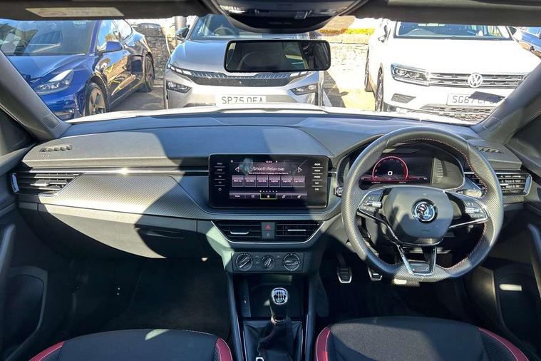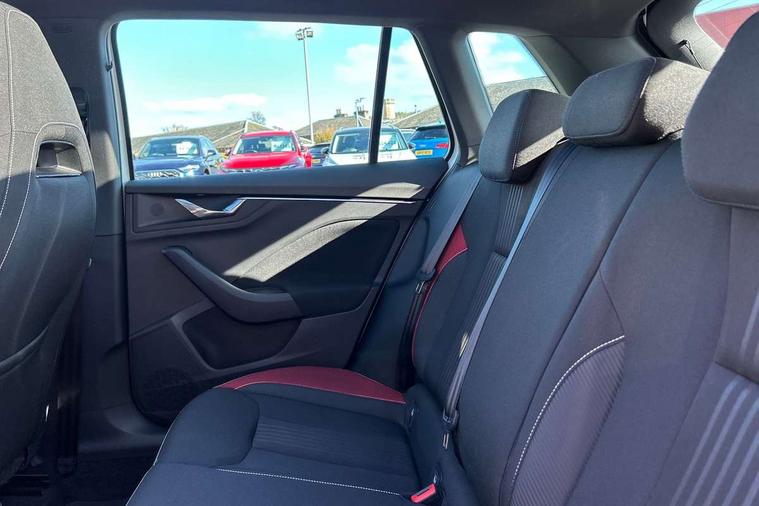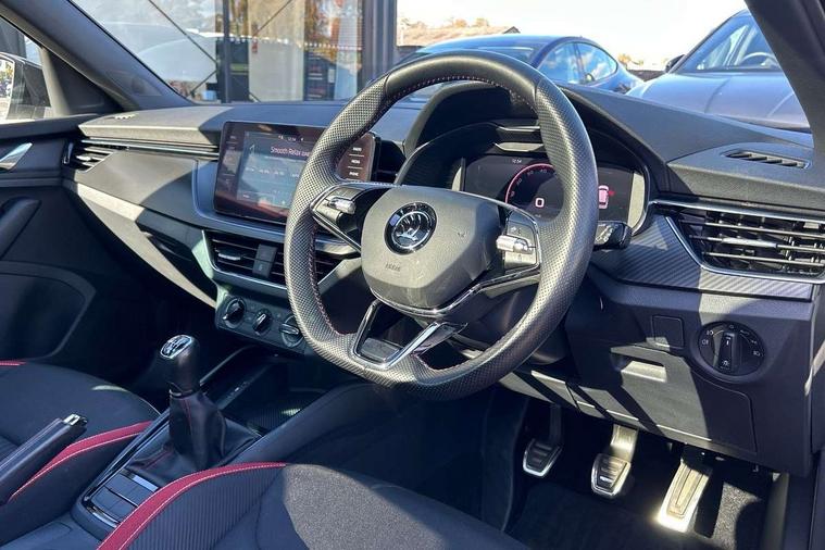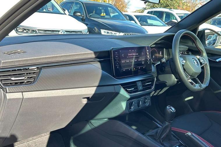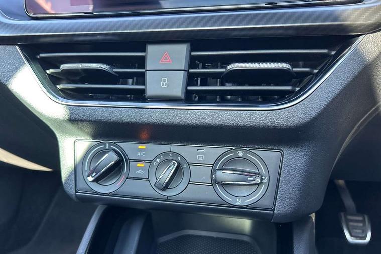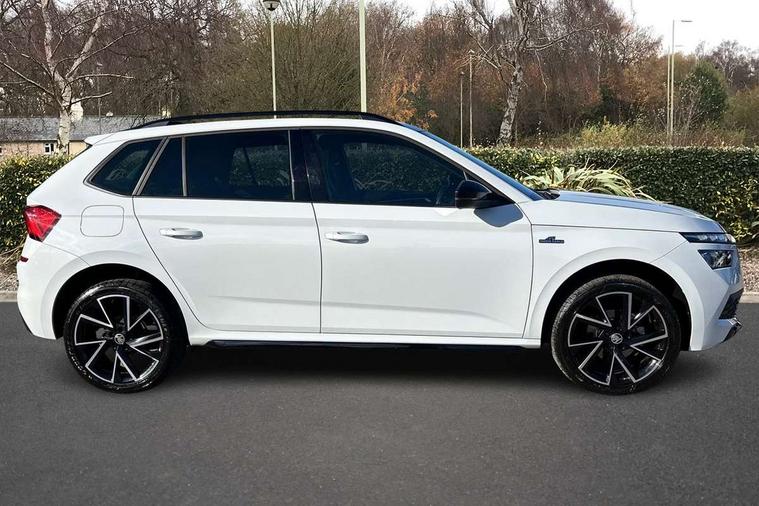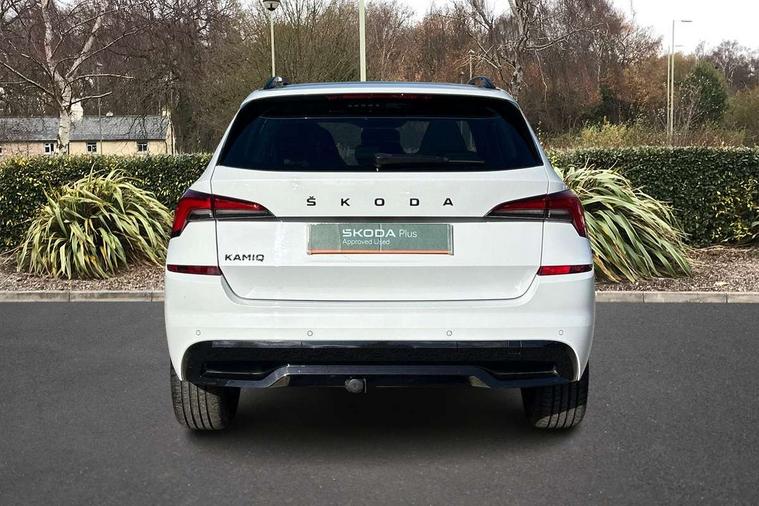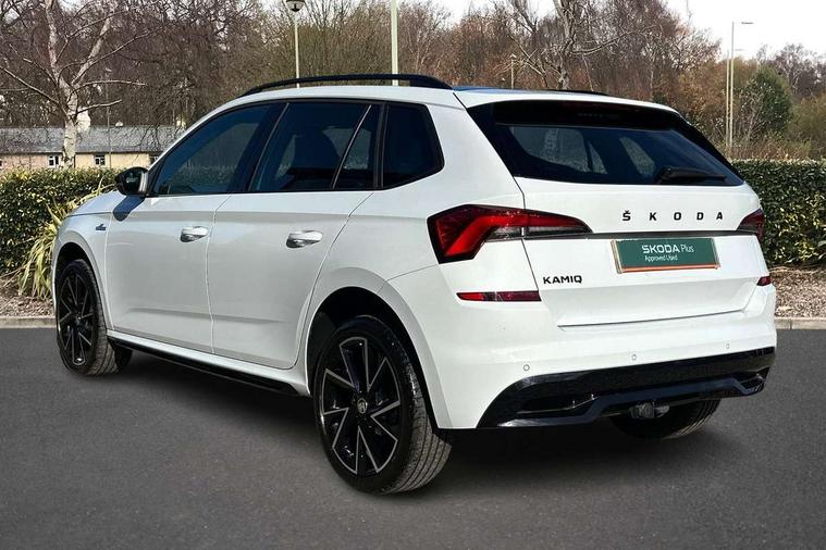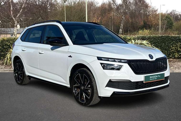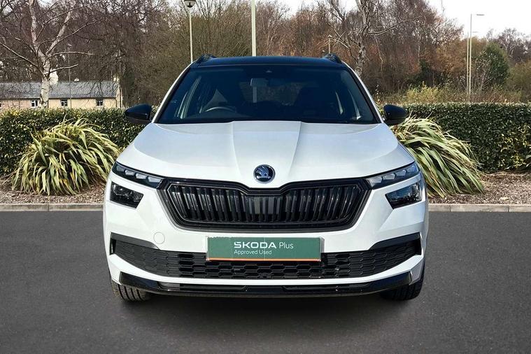 Amundsen satellite navigation with 9.2" touchscreen display, voice control, virtual cockpit and web radio, Bluetooth system, E-call, Front assist system, Gesture control, PAS, Service indicator, Speed limiter, Virtual cockpit with 10.25" display, Wireless SmartLink for apple car play, android auto and mirrorlink, 2 USB - C ports with 1x adaptor cable, Auxiliary input socket, DAB Digital radio, Auto dimming rear view mirror, Black door mirrors, Black radiator grille, Black rear diffuser, Body colour bumpers, Body colour door handles, Body colour roof spoiler, Boot lettering in black, Chrome grille surround, Electrically adjustable and heated door mirrors, Front and rear electric windows, Front sport bumper, Full LED headlights with adaptive front light system, dynamic indicators, cornering function and fog lights, Headlight range control, Heated rear window, High functionality rear led lights with dynamic indicators, KAMIQ Door sills, Light sensors, Monte carlo plaque, Panoramic sunroof with black roof rails, Privacy glass, Rear fog lights, Rear wiper, 12V Accessory socket in centre console, Aluminium pedals, Black ceiling for black/beige interior, Chrome inner door handles, Cloth upholstery, Front head restraints, Glove compartment with illumination, Height adjustable passenger seat, Ice scraper, Isofix child seat fittings on outer rear seats, ISOFIX on front passenger seat, Leather gear lever, Manual lumbar support for front seats, Rake/reach adjustable steering wheel, Reading lights, Sports seats, Sun visors with illumination on front passenger, Textile floor mats, Third rear headrest, Top tether for front passenger seat, Umbrella in driver's door, 3x3 point rear seatbelts, Airbags - driver and front passenger, ESP, Front passenger airbag deactivation switch, Front side airbags with curtain airbags, Hill hold control, Manual parking brake, One tone horn, Rear disc brakes, Seatbelt reminder for driver an co-driver, Traction control, Tyre pressure monitor, Anti-theft alarm system with interior monitoring, backup horn, towing protection and remote central locking with SAFE system, Anti-theft wheel bolts, Electronic engine immobilizer, Chrome air vent surrounds, 18" Vega alloy wheels in black,