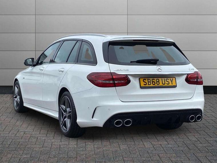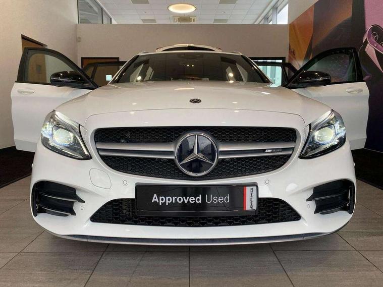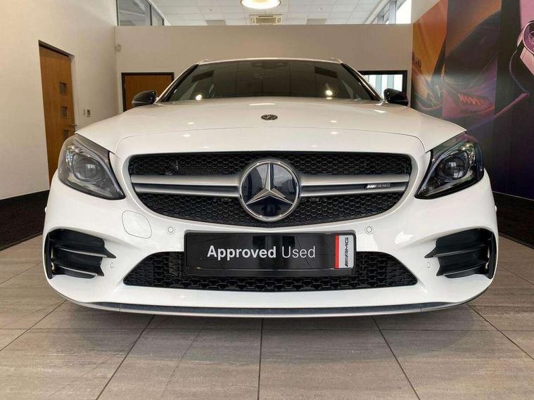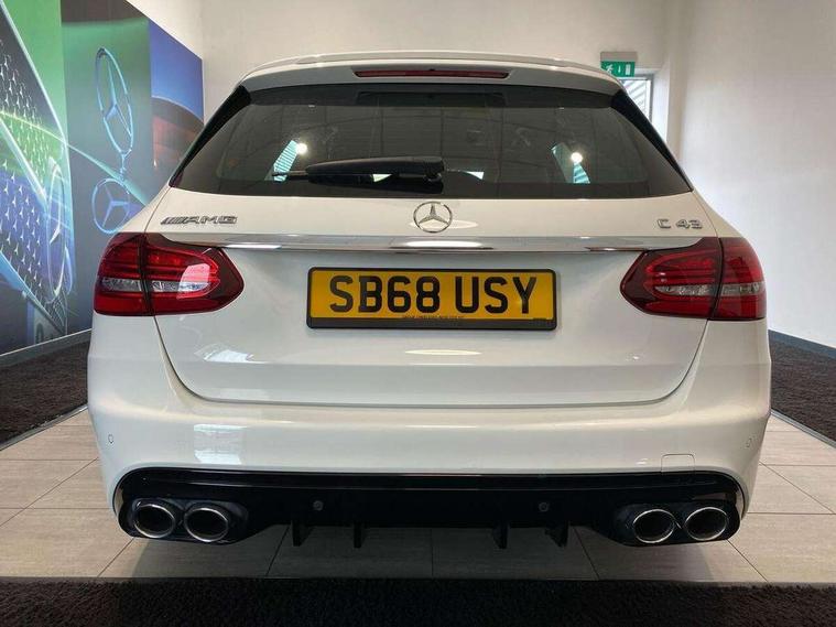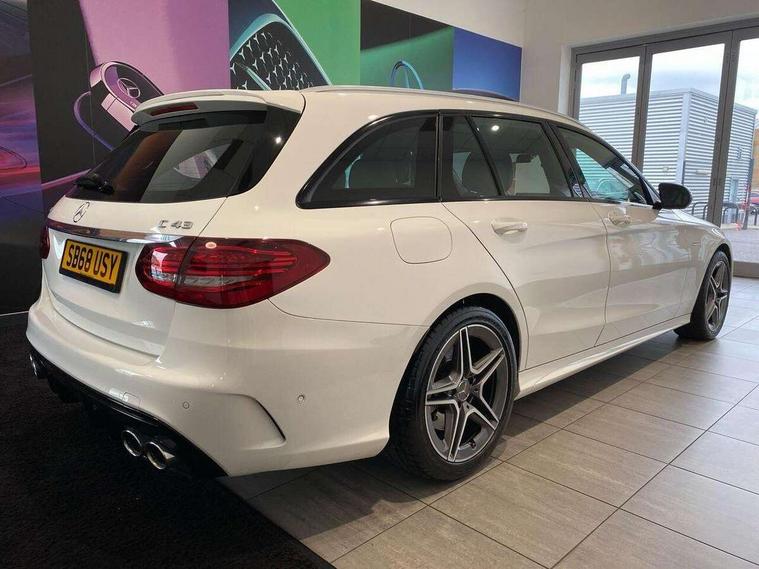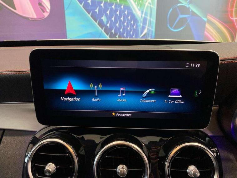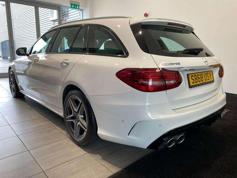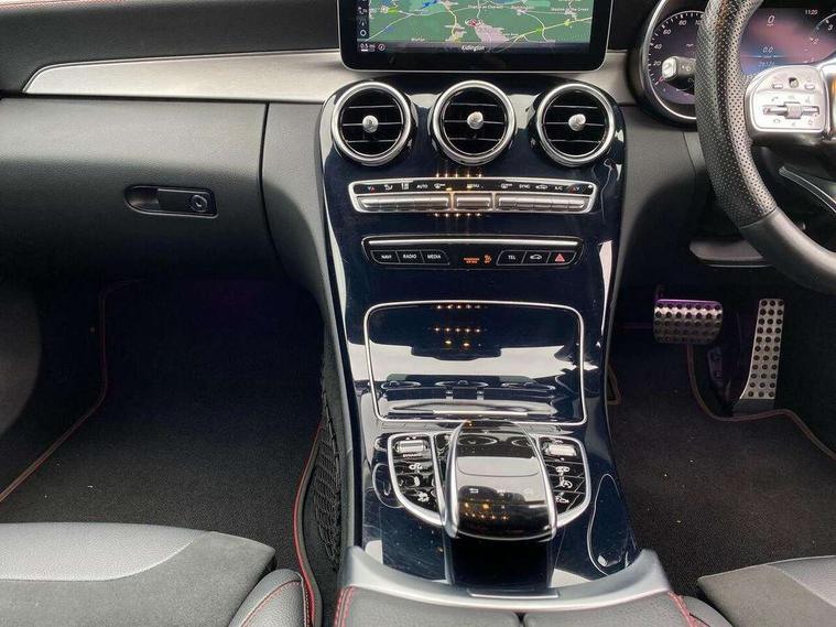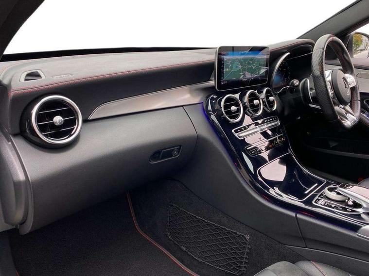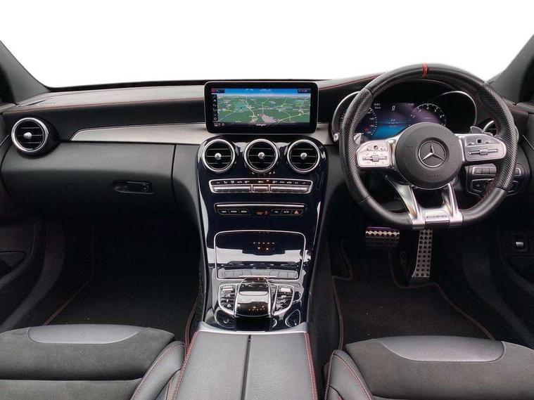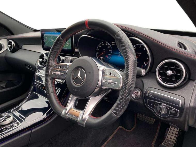 Active park assist with parktronic system, Attention assist, Bluetooth system, Collision prevention assist plus, Comand Online HDD Nav with media interface, radio/CD/DVD/MP3, 10.25 screen, linguatronic voice control, DYNAMIC SELECT with a choice of driving modes (ECO, Comfort, Sport, Sport+ and Individual), Multi function trip computer, Outside temperature gauge, Power opening/closing tailgate, Remote boot release, Reversing camera, Service indicator (ASSYST PLUS), Smartphone integration with Apple CarPlay and Android auto, Wireless charging, AMG Ride Control sports suspension, Petrol Particulate Filter, 2 USB ports in centre console, DAB Digital radio, Mid-range sound system with 7 speakers and 225W amplifier, SD card slot, Steering wheel mounted audio controls, Adaptive brake lights, Aerial in rear window, AMG body styling, AMG door sills, AMG radiator grille with 2 louvres in matt iridium silver, BITURBO 4MATIC lettering on front wings, Body coloured bumpers, Chrome roof rails, Electric windows one touch open/close, Electrically adjustable and heated door mirrors, Green tinted glass, Heated windscreen washers, LED daytime running lights, LED Indicators, LED tail lights, LED third brake light, Multi beam LED headlights, Rain sensor windscreen wipers, Rear wiper, Side windows surround in matt black, 2 cupholders in front centre console, 3 spoke flat bottomed nappa leather sport steering wheel, 40:20:40 split folding rear seats, AMG floor mats with red stitching, Artico man-made leather dash and door trim, Auto Mercedes-Benz child seat recognition sensor, Dual zone automatic climate control, Electric front seat height adjustment, Front and rear head restraints, Front centre armrest with storage compartment, Gearshift paddles, Heated front seats, Illuminated glovebox, Interior lighting - 64 colour Ambient lighting, Load compartment cover, Multifunction steering wheel, Rear top tether child seat ISOFIX attachment, Sports pedals with stainless steel surfaces and rubber studs, Sunvisors with illuminated vanity mirrors, Lighting pack - C class, Mirror pack - C Class, Seat comfort pack - C Class, Stowage space pack - C Class, 3 rear 3 point seatbelts, ABS with Brake Assist, Active bonnet, Adaptive brake system, Brake calipers with AMG lettering + perforated brake discs, Child proof door locks, Crash sensor, Drivers knee airbag, Drivers pelvis airbag, Dual stage driver/passenger airbags, Electronic parking brake, ESP with ASR, Front passenger seat occupancy sensor, Front side airbags, Hill start assist, Rear seatbelt warning indicator, Red seat belts, Tyre pressure monitoring system, Warning triangle and first aid kit, Window airbags, Alarm system/interior protection/immobiliser, Chrome surround electric key, Remote central locking, Artico upholstered dashboard with red contrast stitching, Tyre inflation kit,