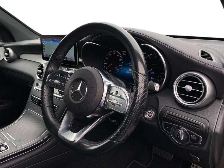 Active parking assist with parktronic system, Attention assist, Bluetooth interface for hands free telephone, Collision prevention assist plus, Cruise control with speedtronic variable speed limiter, Direct steer speed sensitive steering, DYNAMIC SELECT with a choice of driving modes (ECO, Comfort, Sport, Sport+ and Individual), Easy pack automatic powered tailgate, ECO start/stop function, Hard disk navigation, Hey Mercedes Voice activation, Instrument cluster with12.3-inch digital instrument cluster display. High resolution instrument cluster screen with choice of three display styles, MBUX Interior assistant, Mercedes connect me with remote online services, Multi function trip computer, Outside temperature display, rear seatbelt status indicator, Remote and charging services plus, Remote boot release, Reversing camera, Service indicator (ASSYST), Smartphone integration with Apple CarPlay and Android auto, Traffic sign assist, 1 x 3 pin domestic 8m straight charging cable, 1 x type 2 and 3 phase 4m straight wallbox cable, 4MATIC permanent four wheel drive, 50 litre fuel tank, 9G TRONIC plus automatic transmission with steering column gear selector, DIRECT SELECT steering wheel gearshift paddles, Diesel particulate filter, Sports suspension tuned for improved handling and driving dynamics, 5 speakers, Frontbass loudspeakers, MBUX multimedia system with DAB digital radio and touchpad, Media display 10.25-inch touchscreen display, Pre installation for Mercedes Benz Link, USB ports x 2 in centre console, Adaptive brake lights, Aluminium roof rails, AMG bodystyling - AMG front apron with sporty air intakes and chrome trim element, AMG diffuser-look rear apron with insert in black, Body colour door mirrors, Body coloured bumpers, Electric windows one touch open/close, Electrically adjustable and heated door mirrors, Front, side and rear exterior chrome trim, Headlamp assist automatic headlamp activation, LED high performance headlamps with integrated LED daytime running lights, LED tail lamp, Motor way mode function and locator lighting, Privacy glass with dark glass from B pillar backwards, Radiator diamond grille, Rain sensor windscreen wipers, Range adjustable headlights, Rear wiper, Running boards, Tinted glass all round with single layer safety glass, Two chrome plated tailpipe trim elements, 2 way rear head restraints, 3-spoke multifunction sport AMG steering wheel in black nappa leather with flattened bottom section, chrome insert and perforated leather in grip area, 40:20:40 split folding rear seats, Ambient lighting, AMG floor mats with edging and embroidered AMG lettering, AMG sports seats, Artico man-made leather upper dashboard with contrast topstitching, Automatic child seat recognition sensor, Black roof lining, Dividing net - rear, Double cup holder in centre console, Easy-pack removable load compartment cover, Front armrest with storage box, Front door sills with Mercedes Benz lettering, Front head restraints, Front seats with electric adjust (backrest, height and seat cushion inclination) with 4 way electric lumbar support and manual cushion depth adjust, Heated front seats, Height/reach adjustable steering column, Illuminated and lockable glove compartment, Leather upholstery, Pre-entry climate control, Rear top tether child seat ISOFIX attachment, Sports pedals with stainless steel surfaces and rubber studs, Steering wheel with touch control buttons, THERMOTRONIC 3 zone automatic climate control, Interior lighting pack - GLC, Mirror pack - GLC, Storage pack - GLC, 3 rear 3 point seatbelts, Active bonnet, Adaptive brake system with HOLD function and brake drying in the wet, ASR, Black seat belts, Brake calipers with Mercedes-Benz lettering + perforated brake discs, Child proof door locks, Dual-stage airbags - driver and front passenger, driver knee bag and window bags for driver, front passenger and rear passengers, Electronic parking brake, Electronic stability programme (ESP) with curve dynamic assist and cross wind assist, Front and rear seatbelt reminder, Front passenger seat occupancy sensor, Hill hold function, Radar-based recuperation, Tyre pressure monitoring system, Warning triangle and first aid kit, Alarm system/interior protection/immobiliser, Automatic door locking, KEYLESS-GO starting function, Remote central locking, Open pore black ash wood trim, 20" AMG multi spoke design alloy wheels painted in titanium grey with high sheen finish, Run flat tyres, Summer tyres,