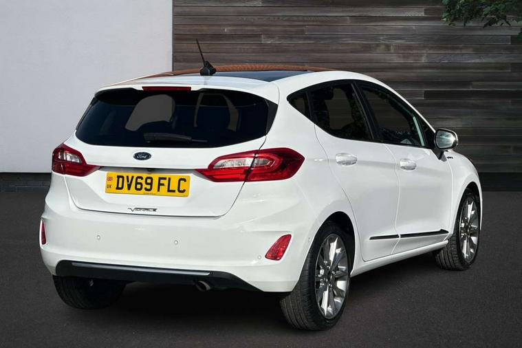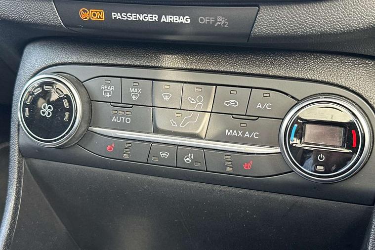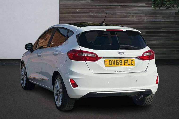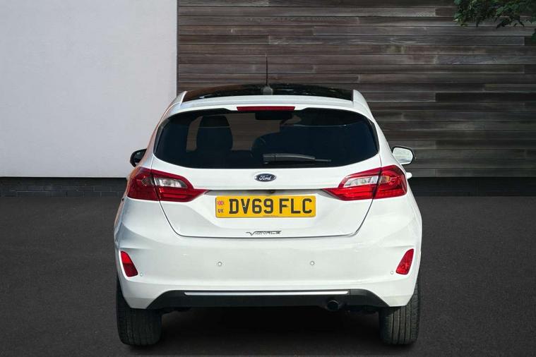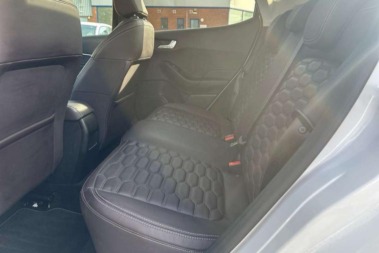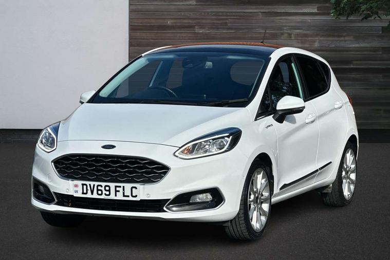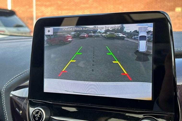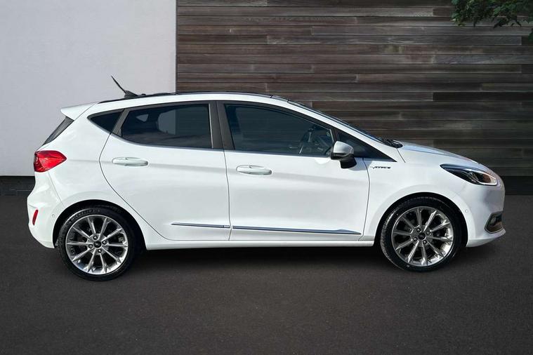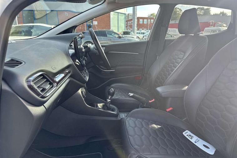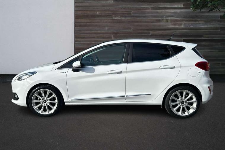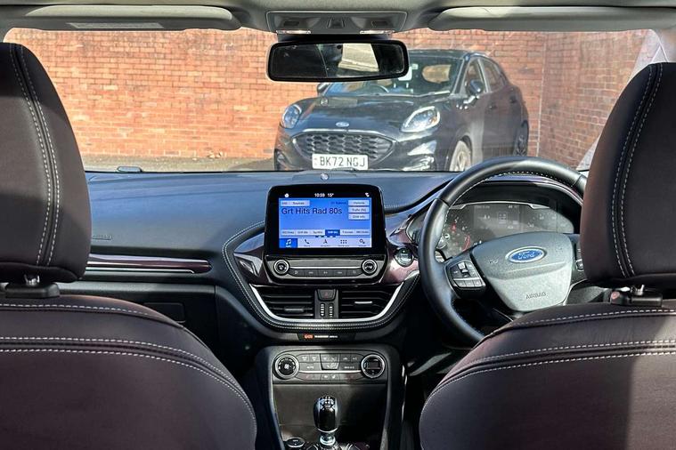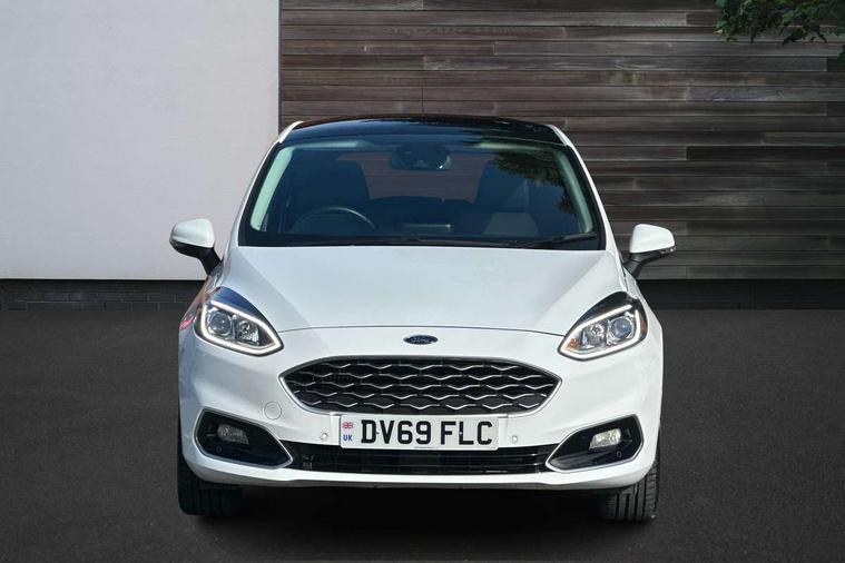Bluetooth system, Electric power steering, Ford easy fuel, Trip computer, 2 USB ports, Auxiliary input socket, B&O Premium audio system with 8" touchscreen, 10 speakers, 360 degree sound system, Ford SYNC 3 navigation system and Ford pass connect, DAB Digital radio, Steering wheel mounted controls, Auto dimming rear view mirror, Body colour bumpers, Body colour door handles, Body colour electric adjustable heated door mirrors with integral indicators, Body colour rear spoiler, Chrome beltline trim, Chrome door handles, Chrome lower window surround, Cornering front fog lights, Electric front windows/one touch facility, Electric rear windows, LED Night signature to rear lights, LED rear lights, Openable panorama roof, Power foldable door mirrors with puddle lights, Privacy glass, Quickclear heated windscreen, Rain sensing wipers and auto dimming rear view mirror, Rear privacy glass, Rear wiper, Tinted glass, Unique Vignale front grille & bodystyling, Vignale front door threshold plates, Vignale rear & wing badges, 12V Accessory socket in centre console, 3 spoke leather trimmed steering wheel with audio control, 60/40 split folding rear seat, Adjustable head restraints, Air conditioning + Electric Auto Temperature Control (EATC), Ambient lighting, Boot carpet, Centre console with armrest and illuminated cupholders, Chrome inner door handles, Drivers and Passenger lumbar support, Footwell illumination, Front map reading lights, Front seat and rear pockets, Front/rear floor mats, Illuminated glovebox, Leather gear knob, Leather trimmed handbrake handle, Leather upholstery, Load area light, Luxury woven headliner, Overhead console with sunglasses holder, Pollen filter, Rake/reach adjustable steering wheel, Rear centre head restraint, Comfort Pack - Fiesta, NCAP Pack - Fiesta, Rear view camera pack - Fiesta, 3 point seatbelts on all rear seats, ABS+EBA, Curtain airbags, Driver and passenger airbags, Drivers knee airbag, Electronic stability control with hill start assist, Front passenger airbag deactivation, Front side airbags, Seatbelt warning, Tyre pressure monitoring system, Ford keyfree system with Keyless entry and keyless start with two remote keys, MyKey system, Remote central locking & engine immobiliser, Thatcham Cat.1 alarm, Tyre repair kit,