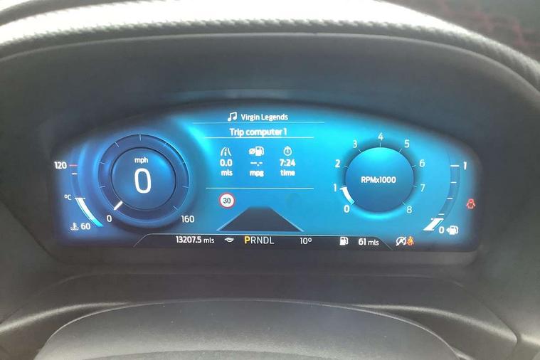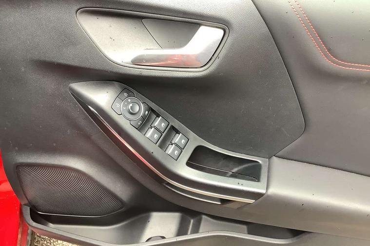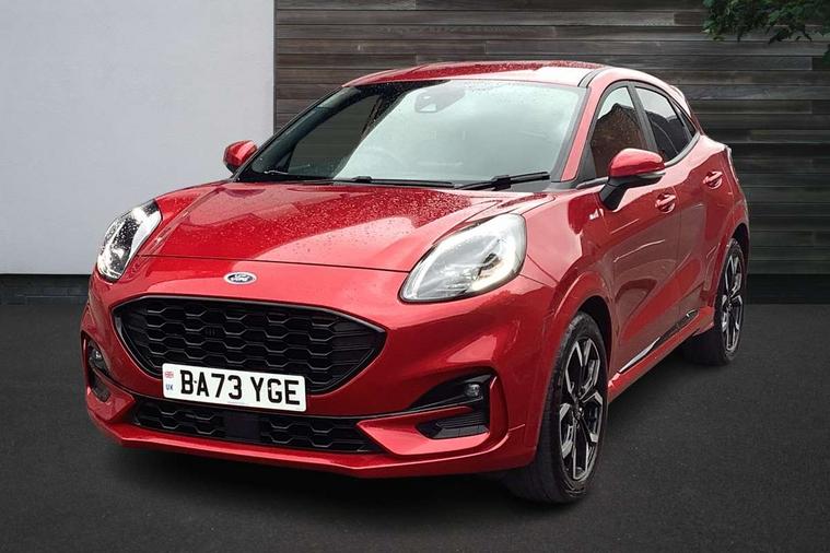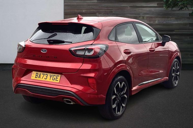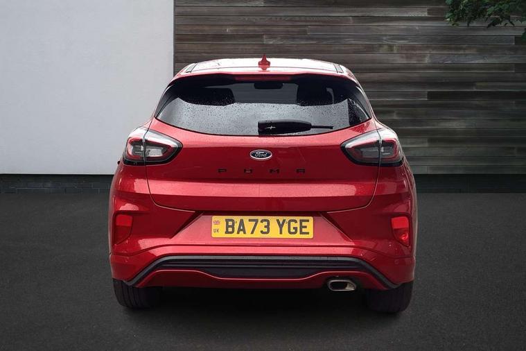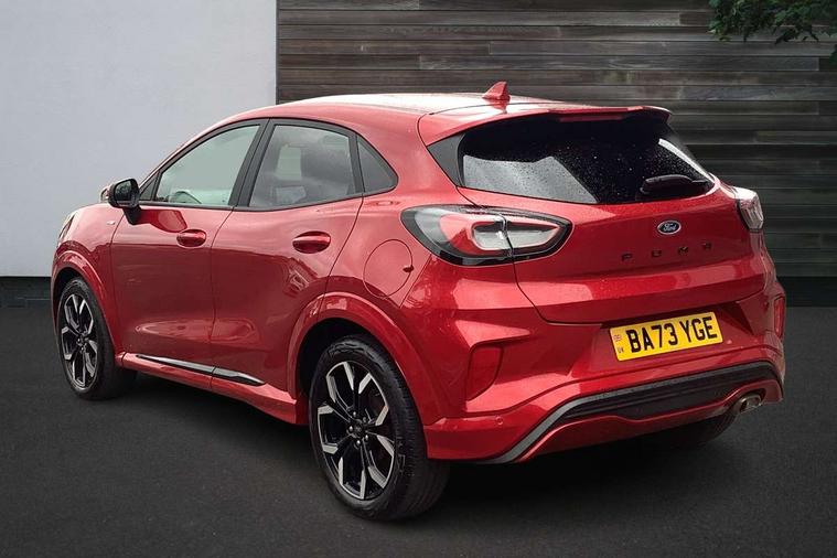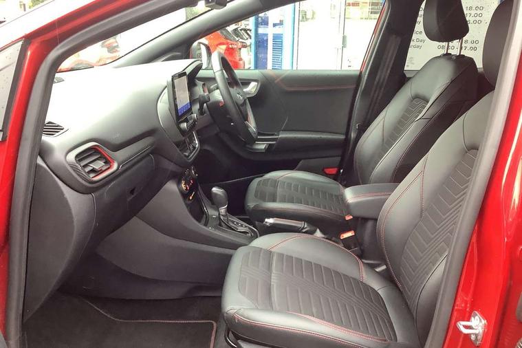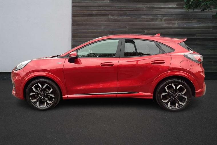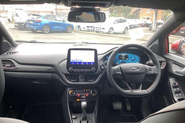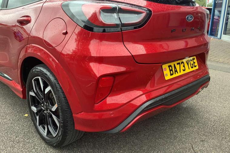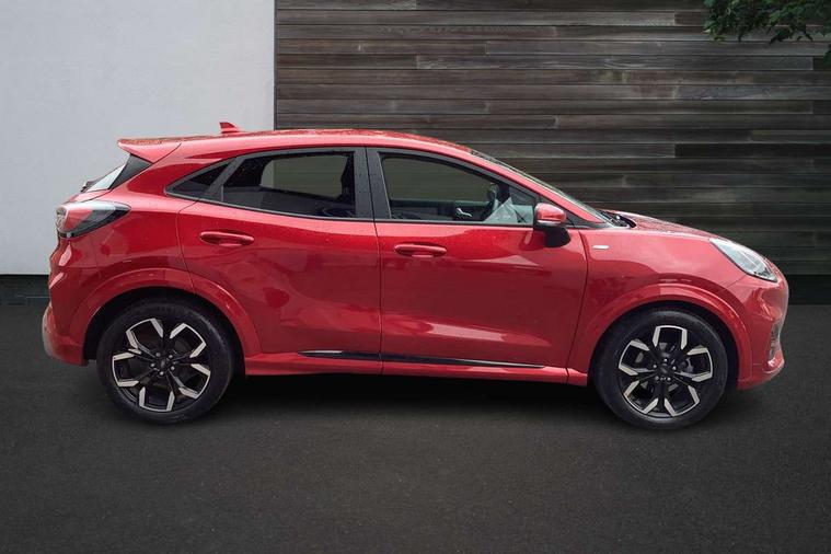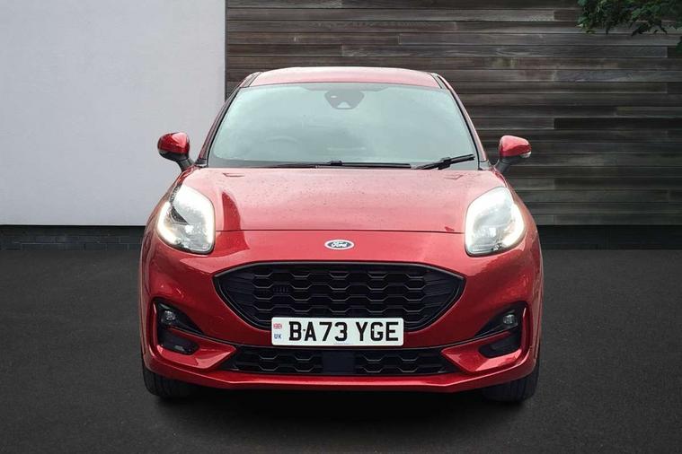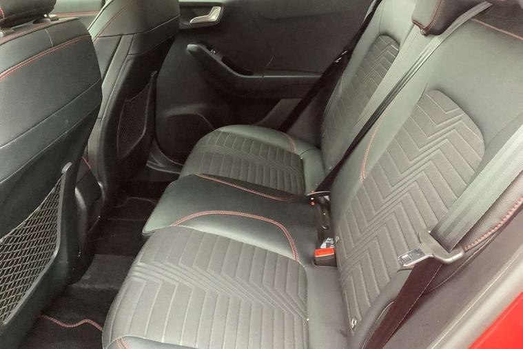 Driver impairment monitor, Emergency call service, Ford easy fuel, Full digital 12.3" instrument cluster, Lane keeping aid with lane departure warning, Power assist steering, Power start button, Rear parking sensor, Selectable drive modes(Normal, sport, Eco, trail, slippery), Speed sign recognition, Sport suspension, Automatic headlights with auto high beam, Automatic rain sensing wipers, Front fog lamps, LED daytime running lights, LED rear lamps, Power foldable heated door mirrors with puddle lamps, Privacy glass to side rear windows and tailgate glass, Quickclear heated windscreen, Rear side wing doors, Rear wiper, ST-Line body styling kit with unique grille and large body colour rear spoiler, Third brake light, 3 seat bench in 2nd row, Centre console with armrest and stowage, Ford megabox extended bootspace, Front and rear head restraints, Front floor mats, Manual 4 way driver seat adjust with lumbar adjustment, Manual 4 way passenger seat with lumbar seat adjustment, Sensico partial premium upholstery, Single front passenger seat, ST-Line flat bottomed sensico leather steering wheel with leather handbrake and aluminium gear knob, Wireless charging pad with electronic air temperature control (EATC), B&O Premium Audio system + Ford SYNC 3 navigation pack - Puma, 3 rear seatbelts, Child safety lock, Electronic stability control (ESC) and hill start assist, Pedestrian/cyclist detection & post-collision braking, Pre collision assist system, Tyre pressure monitoring system (TPMS), Thatcham alarm, Carbon look interior deco spears,