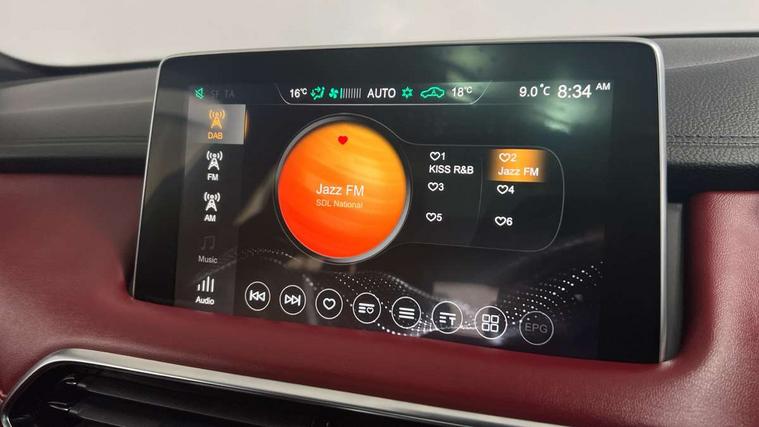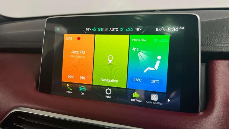 10.1" colour touchscreen, 12.3" Full digital driver information display, 360 degree parking camera, Adaptive cruise control, Android Auto, Apple CarPlay, Blind Spot Detection (BAS), Bluetooth connectivity, Emergency call service, Intelligent speed assist, Lane keep assist system (LAS) with Lane departure warning system (LDWS), PAS, Power tailgate, Rear cross traffic alert, Rear parking sensors, Satellite navigation system, Traffic jam assist, Trip computer, USB mobile phone charging function, 6 speaker audio system, DAB audio, Auto dimming rear view mirror, Automatic headlights, Body colour electric adjustable heated door mirrors, Electric folding door mirrors, Follow me home headlights, Front and rear aero wiper, Front and rear electric windows with one-touch up/down, Front fog lights, Intelligent high beam, LED Bi-Function headlights, LED centre brake light, LED daytime running lights, LED front and rear sequential indicators, Panoramic sky roof, Rain sensing wipers, Rear side wing doors, Silver roof rails, 12V power sockets, 2nd row 60/40 split fold seat, 2nd row seat with 2 stage incline adjustment, 3 rear headrests, 3 seat bench in 2nd row, 4 way electric adjustable passenger seat, 6 way electric adjustable drivers seat + lumbar support, Ambient lighting, Dual zone automatic air conditioning, Front centre sliding armrest with storage compartment, Front headrests, Heated front seats, Height and reach adjustable steering wheel, ISOFIX restraints on outer rear seats x2, Leather steering wheel, Metal sports pedals, Single passenger seat, Sports Style Front Seats with One-Piece Back, 3x3 point rear seatbelts, ABS/EBD, Active emergency braking with pedestrian/Bicycle detection, Anti rolling protection, Cornering brake control (CBC), Driver, passenger and 2nd row rear seat belt reminder, Dual front airbags, Electric parking brake with auto hold function, ESP, Front passenger airbag deactivation switch, Front seat belt height adjuster, Front seatbelts (3-point + pretensioner + load limiter), Front side airbags, Hill descent control, Hill launch assist, Manual rear child locks, Rear outer seatbelt pretensioner and load limiter, Side curtain airbags, Tyre pressure monitoring system, Alarm system and engine immobiliser, Keyless entry and push button start system, Remote central locking, Speed sensing door locks, 18" Hurricane diamond cut alloy wheels, Tyre repair kit,
